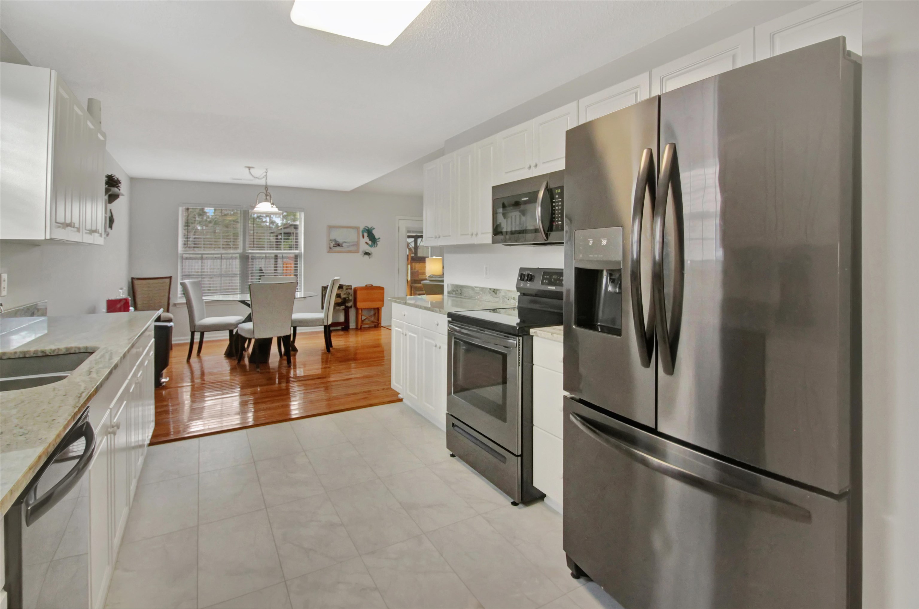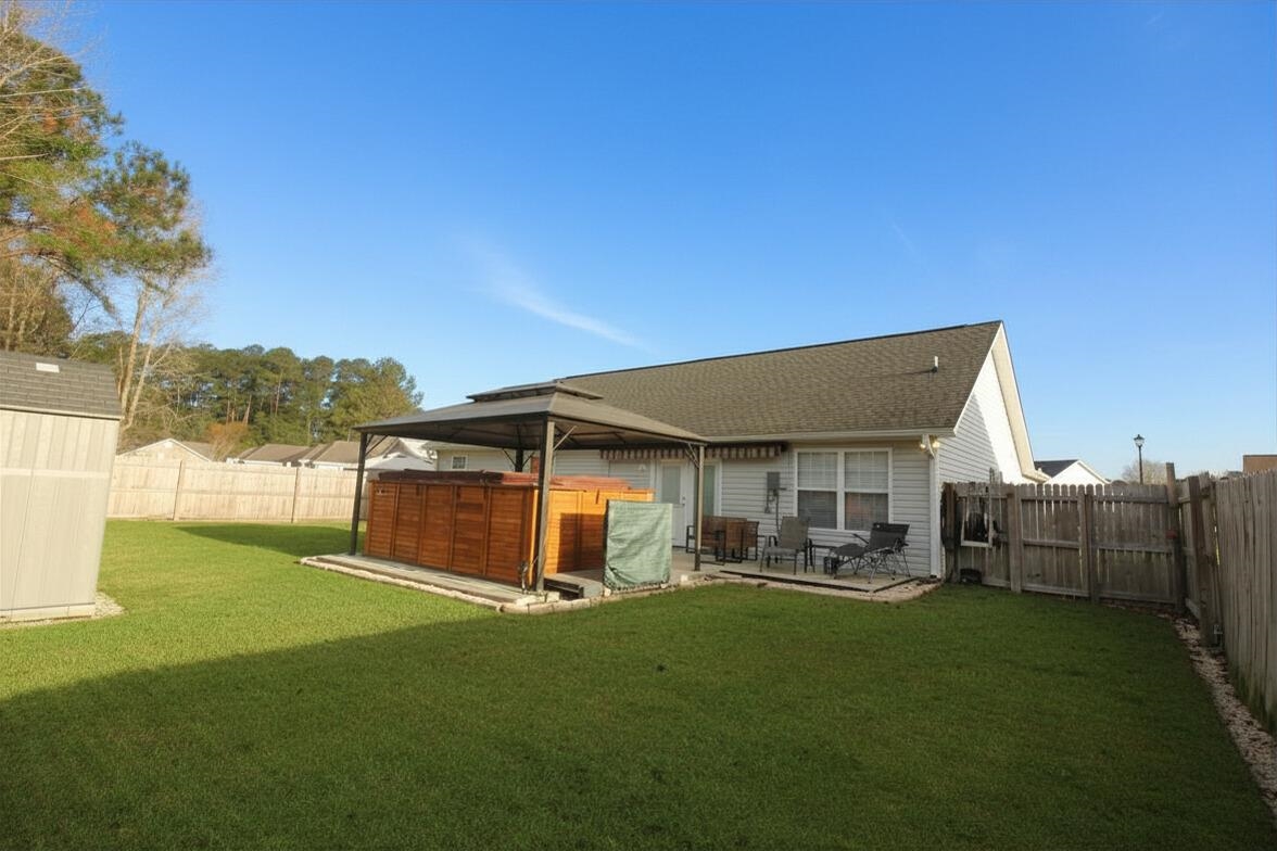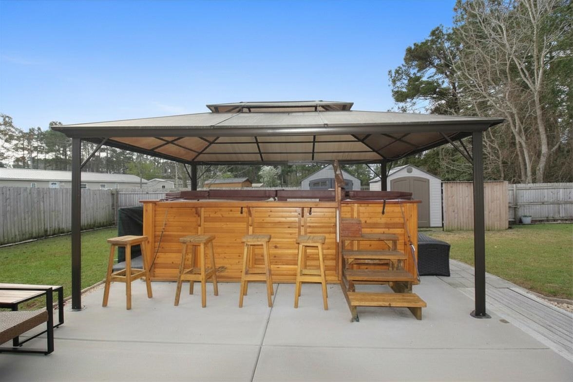 Beautifully remodeled 3-bedroom, 2-bath home with a 2-car garage situated on a private, fenced lot designed for relaxing and entertaining. The backyard is a true retreat featuring an expansive patio, gazebo, canopy, and an impressive swim spa perfect for enjoying sunny afternoons or unwinding in the evening. With multiple outdoor seating areas, grilling space, and two storage sheds, this property offers exceptional outdoor living. Inside, the home has been thoughtfully updated with refinished floors, fresh paint throughout, new blinds, granite countertops in the kitchen and bathrooms, and new flooring in the kitchen, laundry room, and guest bath. Elegant French doors replace the former sliding door and open directly to the backyard oasis, bringing in natural light and easy access to the outdoor living space. Recent improvements include a new water heater, newer washer and dryer (2021), new dishwasher (2024), gutters installed in 2021, and a beautifully updated primary bathroom with a walk-in shower (2025). The expanded concrete patio was built with footers to allow for a possible future addition and includes a dedicated pad for the swim spa along with additional grilling and sun areas. Additional features include new sod, decorative rock landscaping, outdoor lighting, attic TV antennas, and multiple storage buildings. Move-in ready with countless upgradesāthis home offers comfort, privacy, and a backyard you'll never want to leave.