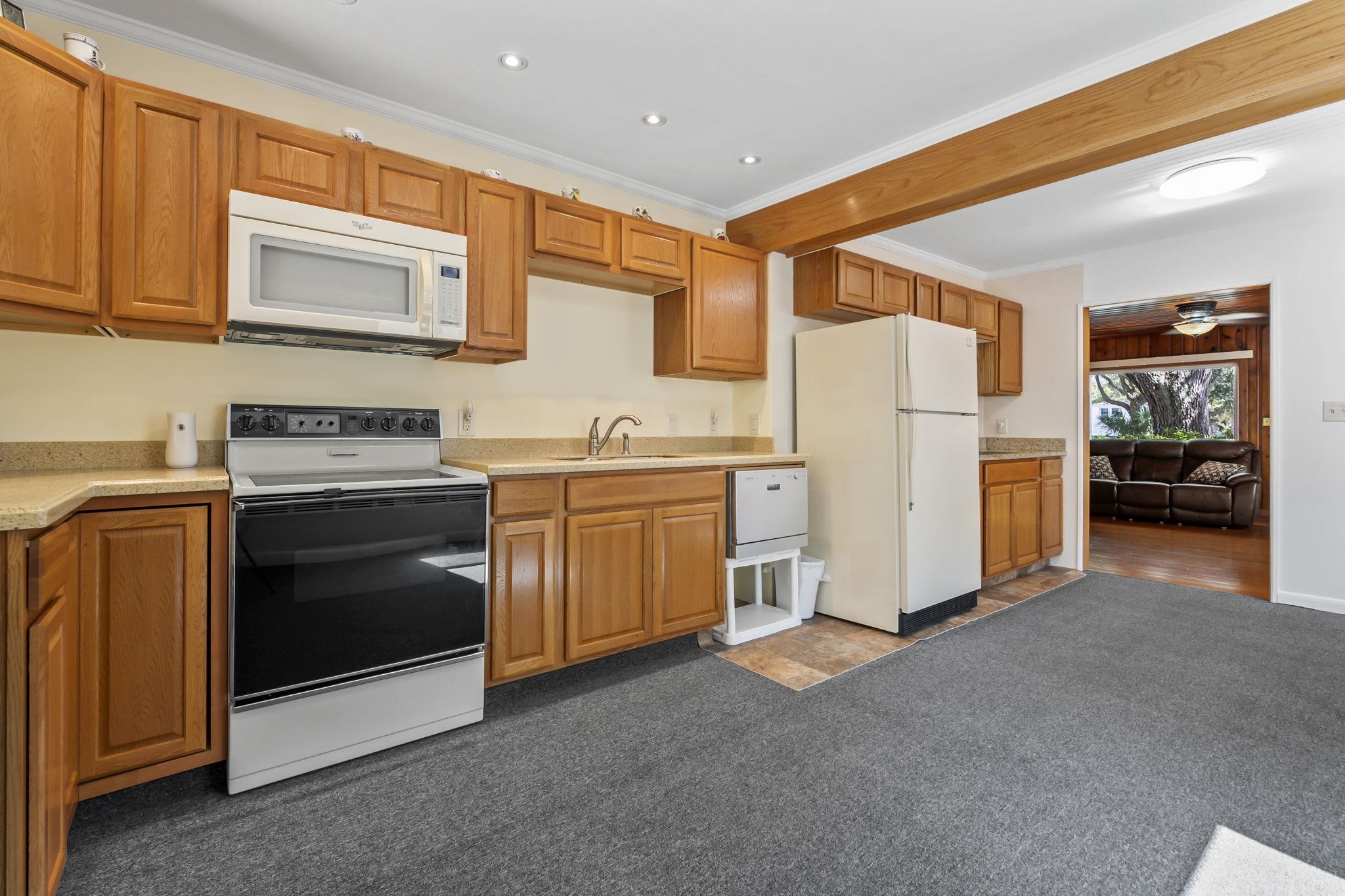 As you step onto the property, a beautiful live oak tree greets you at the entrance, setting the tone for this one-of-a-kind Myrtle Beach triplex. Starting with the main home, you'll find yourself in a cozy beach cottage filled with character. The living room is warm and inviting, featuring rich wood paneling, authentic hardwood floors, and a brick wood-burning fireplace that creates a natural gathering space. Moving forward, the kitchen and dining area flow together easily, offering plenty of space for meals and everyday living. This home also includes two bedrooms - both well-sized - with the primary bedroom featuring a walk-in closet, and two bathrooms that serve the home. Just off the back, there's a covered patio perfect for relaxing in the shade. Downstairs, you'll find a separate laundry and utility space, giving you convenience and additional storage. Heading to the rear of the property, the duplex offers two additional living spaces. On the main level, you enter into a functional layout with a comfortable living and dining area that connects to a kitchenette. This unit includes a bedroom and two bathrooms, making it ideal for guests or rental income. There's also laundry access and a private entryway, along with extra storage for added convenience. Upstairs, the one-bedroom unit offers its own charm. As you walk in, you'll notice the open family room with plenty of natural light and a kitchen that makes the space fully self-sufficient. A bedroom and bathroom complete this unit, along with a covered front stoop that overlooks the property, offering a quiet retreat to enjoy the outdoors. Between the main home and the duplex, the courtyard ties everything together. This large outdoor space is perfect for entertaining, with a grilling station, patio area, and shade from mature trees. This property offers plenty of options for parking in the front and back, and allows short term rentals! The design of the property makes it easy to imagine hosting gatherings, renting units, or simply enjoying the flexibility of multiple living spaces- all within steps of the public beach access at 30th Avenue North. Measurements are not guaranteed. Buyer is responsible for verifying.