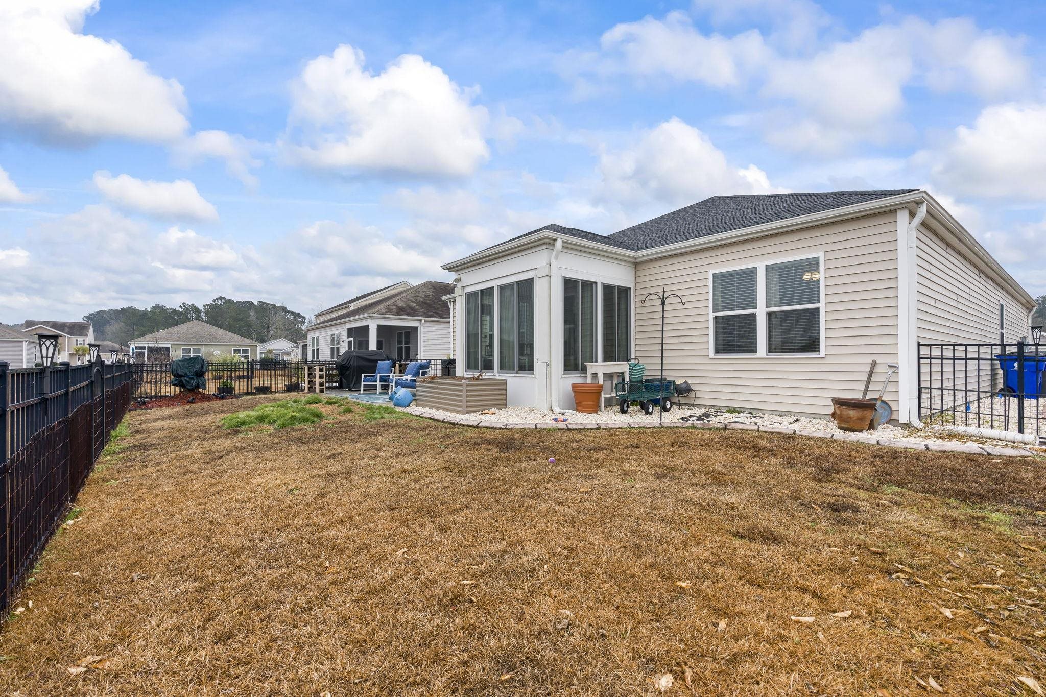 You’ve officially arrived at the property that has all the upgrades. This isn’t just a 4-bedroom house; it’s a full-on lifestyle upgrade. You’ll be living large with 9-foot ceilings that make the natural light pop off the luxury vinyl floors. Structural extensions were added to the living and dining areas—making this the largest Cali in the neighborhood. The kitchen brings the wow factor with granite countertops, a massive island perfect for charcuterie spreads, and stainless-steel appliances that shine. And for peace of mind' A brand-new roof installed in 2025 with a 50-year warranty—check that big-ticket item off the list. Step out back and you’re basically at a resort. Sip your morning coffee on the screened porch while the fountain dances in the pond just feet away. The yard is already fenced, the sprinklers are dialed in, and the patio is ready for entertaining. Located in the legendary St. James school district and just minutes from the Murrells Inlet Marsh Walk and Surfside Beach, you’re right where you want to be. This home is turn-key, pond-front, and ready for you to make your move. Don’t let someone else live your dream.