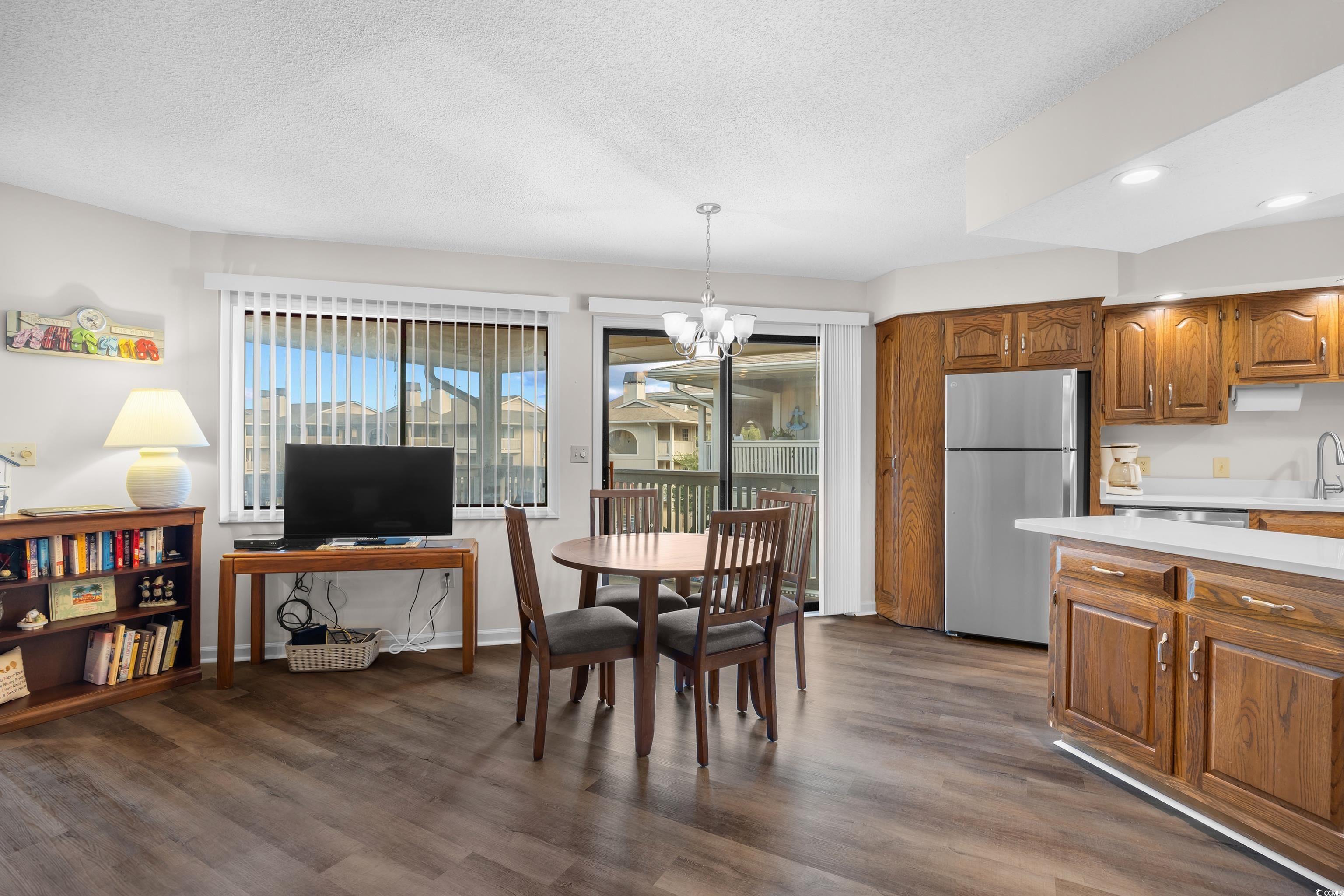Two Bedroom condo with fresh paint, new LVP flooring throughout (tile in bath areas), New Granite Counters and New SS Appliances. Open floor plan living, dining, kitchen, and access to the front covered front porch. Living room has a brick fireplace that offers a great ambiance. Pocket doors to bedrooms add to their privacy. The hallway to bedrooms has one large closet, an HVAC/water heater closet, and a washer/dryer closet, great convenience! Both bedrooms have full baths and access to the back porch. at spaces to use as primary residence, 2nd home, or rental. Enter thru common hall and just outside the condo there are two storage closets. The community pool is a fun place to relax and enjoy the warm weather with neighbors. Whether you prefer the serene Sunset Beach or the lively North Myrtle Beach, this location offers the best of both worlds, with nearby dining, shopping, and recreational options. Explore the charming Little River Waterfront and nearby attractions like Vereen Gardens, NMB Sports Complex, parks, and the stunning Atlantic Ocean for endless entertainment possibilities. Square footage is approximate and not guaranteed. The buyer is responsible for verification of all information provided.