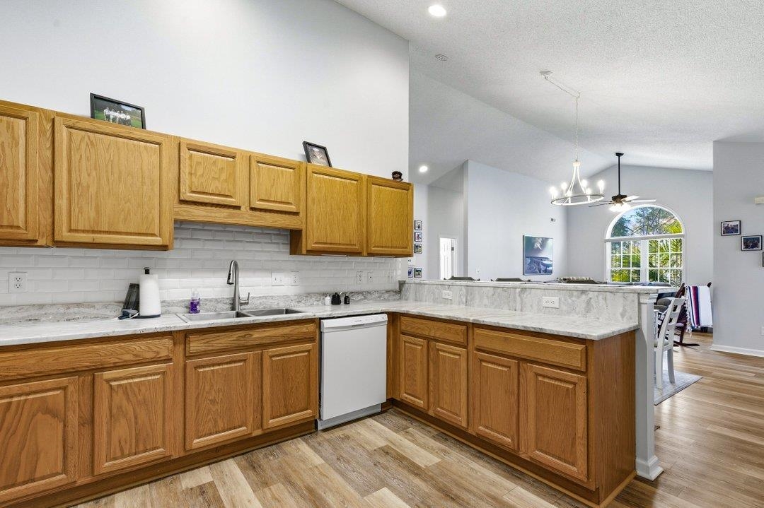Discover this beautifully updated 3-bedroom, 3-bath semi-detached home with a one-car garage, located in a 55+ community in Little River, South Carolina 29566, just off Highway 17 and minutes from the Intracoastal Waterway and North Myrtle Beach. Situated in Flood Zone X, this low-maintenance coastal property offers peace of mind with no flood insurance required and an unbeatable location close to golf courses, marinas, medical facilities, shopping, dining, and Little River Waterfront events, including the Blue Crab Festival and Shrimp Festival. Step inside an open-concept floor plan featuring cathedral ceilings and luxury vinyl plank (LVP) flooring throughout the main living areas. The main level includes a spacious primary suite and a guest bedroom, offering flexible living for family or guests. The kitchen has been thoughtfully updated with granite countertops, a tile backsplash, and a modern faucet, making it ideal for both everyday cooking and entertaining. This home features numerous recent upgrades including a new roof (2022), a recently replaced and regularly serviced HVAC compressor, new GFCI outlets, smoke and fire alarms, and a whole-house surge protector. The first-floor guest bathroom has been updated with a new vanity and toilet, and the upstairs third bedroom offers new carpet and an updated staircase railing. Enjoy the enclosed patio with stamped concrete flooring, screened windows, a ceiling fan, and a TV mount — perfect for relaxing or entertaining year-round. The community pool is located directly across the street, and a back entrance to the neighborhood connects directly to a traffic light and gas station on Highway 17 for easy travel in either direction. The HOA covers landscaping, irrigation, pool access, trash pickup, cable, internet, pressure washing, pest control, and fire ant treatments, giving you more time to enjoy the coastal lifestyle.