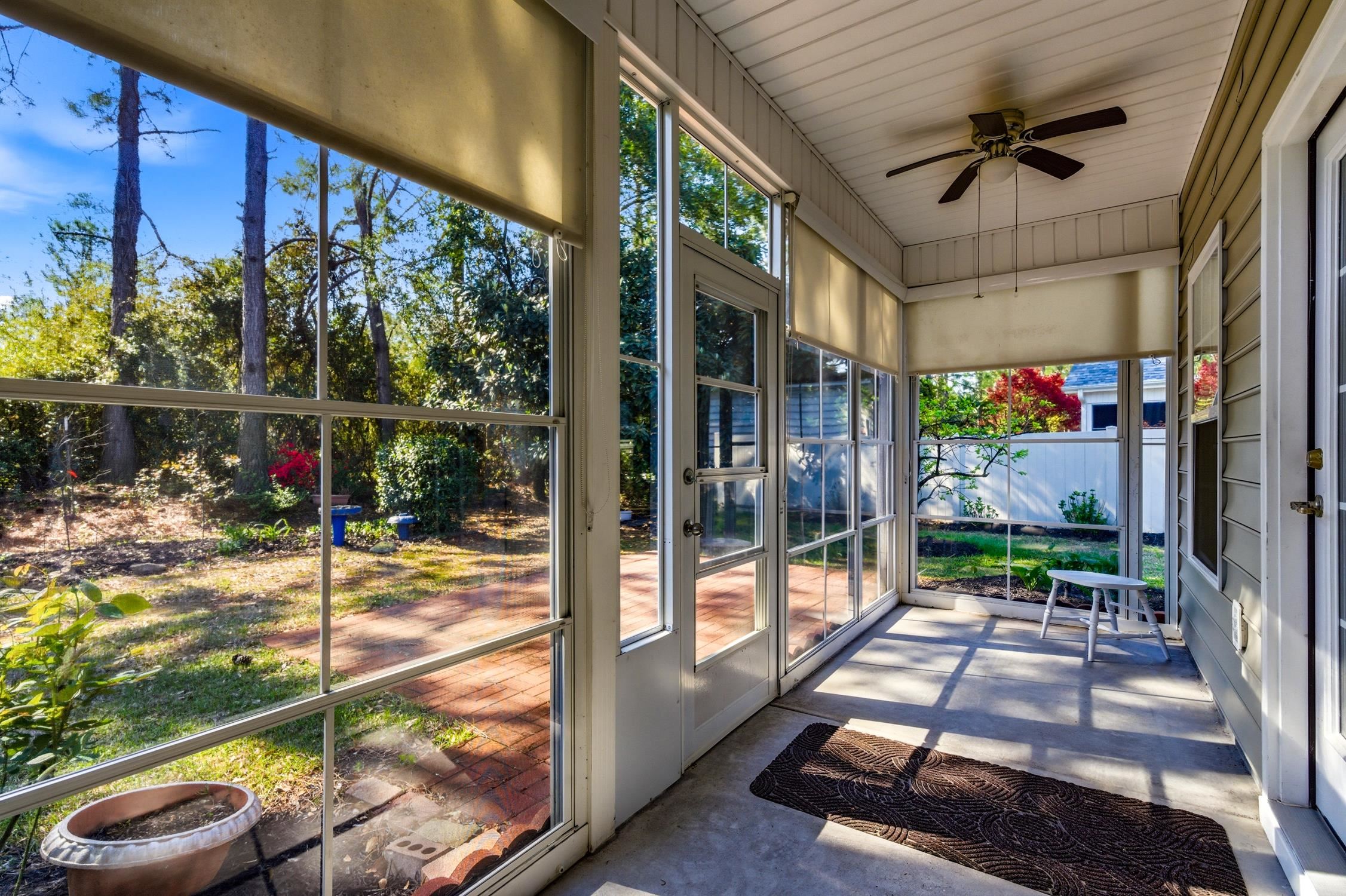 Welcome to the Cypress floor plan in Clear Pond at Myrtle Beach National, offering 3 bedrooms, 2 baths, and a versatile bonus room that can easily function as a fourth bedroom, office, or flex space. The main living area features a cozy fireplace with blower, crown molding, and dining space with chair rail and wainscoting, creating a warm and polished atmosphere. The kitchen includes 42" maple cabinets with roll-out shelving, under cabinet lighting, Corian countertops, tile flooring and backsplash and stainless appliances. Additional highlights include blinds throughout, ceiling fans in the living room and primary bedroom, a screened porch with easy breeze windows overlooking the lush landscaping in your private back yard with lawn well! This home has been loved by its Original Owners! Enjoy a Chicago, Celeste & Turkey Fig Trees, Peach Tree, Hydrangeas, Persimmon, Maple Tree, Rose Bushes and 2 Loquat Trees! Located in the sought-after Clear Pond community, residents enjoy resort-style amenities including a pool, clubhouse, fitness center, and walking paths, all within easy reach of Carolina Forest shopping, dining, golf, and the Grand Strand beaches. Arrange a private tour today!