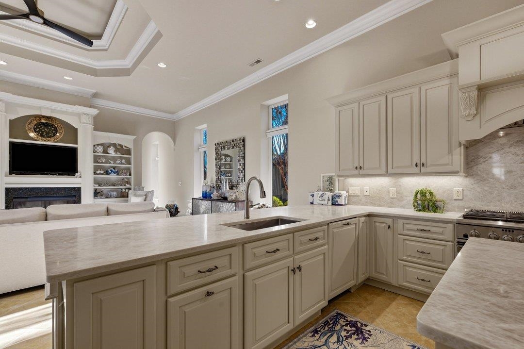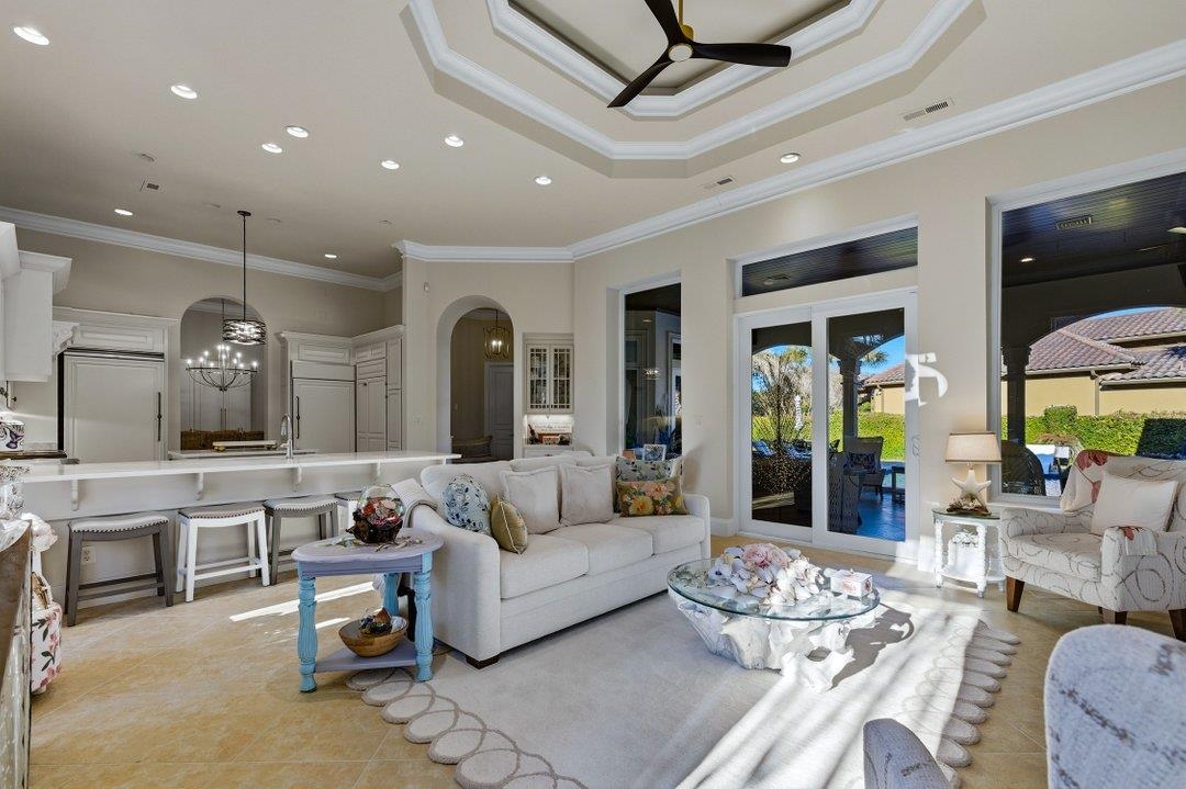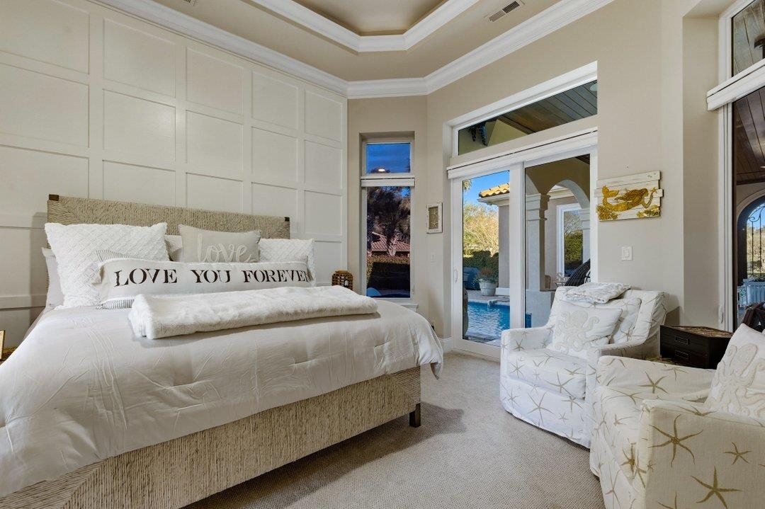 Located within Grande Dunes, one of Myrtle Beach’s most prestigious gated communities, this beautifully updated coastal estate offers a rare blend of privacy, elegance, and effortless indoor-outdoor living—just moments from the Atlantic shoreline. Set on an expansive one-third-acre homesite framed by mature palms, this 3-bedroom, 3-bath luxury residence is thoughtfully designed around a private courtyard, creating a true resort-style retreat. At the heart of the home, a spacious covered courtyard porch and sparkling in-ground pool set the stage for refined entertaining, quiet relaxation, and year-round coastal enjoyment. A highly desirable private casita adds exceptional versatility—perfect for hosting guests, creating a private home office, or accommodating multigenerational living—while maintaining seamless connection to the main residence. Recent renovations elevate the home throughout. The gourmet, chef-inspired kitchen features high-end appliances, custom cabinetry, elegant hard-surface countertops, and inviting bar-height seating—ideal for both casual mornings and sophisticated gatherings. The owner’s suite is a true sanctuary, enhanced by a spa-like bath with an oversized walk-in shower, soaking tub, custom double vanity, and a professionally designed walk-in closet. Additional upgrades include fresh exterior paint, a beautifully refinished pool with new tile, and a mini-split heating and cooling system in the garage for added comfort and functionality. Inside, refined tile flooring, a cozy fireplace, and timeless architectural details create an atmosphere that is both luxurious and welcoming. A spacious two-car garage offers ample storage for beach gear, golf clubs, and more. Residents enjoy close proximity to the exclusive Ocean Club Cabana, featuring oceanfront dining and bar service, a resort-style pool, and gated beach access—bringing the coastal lifestyle right to your doorstep. Just minutes from world-class dining, shopping, championship golf, boating, fishing, and all the best of Myrtle Beach, this exceptional property delivers a rare opportunity to own a private, luxury retreat in one of the area’s most coveted communities.
