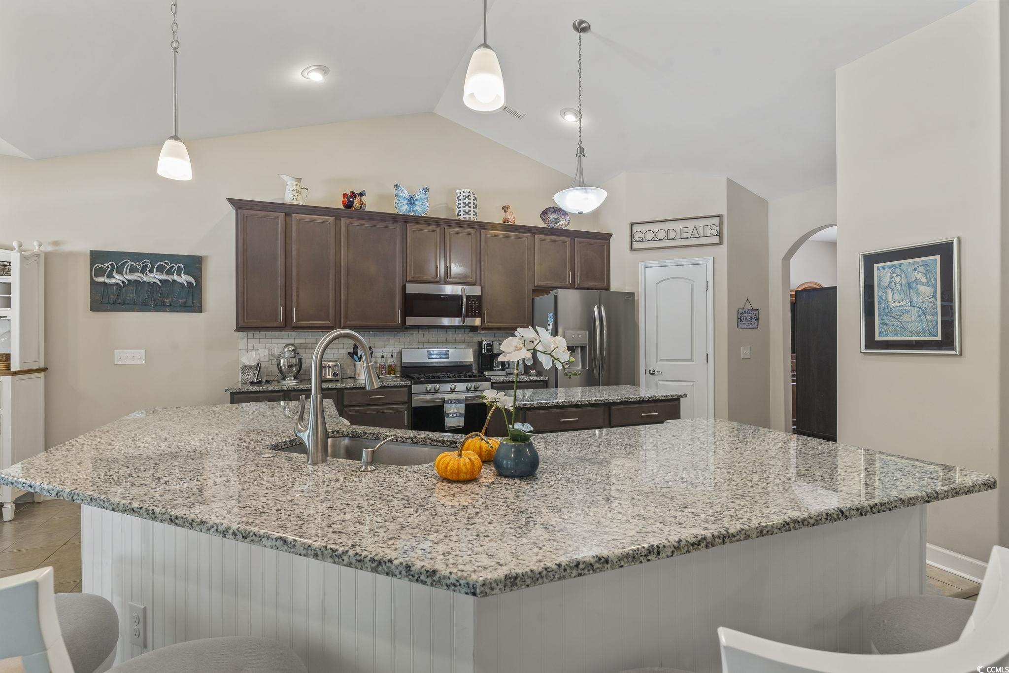 Beautiful 3BR/2BA Home with Oversized Garage in Clear Pond at Myrtle Beach National This beautiful three-bedroom, two-bath home with an oversized garage and custom shelving is priced to sell. From the moment you walk in, you will notice the elegant formal dining room, arched doorways, and open floor plan that connects the spacious living room with its vaulted ceiling and large windows that fill the space with natural light. The gourmet kitchen will impress any chef, featuring granite countertops, custom soft-close cabinets with pull-out shelves, stainless steel appliances, a gas stove, a large lighted pantry, and a breakfast bar overlooking the living area. The expansive primary suite offers a tray ceiling, sitting area, large walk-in closet with custom shelving and cabinetry, an ensuite bath with a custom tiled shower and dual vanity with double sinks. Two additional bedrooms, a full bath, and a laundry room complete the split floor plan, with tile in all wet areas, luxury vinyl plank wood flooring in the living spaces, and high-end carpet in the bedrooms. Enjoy the peaceful screened-in porch overlooking the fenced backyard and wooded preserve which is perfect for relaxing or entertaining. The home also includes screened gutters with buried downspouts, a Rinnai tankless hot water heater, polycarbonate storm shutters, a sprinkler system, upgraded lighting and ceiling fans, a kitchen water purifier, comfort-height toilets, and a top-of-the-line HVAC system with a premium SEER rating and much more! Located in the highly sought-after Clear Pond community within the award-winning Carolina Forest School District, this home provides access to resort-style amenities including pools, fitness center, pickleball, bocce, beach volleyball, and more. Conveniently close to major highways, beaches, golf, restaurants, shopping, hospitals, and the airport, this home truly offers the best of the Grand Strand lifestyle. Schedule your showing today because this one will not last long!