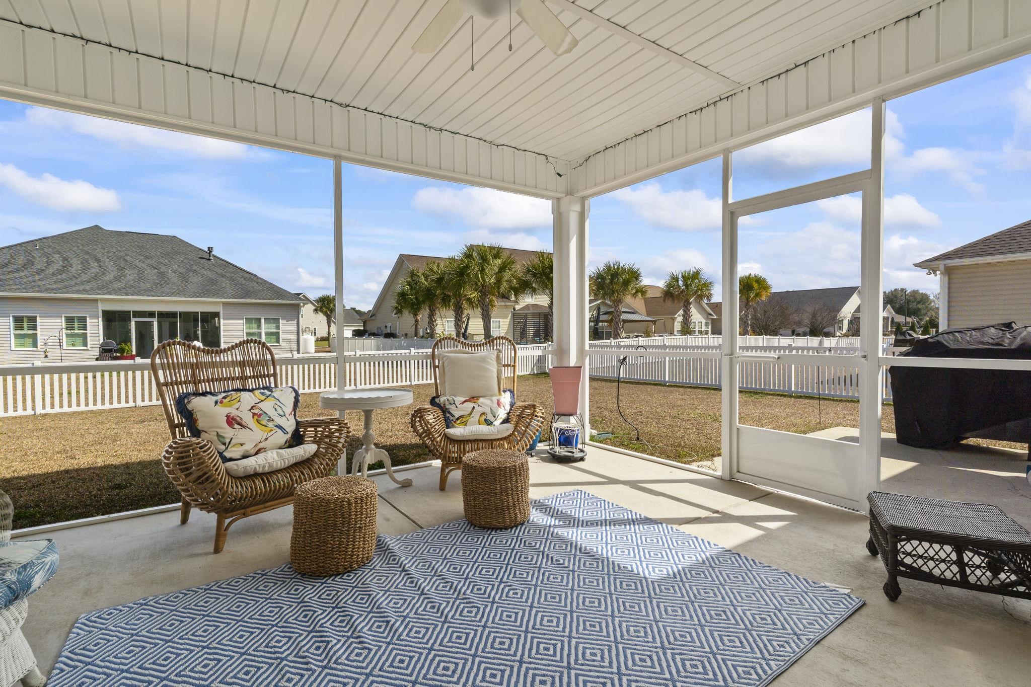 Come tour this beautiful home and feel the charm and uniqueness for yourself THIS Friday, April 10th from 2-4PM. Charming move-in-ready 3BR / 2BA in highly sought-after Conway, SC selling furnished with a small list of items that will not convey. Light-filled, open and airy floorplan with crown molding and wainscoting throughout, shiplap in the foyer and around the kitchen high bar, and plantation shutters on every window. The bright, cheerful kitchen features granite countertops, an island with seating for several stools, eat-in area, and a chimney range hood. Adjacent dining room features a coffered ceiling; the living room offers a tray ceiling and a cozy gas fireplace. Additional interior highlights include a bar door feature, tile shower and garden tub in the primary bath, and granite in all baths. Outdoor living is excellent, screened-in back porch overlooking a fenced, spacious backyard plus an extended outdoor slab off the screened patio perfect for entertaining and grilling. Covered front porch adds curb appeal and relaxation space. For added peace of mind, the home is equipped with a modern exterior security system surrounding the property, offering extra comfort and protection. Ideal location: short drive to historic downtown Conway’s shops, dining, and playhouse, and only 15 miles to Myrtle Beach for easy beach access without the hustle. A wonderful opportunity for comfortable, stylish homeownership in a prime coastal-area location. Square footage is approximate and not guaranteed. Buyer is responsible for verification. Schedule your showing today and make this beautifully upgraded, like-new home yours.