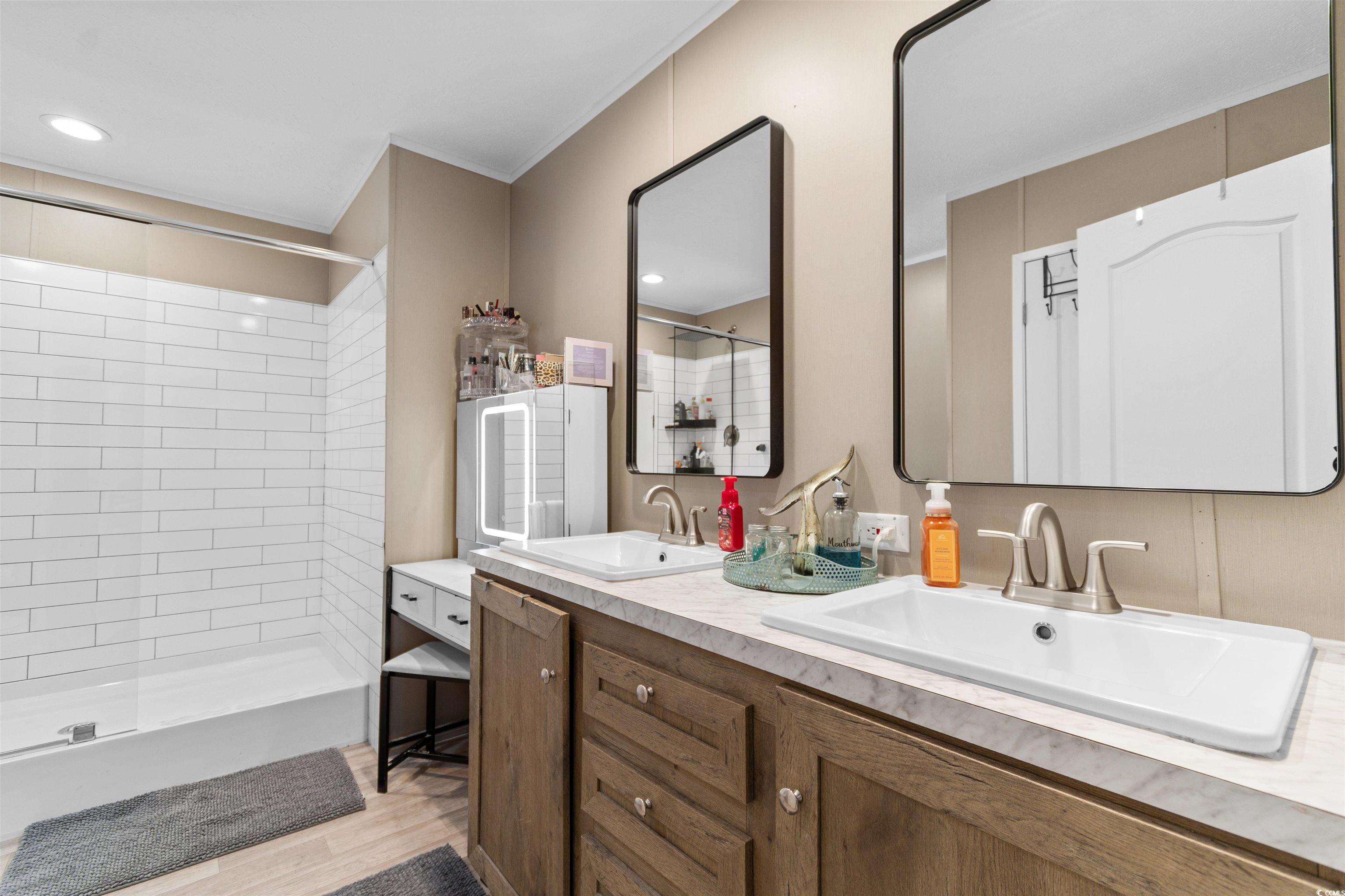 This charming 3 bedroom, 2 bathroom home is situated nicely on a large .6 acre lot with a horseshoe drive and a white privacy fence. It is located within minutes of Conway, Aynor, Myrtle Beach and the entire Grand Strand area and is very close to the Hwy 22 bypass/Hwy 501 interchange. This home's expansive layout is ideal for hosting guests and for daily life, centered around a kitchen that any chef would love, with its abundant counter/ cabinet space, a farm style sink, and an entertainer's island. The comfortable living areas provide ample room for family and friends to come together, and large windows fill the space with natural light, offering tranquil views of the surrounding grounds. Indulge in the expansive master suite featuring a generous bedroom, a large walk-in closet, and an elegant en-suite bathroom with dual sinks and a spacious step-in shower. Out back, the property features a patio and a secure, fenced yard, offering a perfect off-leash space for your pets. The area includes a fire pit, providing a warm and inviting setting for a relaxing outdoor experience. Also, 2 sheds/outbuildings provide room for all your tools and toys, keeping the main house clutter-free. Your dream home awaits. Schedule a private viewing today to step inside and explore the lifestyle possibilities offered by this unique property.