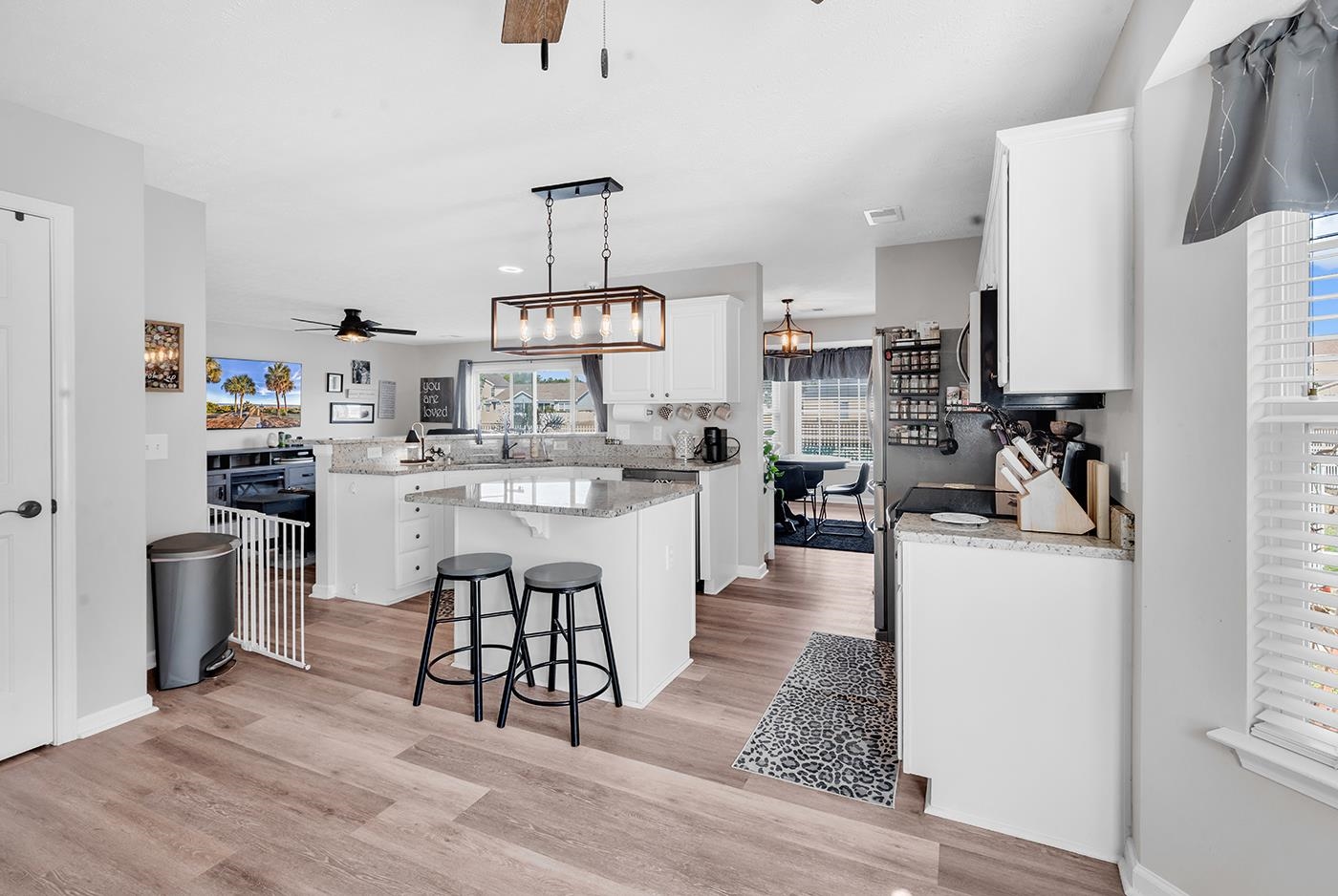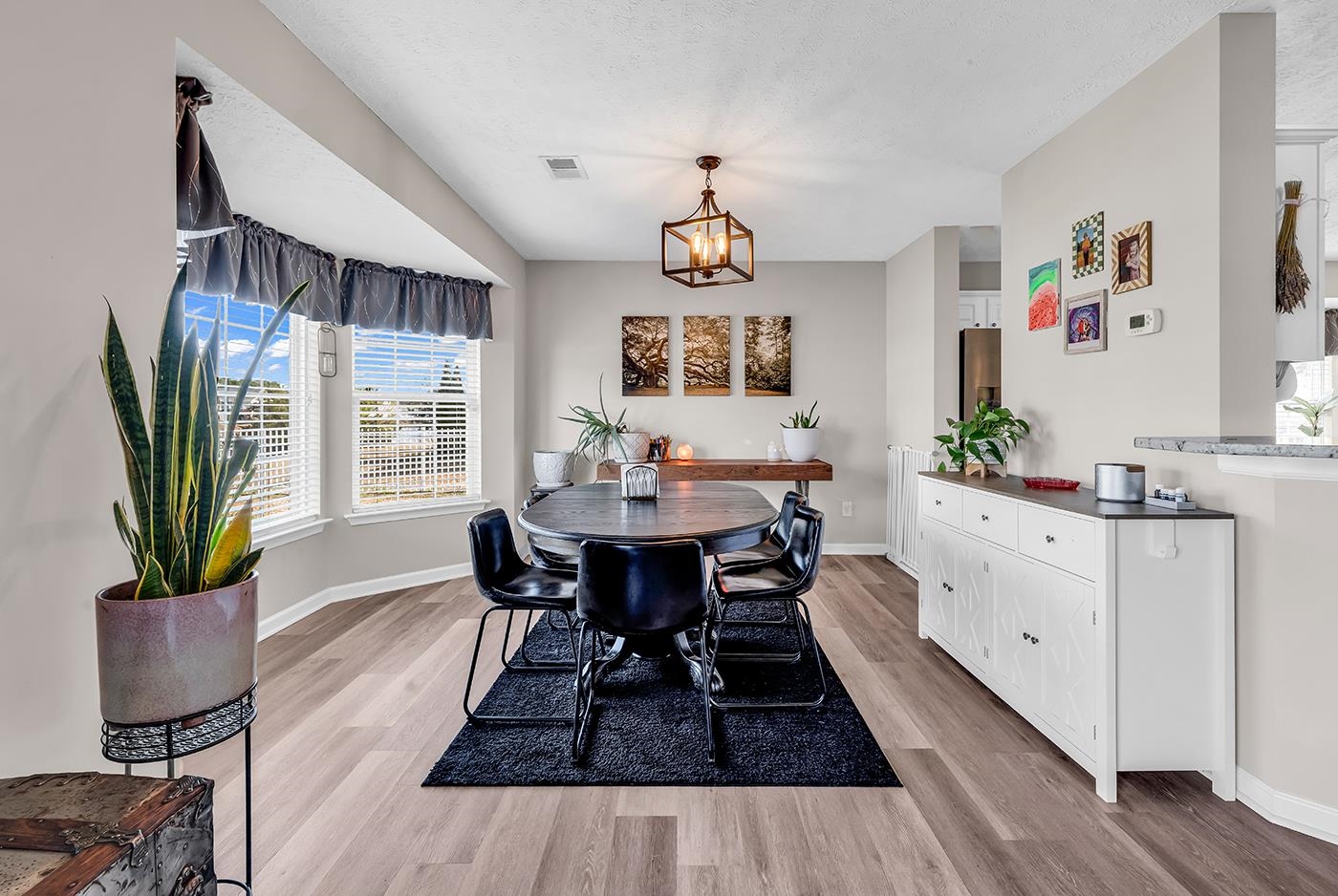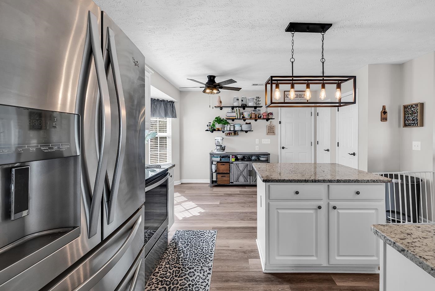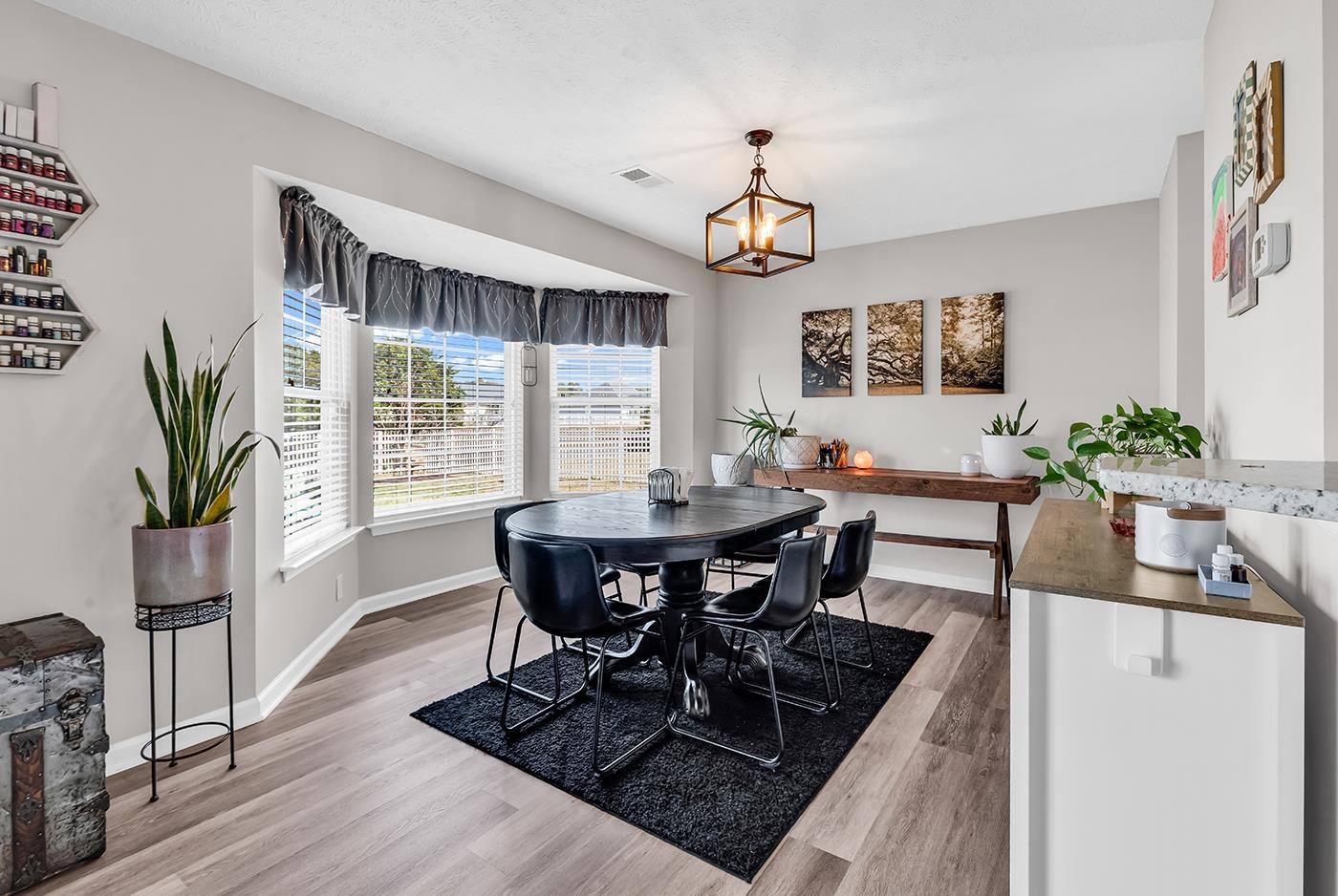 This well-maintained 4-bedroom, 2.5-bath home offers a spacious open floor plan designed for both everyday living and entertaining, with seamless flow between the kitchen, dining, and living areas. The dining room features a charming bay window, while the kitchen is equipped with an oversized island, granite countertops, corner pantry, and stainless steel appliances including the refrigerator. A cozy kitchenette with its own bay window adds additional dining space, and beautiful luxury vinyl plank flooring runs throughout the main living areas. Upstairs, the generous owner’s suite provides ample closet space and a private bath with double sinks and a tub/shower combo, while three additional bedrooms and a full bathroom complete the second floor. The laundry closet includes a washer and dryer for added convenience. Outside, enjoy a fenced backyard overlooking the pond, complete with an oversized 15 x 24 patio — perfect for relaxing or entertaining.