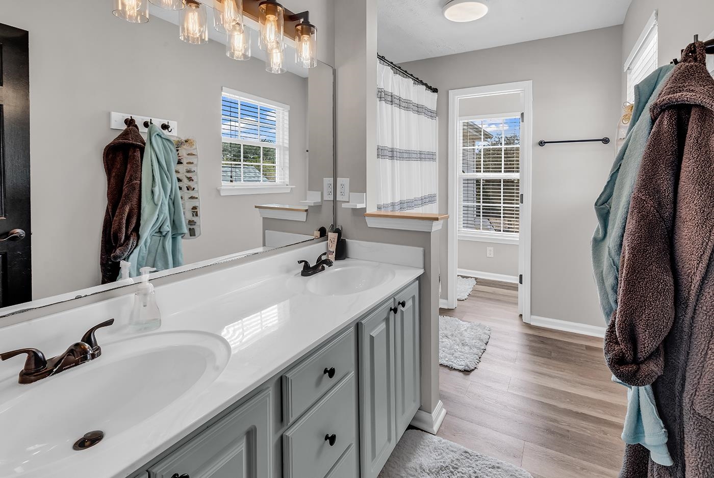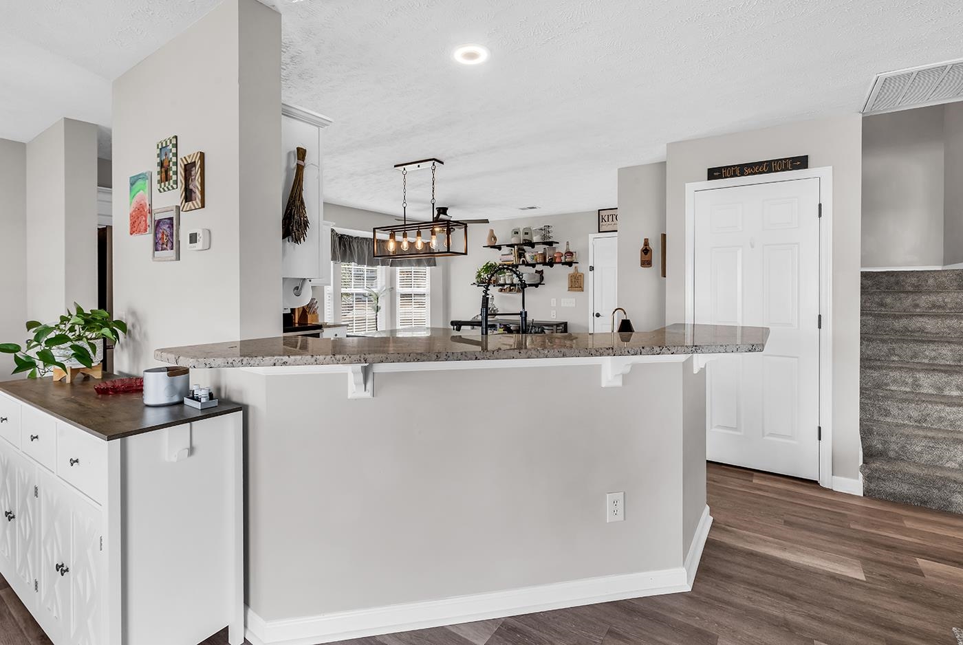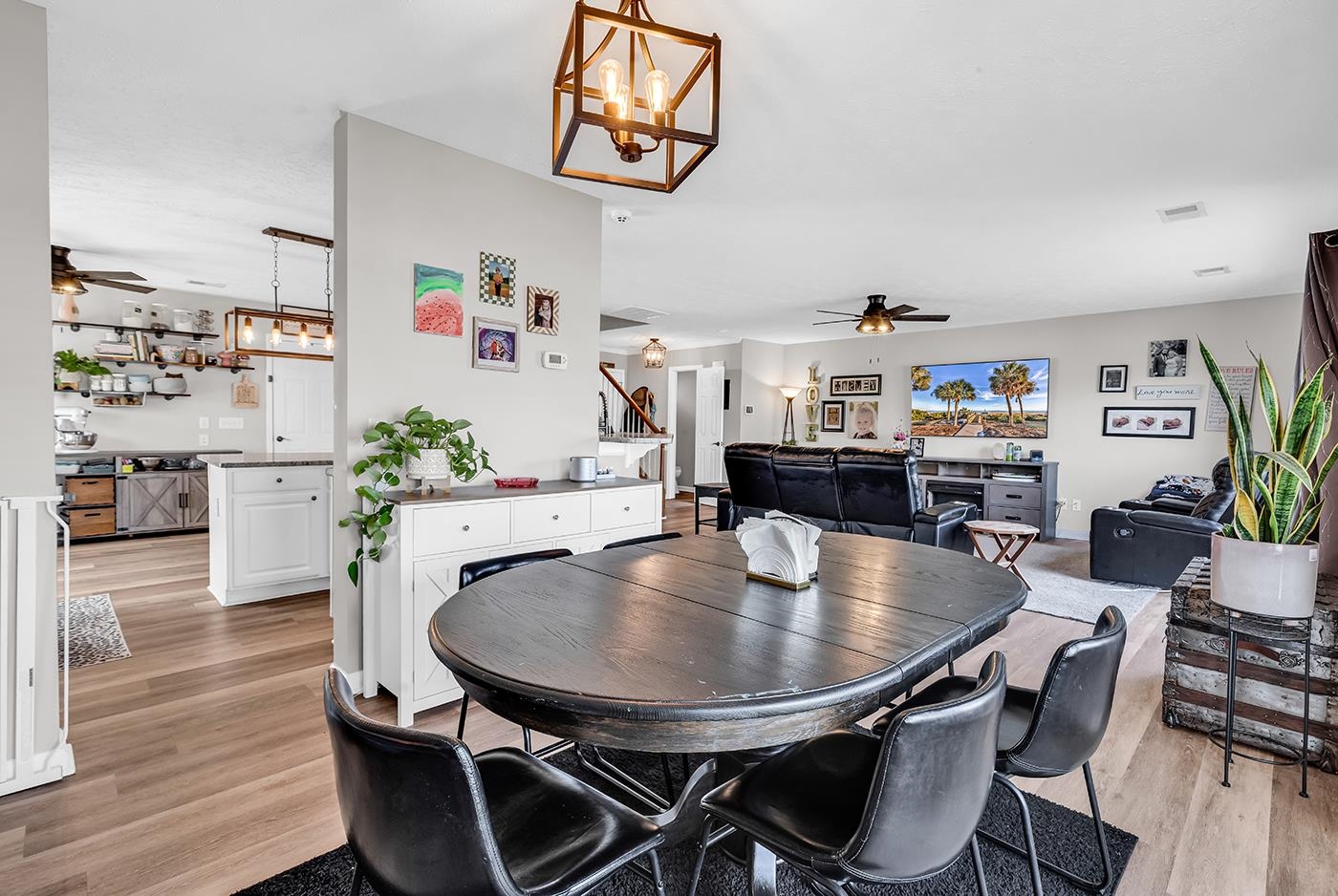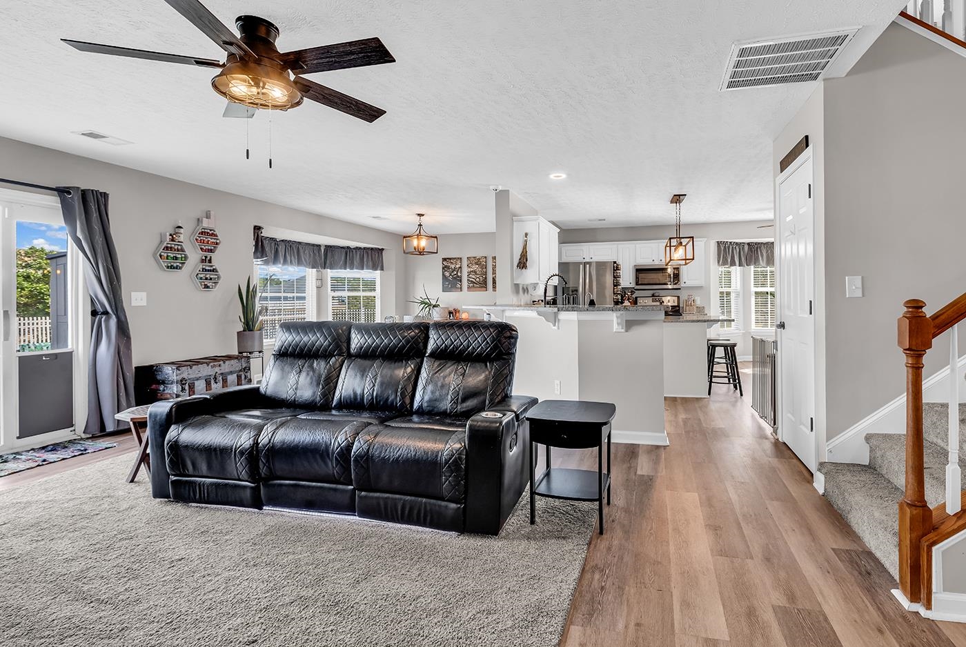 This well-maintained 4-bedroom, 2.5-bath home offers a spacious open floor plan designed for both everyday living and entertaining, with seamless flow between the kitchen, dining, and living areas. The dining room features a charming bay window, while the kitchen is equipped with an oversized island, granite countertops, corner pantry, and stainless steel appliances including the refrigerator. A cozy kitchenette with its own bay window adds additional dining space, and beautiful luxury vinyl plank flooring runs throughout the main living areas. Upstairs, the generous owner’s suite provides ample closet space and a private bath with double sinks and a tub/shower combo, while three additional bedrooms and a full bathroom complete the second floor. The laundry closet includes a washer and dryer for added convenience. Outside, enjoy a fenced backyard overlooking the pond, complete with an oversized 15 x 24 patio — perfect for relaxing or entertaining.