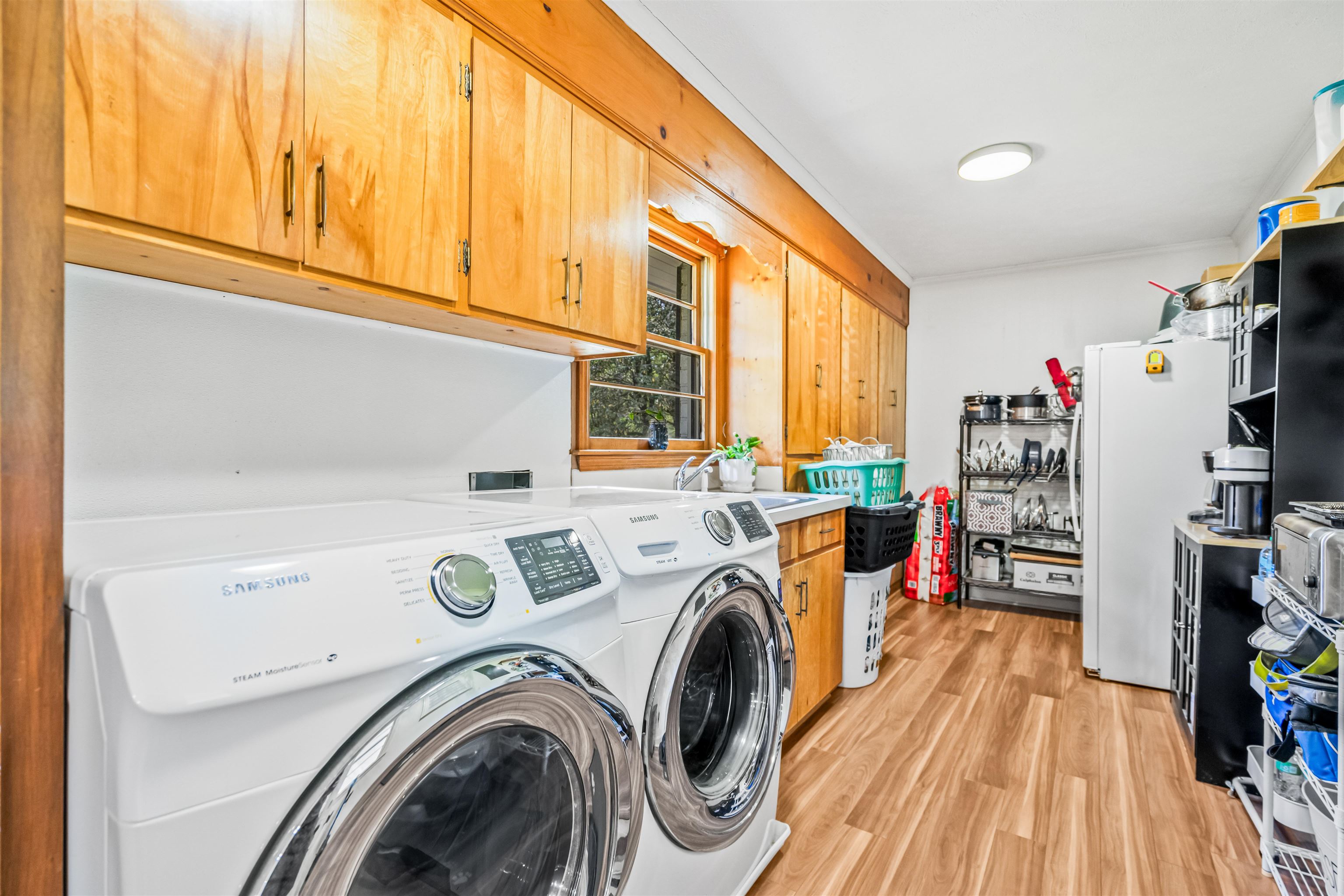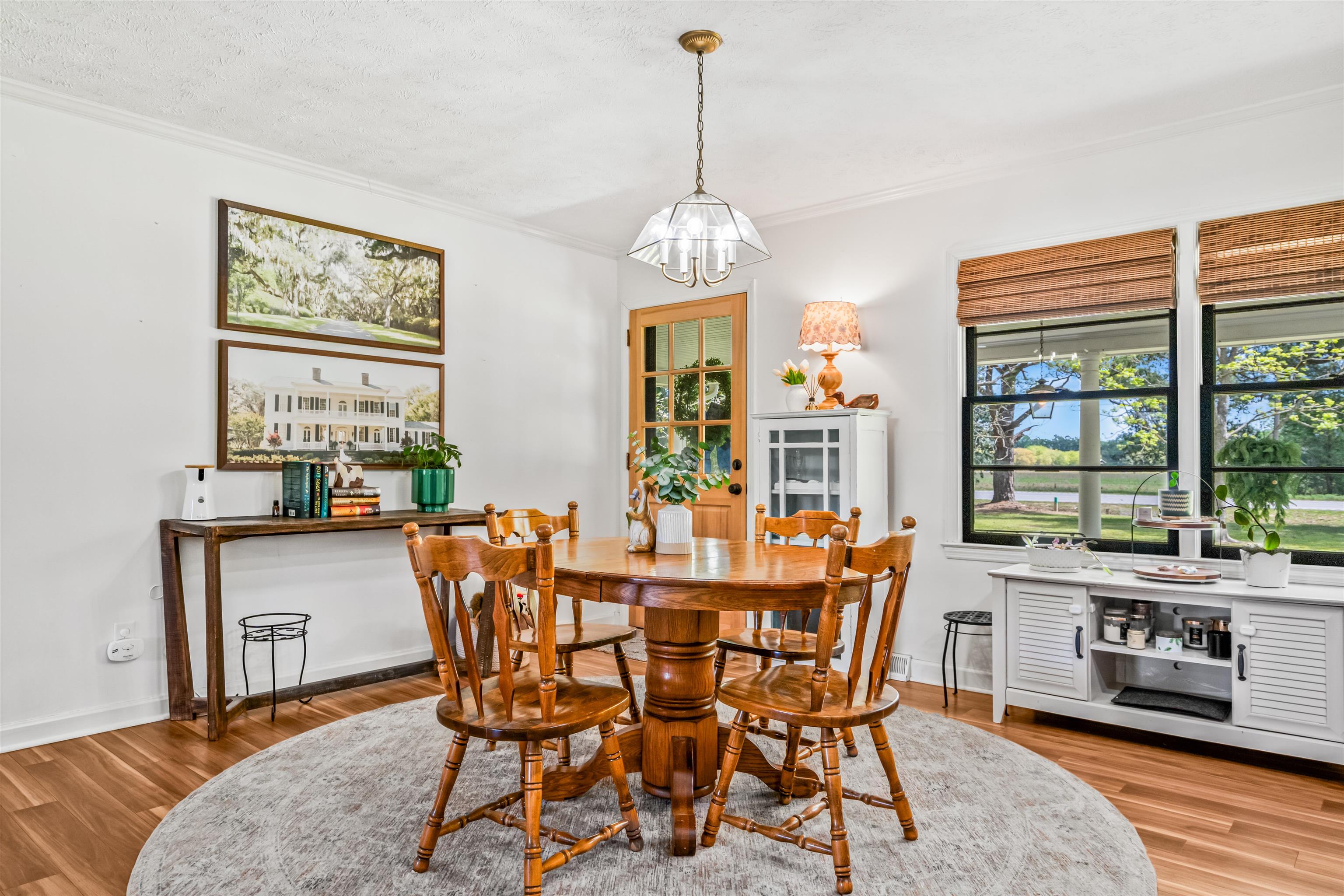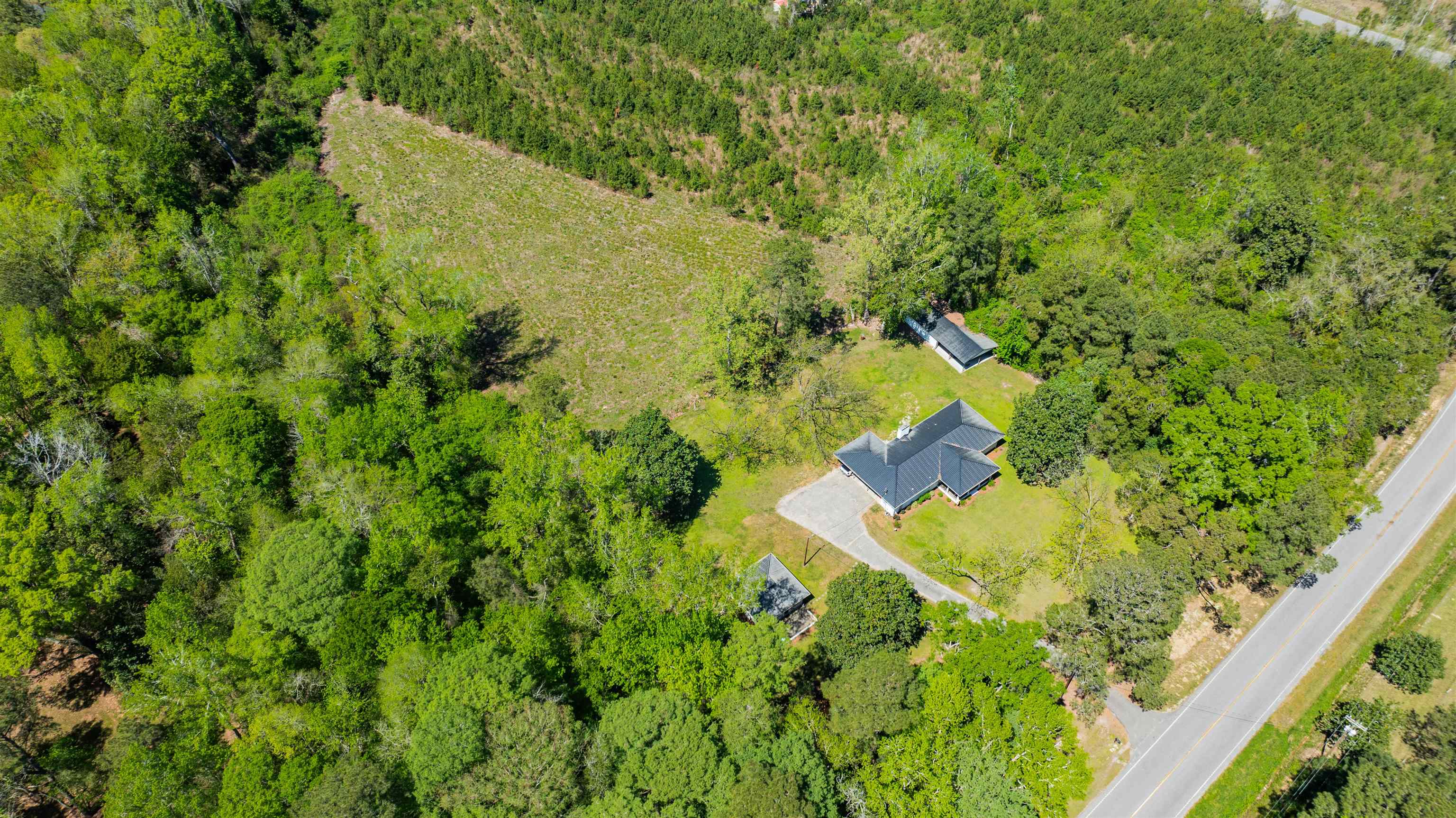 Welcome to this beautiful country estate just minutes from downtown Conway featuring a charming white brick ranch-style home with a 3-car carport, a private guest house, and a spacious 40x24 workshop and all are perfectly situated on this 4.14 acres. As you step onto the brick-floored front porch and enter the main house, you're greeted by stunning wood floors that flow seamlessly throughout. The open-concept design creates an inviting atmosphere, highlighting a spacious great room with a white brick gas log fireplace, wood mantle, shiplap accents, built-in cabinetry, and corner shelving-perfect for displaying cherished photos and decor. The kitchen is certainly stylish featuring white cabinetry, granite countertops, a butcher block center island with a five-burner gas range, a double porcelain farmhouse sink, stainless steel appliances and recessed lighting. Down the hallway you'll find two comfortable guest bedrooms with ceiling fans and a full guest bath featuring decorative tile flooring, tile countertops with double sinks, and a tub/shower combo with tile accents. The primary suite, located at the end of the hall, offers double closets, a ceiling fan, and a private full bath with tile floors, double sinks and tile accents throughout. Additional highlights of the main home include a well-equipped pantry/laundry area with a stainless-steel mud sink, Samsung washer and dryer, and extra cabinetry for storage. Just across the yard sits an adorable approximately 625 square-foot guest house, complete with one bedroom, a living area, full kitchen, and full bath. This inviting space features an open floor plan, mini-split AC unit, tankless water heater, wood countertops, a five-burner gas range, porcelain sink and a charming clawfoot tub/shower combo, along with space for a stackable washer and dryer. This guest house could be perfect for a Mother-in-law suite or guest that want to stay longer or could be a rental opportunity. The 40x24 workshop/barn is ideal for hobbies, storage or equipment, offering built-in workbenches and ample space for lawn equipment, tractors, boats or recreational vehicles. All three structures- the main home, guest house and workshop- feature durable metal roofs installed in 2017. The homes and workshop sit on approximately one acre, leaving an additional 3.14 acres of open land perfect for farming, gardening or even horses. Conveniently located near downtown Conway, you'll enjoy easy access to local shopping, dining and the scenic Conway Riverwalk along the Waccamaw River. Plus, you're just about 15 miles from the beautiful beaches of Myrtle Beach. Don't miss your opportunity to own this peaceful country retreat with modern comforts, flexible living space and room to grow.
