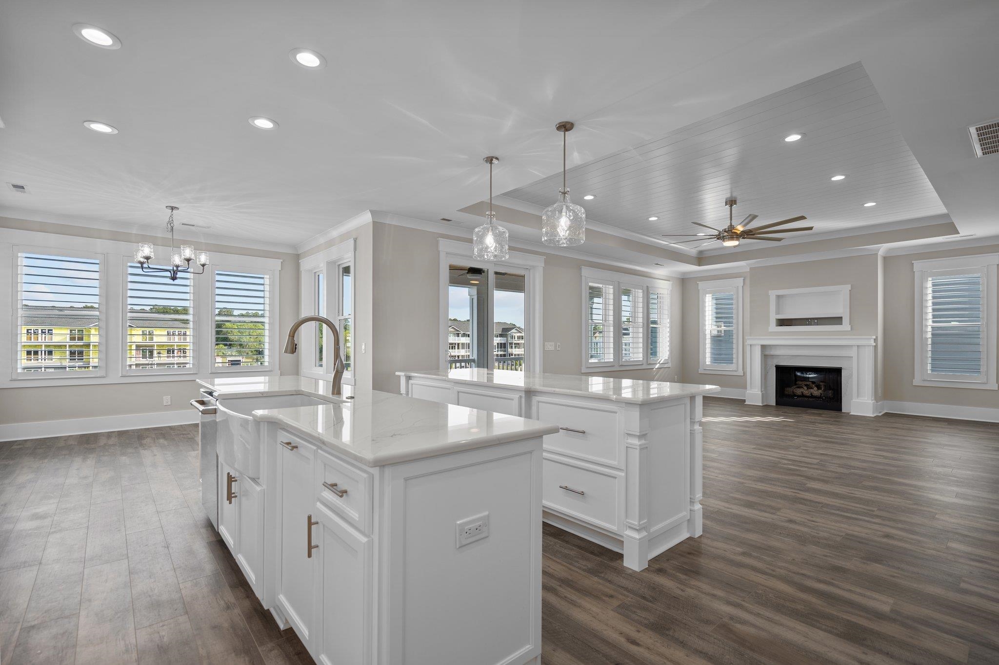 This stunning, newly three year old constructed residence features five bedrooms and four and a half bathrooms, showcasing meticulous attention to detail. It offers direct access to the Intracoastal Waterway, a custom-designed private swimming pool, a private boat lift, and a shared dock. The open-concept floor plan is adorned with high-end quartz countertops, luxury vinyl plank, and tile flooring throughout. You will be enchanted by this exceptional and secure location within the gated community of Paradise Island along the Intracoastal Waterway. The expansive great room and dining area provide breathtaking views through large windows and doors. The spacious great room, complemented by an open kitchen and dining layout, features a tray ceiling and a gas log fireplace. Rear glass doors on both levels open to a generous covered porch that overlooks the exquisite custom pool and the channel leading to the Intracoastal Waterway. Bedrooms are conveniently located on both levels. The home is equipped with stainless steel appliances, designer lighting, oversized cabinets extending to the ceiling, and numerous additional features. An elevator services all floors, and a security system is installed for peace of mind. The garage area beneath the home offers ample space for entertaining and storage, accommodating all your recreational equipment. Enthusiasts of fishing, boating, and water activities will appreciate the shared boardwalk leading to the large floating dock, complete with electricity and water for the private boat lift. The expansive backyard is perfect for entertaining or simply enjoying the life of coastal living. Schedule a viewing of this remarkable piece of paradise island