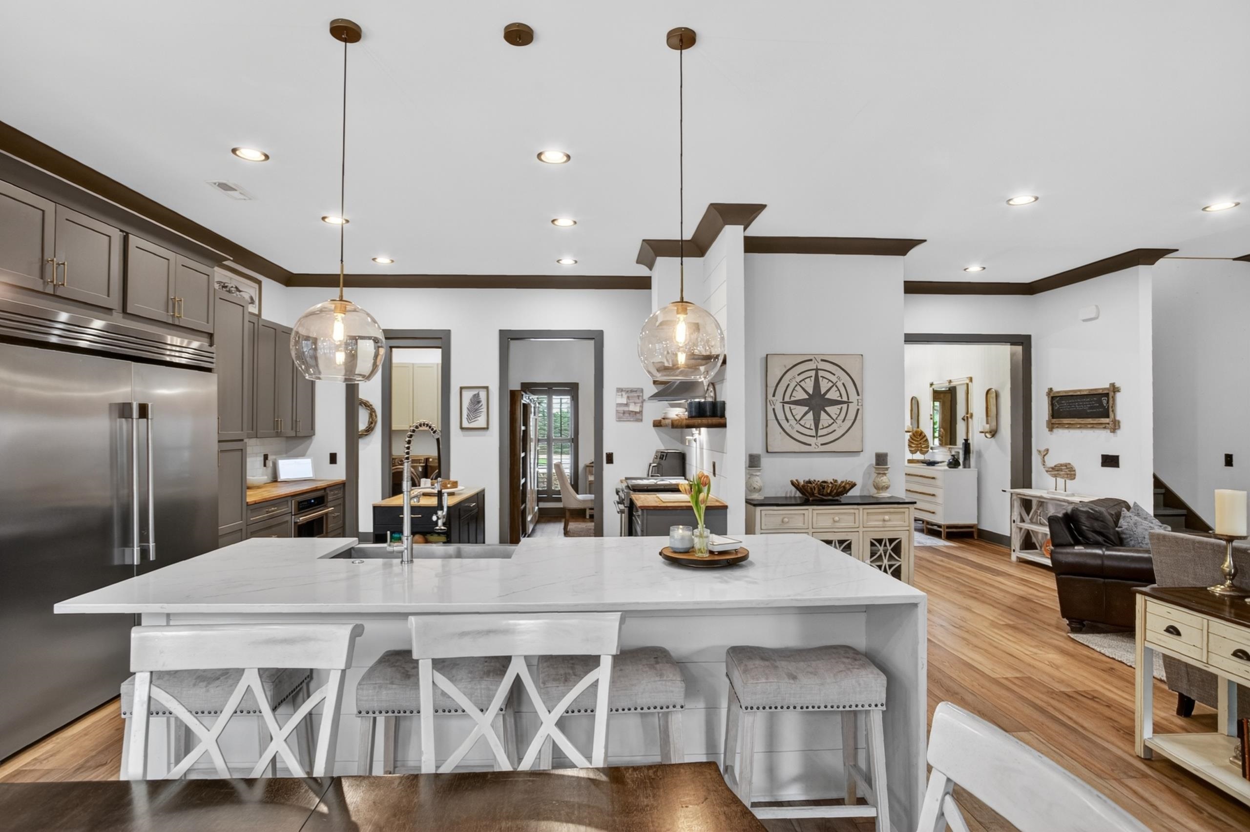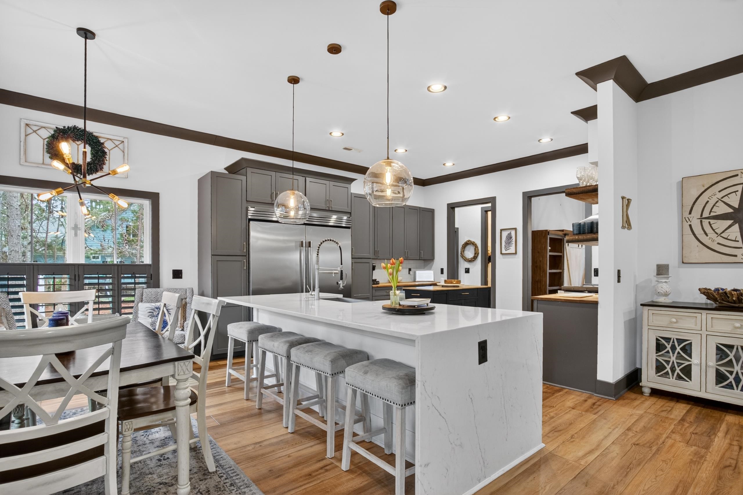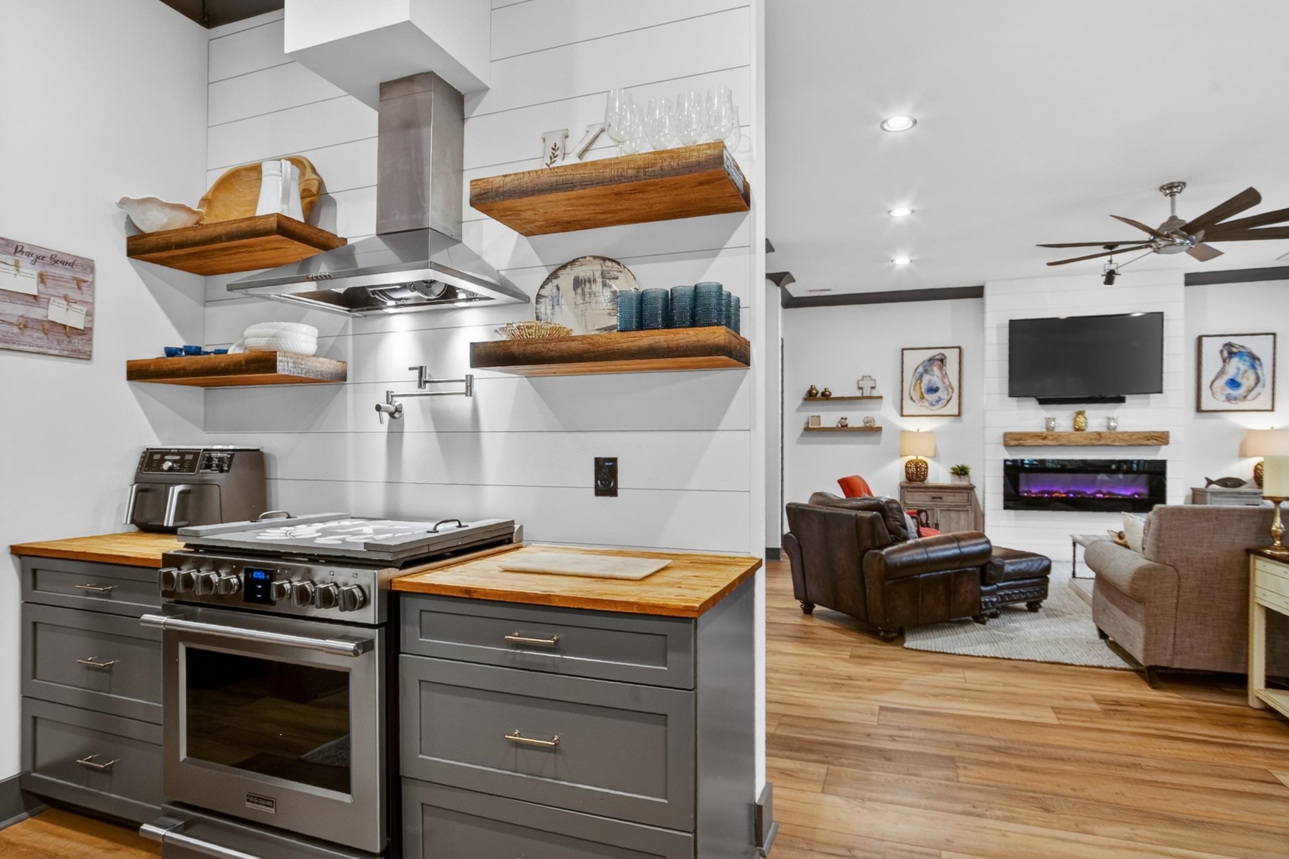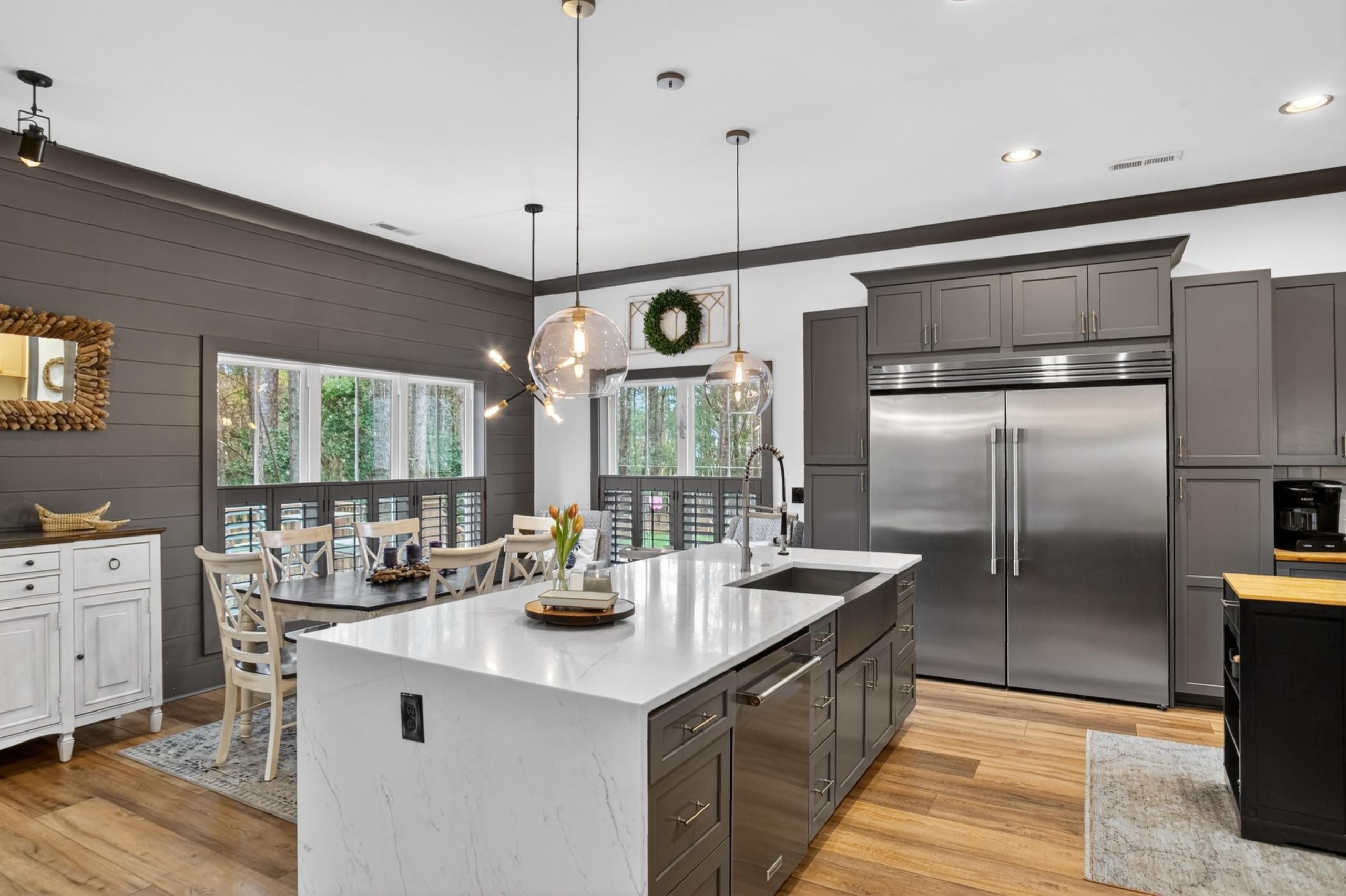 Welcome home to true Southern living at the beach. This stunning Low Country–style residence, built in 2020, showcases exceptional craftsmanship and an array of impressive upgrades throughout. Offering 4 bedrooms and 3.5 bathrooms, the home features a beautifully designed kitchen with quartz countertops highlighted by a waterfall edge, soft-close cabinetry, a HUGE commercial-size refrigerator, natural gas cooking, and 9" wide LVP flooring with no carpet anywhere. The spacious layout includes a dining room, breakfast nook, laundry room, Primary bedroom with two walk-in closets, and abundant windows that fill the home with natural light from wall to wall. Additional interior enhancements include two mounted electric fireplaces and a tankless hot water system. Outdoors, enjoy a built-in kitchen with a built-in BBQ grill, perfect for entertaining. The fenced-in backyard sits on just under half an acre and borders a community common area, creating a rare sense of openness and privacy. Extra-wide garage doors add convenience and functionality. The low HOA fee provides access to a gated amenity center offering a beautiful community pool, half-court basketball area, playground, clubhouse, walking trails through the nature preserve, and a boat dock and landing on Collins Creek, which leads to the Intracoastal Waterway. On-site boat storage is available for an additional fee. Centrally located in the heart of Murrells Inlet, this home is close to boutique shops, grocery stores, outdoor markets, hospitals, Brookgreen Gardens, Huntington Beach State Park, and just 15 minutes from Pawleys Island. A short drive places you on the warm sandy beaches of the Atlantic Ocean. This exceptional property is a true gem—schedule your showing today.