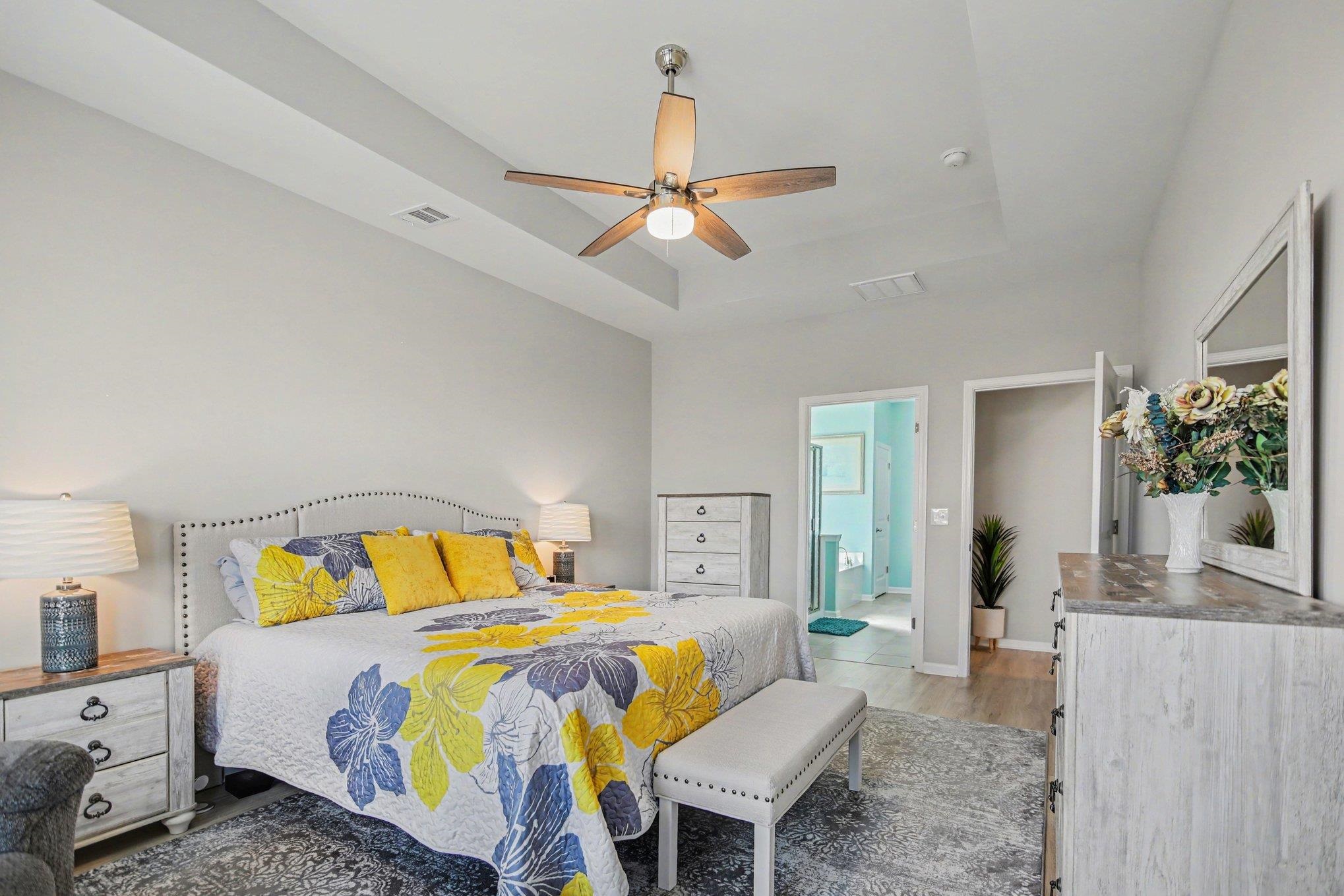 Bella Vita living with the upgrades already done! Built in 2023, this 3 bedroom, 2 1/2 bath home offers the ease of newer construction plus the kind of finishing touches that make it feel complete from day one. Inside, you will find a vaulted ceiling in the main living area, LVP flooring throughout, and a bright, open layout built around a statement kitchen with white cabinetry, stainless appliances, and a large island with seating and plenty of prep space. The primary suite is generously sized, with a tray ceiling, large walk-in closet, and an ensuite bath featuring both a soaking tub and separate shower. The backyard delivers the full package: a beautiful pond lot, pergola, and expanded patio finished with pavers, a retaining wall, and thoughtful landscaping that makes the space feel polished and complete. A premium polyaspartic and epoxy coated garage floor with added storage shelving brings the same finished feel inside, with the driveway and walkway coated as well. Bella Vita offers a pool and clubhouse, and the convenient location puts you about 10 minutes from the airport and roughly 15 minutes from the beach, Market Common, and Broadway at the Beach. ENERGY STAR certified and EPA Indoor airPLUS qualified with a HERS Index of 48, this home was designed and verified for efficient heating and cooling. Utility history available upon request. Seller offering a credit at closing equal to 12 months of HOA dues based on current monthly dues with acceptable terms. This is the kind of home that feels better in person than it reads on paper. Come see how finished this home feels in person. (Owner is a licensed SC realtor)