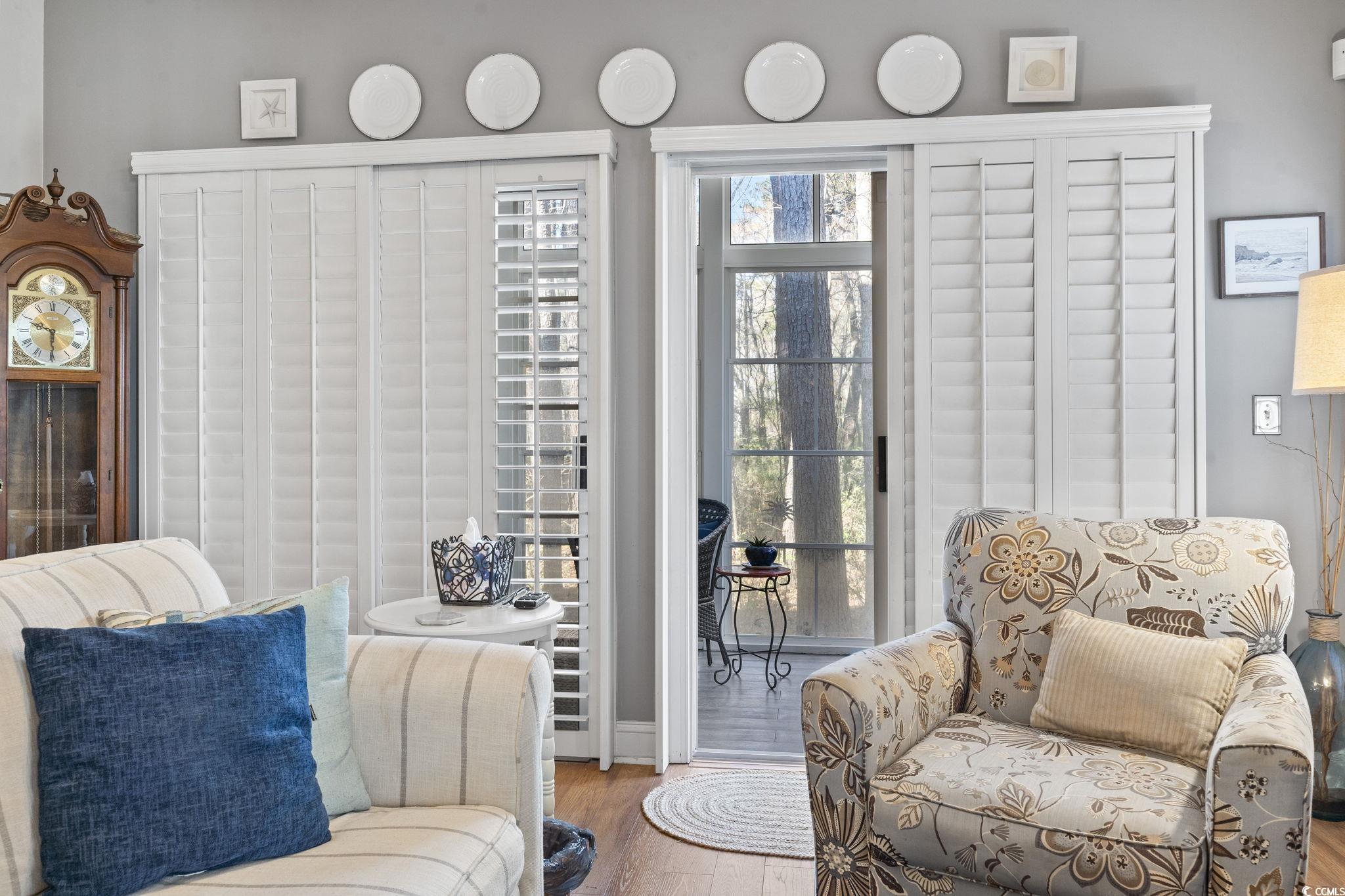 GORGEOUS Immaculately Maintained 3 Bedroom 2 Bath 1st Floor End Unit Condo in a Beautiful Gated Community! This Condo is completely move in ready with Fresh Paint, Pergo Floors, Plantation Shutters in every window and decorative foyer, and the building has a NEW ROOF 2024! Kitchen is beautifully decorated with all white appliances and granite counter tops. Laundry Room is right off the kitchen with installed shelving. All appliances will convey including the washer, dryer, refrigerator, oven, microwave, and dishwasher! Hot water heater 2021 and 2016 HVAC is maintained 2x a year. Screened porch was converted into a three season room with added windows. Master Bathroom has a handicap low rise shower/tub. Master Bedroom has plenty of storage with a walk in closet. Enjoy the community Pool! This Condo is in the perfect location, only being 10 minutes to Conway Hospital, 15 minutes to Tanger Outlets (if you travel down Postal Way, you don't have to travel Hwy 501), 5 minutes to great Restaurants, and 25 minutes to the BEACH!! Schedule a Showing TODAY!