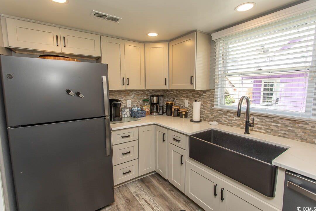 This is the ONE you've been waiting for! This completely remodeled AND furnished cottage is a few blocks from Ocean Drive and the Atlantic Ocean in North Myrtle Beach. New flooring, appliances, kitchen cabinets, and bathrooms are the polish on this home. The private courtyard, patio, outdoor shower and yard make this the perfect Beach retreat for your full time home or for the perfect beach house. Shopping, Dining, Entertainment and the Beach are all just minutes from this home. If you have ever thought about a home at the beach, you'll want to look this one over to see if it is the ONE for you. Per the Horry County Assessors office, this house is NOT in a flood zone and does NOT have an HOA.