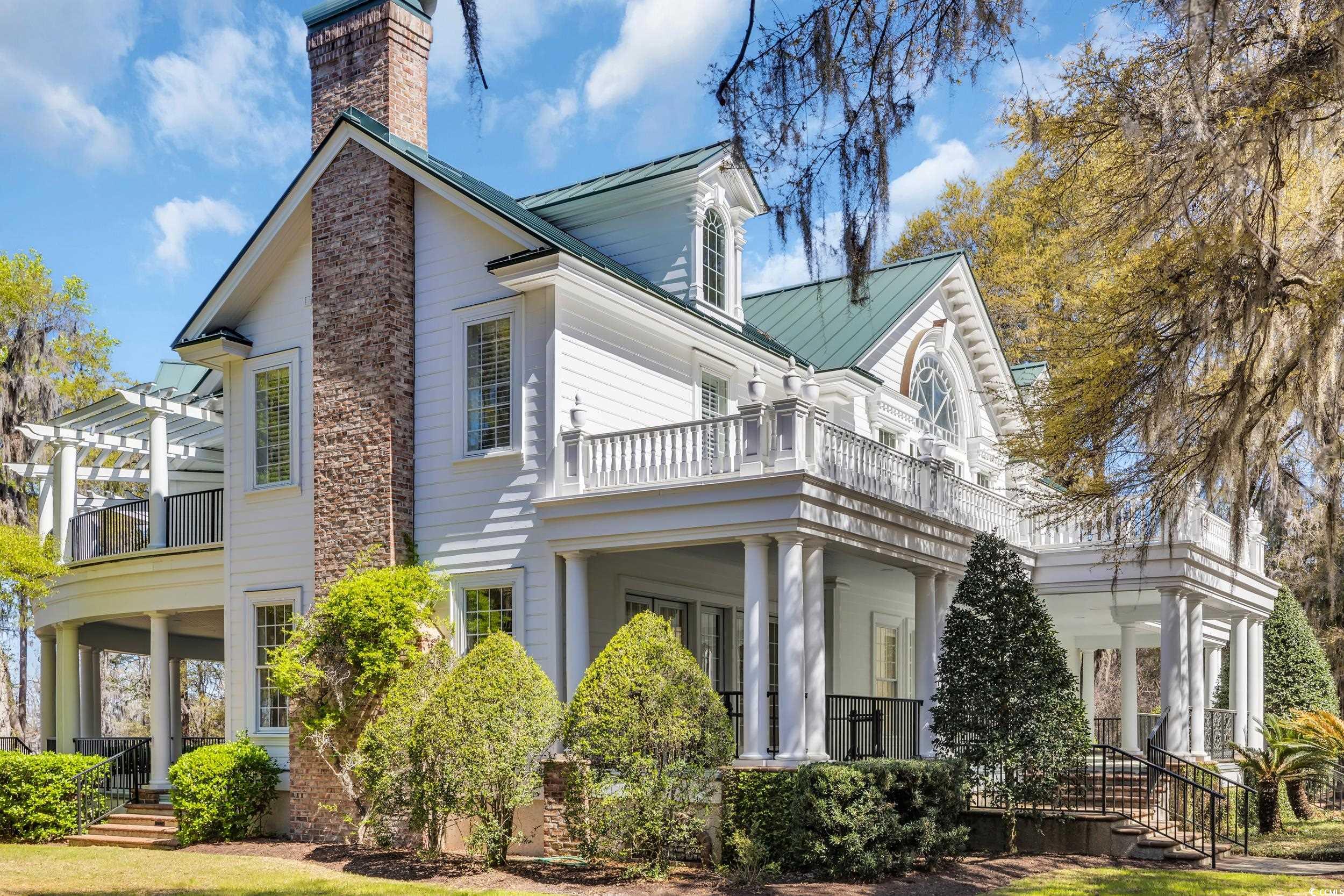 A one-of-a-kind property, completely Renovated to preserve the home’s classic low country charm while adding sophisticated modern touches. Situated on over 5 acres of private riverfront, manicured grounds overlooking the Waccamaw River. Offering 4 bedrooms, 4.5 bathrooms & is a masterpiece of modern design and historical preservation, blending the best of both worlds. You will notice the pristine landscaping offering sweeping views of historic rice fields that stretch out like a tapestry below, with views of the water. The entryway with its grand staircase not only serves as a path to the upper level, but a striking focal point with plenty of natural light coming through the expansive windows. On either side of the foyer are two large rooms with marbled finishes, fireplaces-what could be a fabulous dining room, library, or another living room-endless options! The fireplaces have new, remote controlled logs. The original wood floors have been refinished and crown molding has been added throughout, enhancing the architectural beauty of each room. The large family room is the heart of the home and offers creative possibilities for design and layout. Together, the family room, wet bar, and half bath create a spacious and functional hub. The newly designed wet bar is conveniently located providing a great space for entertaining. Equipped with custom cabinetry, a quartz countertop, Hoshizaki ice-maker, wine cooler and glass shelving for glassware. French doors open to the expansive porches, making it the perfect space for enjoying a quiet evening or a lively gathering. The covered, wraparound porches on each level that invites relaxation, where you can enjoy the breeze and take in the panoramic scenery. The open floor plan flows nicely into the Gourmet Kitchen, which has been meticulously planned and equipped with stainless steel, state-of-the-art appliances including a professional-grade range & oven, custom cabinetry, vast island, quartz countertops and designer light fixtures. There are two Bosch dishwashers ensuring effortless clean up. For additional storage, the kitchen features both a pantry and a butler’s pantry with plenty of shelving and cabinets. There is a functional desk area within the kitchen which blends practicality into the space. An Elevator serves each floor, ensuring ease of movement throughout the home. An additional bedroom, closet and full bathroom was added downstairs off of the main living area. A great guest, bonus or primary room if one chooses. Follow the staircase up to the expansive, primary suite with high ceilings and natural light. One of the standout features of this room is the private, balcony with stunning views. The finishes of the primary ensuite are sleek and refined offering a freestanding soaking tub, an oversized, tiled, Steam shower, double vanities, custom designed His/Her closets and a water closet. In addition, on the third level are two, oversized bedrooms each offering plantation shutters, private bath and custom closets. Three-car garage with ample amount of parking along with plenty of storage with 3 storage spaces and a workshop with granite countertops. Another amazing, feature is the climate, controlled Wine Cellar designed to store your wine collection in ideal conditions. There is a charming guest cottage nestled within the grounds, whether used as guest quarters or an office this cottage provides a tranquil space away from the main residence. The cottage offers beautiful wood floors, fireplace, full bathroom and walk-in closet. This home is a masterful blend of Southern charm and modern luxury, designed to complement the natural beauty of its surroundings. Homeowner's enjoy both River & Ocean side amenities. The River side offers the private marina & a deeded boat slip for the homeowner, clubhouse, fireplace, sitting area and kitchenette. Prince George is one of the most exclusive neighborhoods around & the only south strand community to stretch from the ocean to the river.