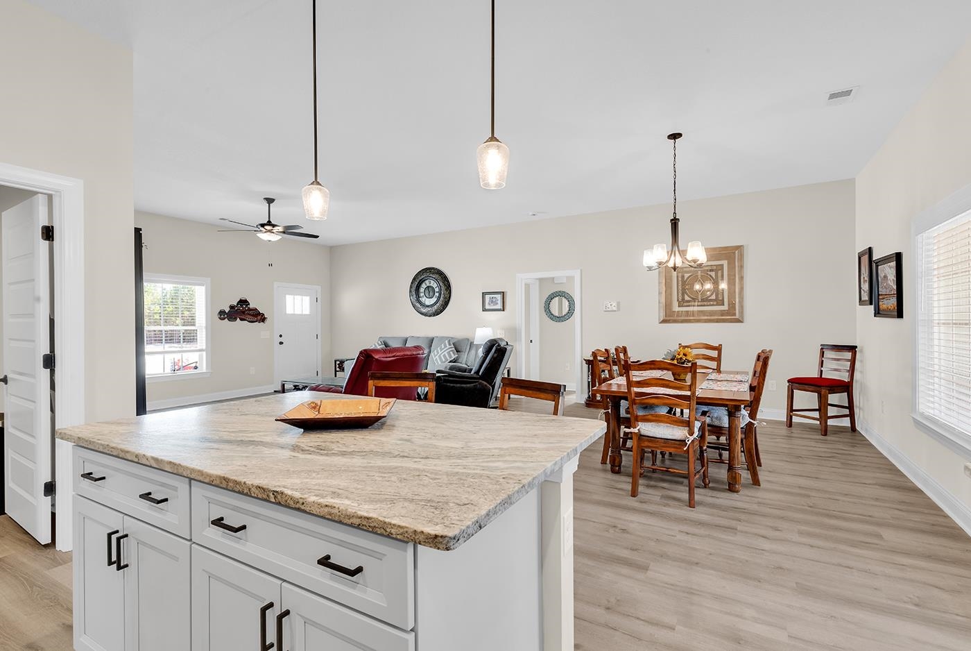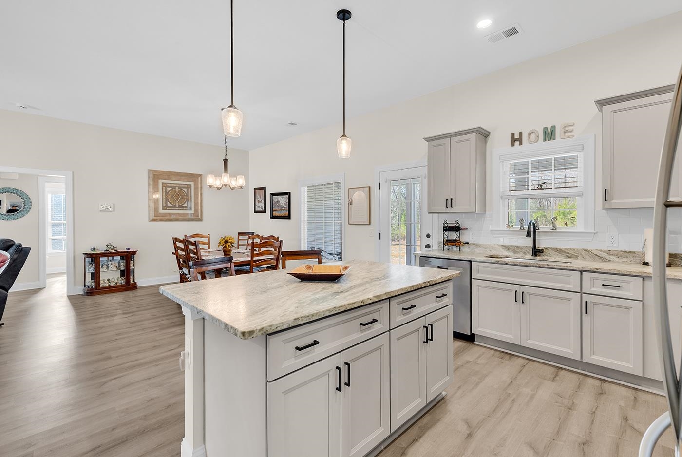 Drum roll, please… Welcome to 514 Cane Branch Rd — where peaceful country living meets modern comfort! This beautifully maintained 3-bedroom, 2-bath home sits on an impressive 2.27 acres, giving you the space, privacy, and freedom you’ve been dreaming of with NO HOA. Relax on the inviting covered front porch, enhanced by newly added stylish black gutters and downspouts and a premium front storm door. Along with plantation blinds added throughout! Enjoy this Sunlit open-concept split floor plan which offers both style and functionality. The kitchen has been recently painted white to showcase the beautiful gray cabinetry and sleek black hardware. A beautiful view out the kitchen window centered over the deep gourmet sink. The large center island featuring designer granite countertops, elegant pendant lighting, and a classic white subway tile backsplash, creates a bright and contemporary space perfect for entertaining. The primary bedroom is a true retreat, featuring a tray ceiling, a lovely two-sink vanity, his and hers walk in closets, and a spacious walk-in shower. On the opposite side of the home, the guest bath is conveniently located between two guest bedrooms, providing comfort and privacy for family or visitors. Step outside to enjoy the screened-in back porch, perfect for relaxing and entertaining, along with an additional concrete pad ideal for grilling and outdoor dining. This home is also equipped with ADT security system & upgraded dimmer switches. Don't miss this opportunity to call this special home & property yours! Conveniently located in Loris, with easy access to Conway and the Grand Strand via Hwy 22.