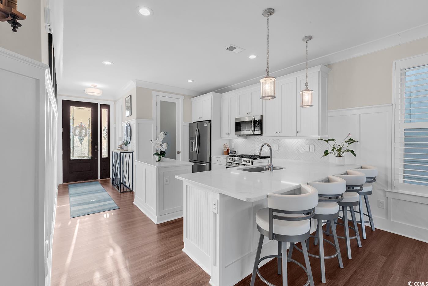 Talk about a Rare Find! This unique property sits on a gorgeous lake with two stacked decks that overlook beautiful, serene lake views and is right across from the Ocean! This gorgeous Beach retreat is located near some of the best shopping, and dining the beach has to offer. It is located in the gated community of Ocean Village. Enjoy amazing views and the sound of the ocean waves as you sip your coffee each morning. This Elegant coastal retreat featuring 3 bedrooms, 3.5 bathrooms, and a spacious loft, is thoughtfully designed for both comfort and style. This impeccably maintained home offers a light-filled interior with vaulted ceilings in the loft and third bedroom, enhancing the open and airy atmosphere throughout. The kitchen is open and perfect for the entertainer. It boasts quartz countertops, white cabinets, walk in pantry and a gas range. This home shows like a model home. The master suite offers a custom closet, walk in tile shower and is sure to wow you. Enjoy stunning water views from two private rear tiled decks, one is completely covered for maximum use and the other offers a retractable awning. This is perfect for cocktails, evening sunsets, or entertaining guests. The home also features a wet bar, a 1.5-car garage, and tasteful finishes that complement its refined coastal aesthetic. Residents enjoy access to a variety of amenities, including a pool, tennis courts, and outdoor grilling areas. Walk straight across to the beach and enjoy golf cart rides down the Golden Mile. This property offers the perfect blend of luxury, convenience, and coastal charm. Thoughtfully curated for elevated beachside living, don't let this one get away!