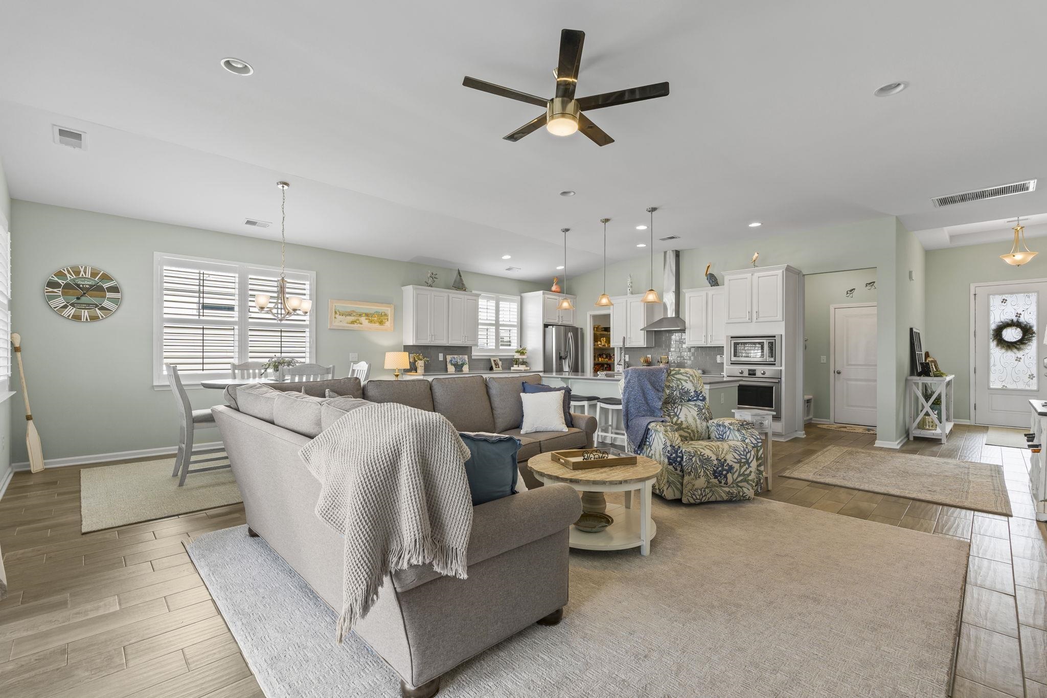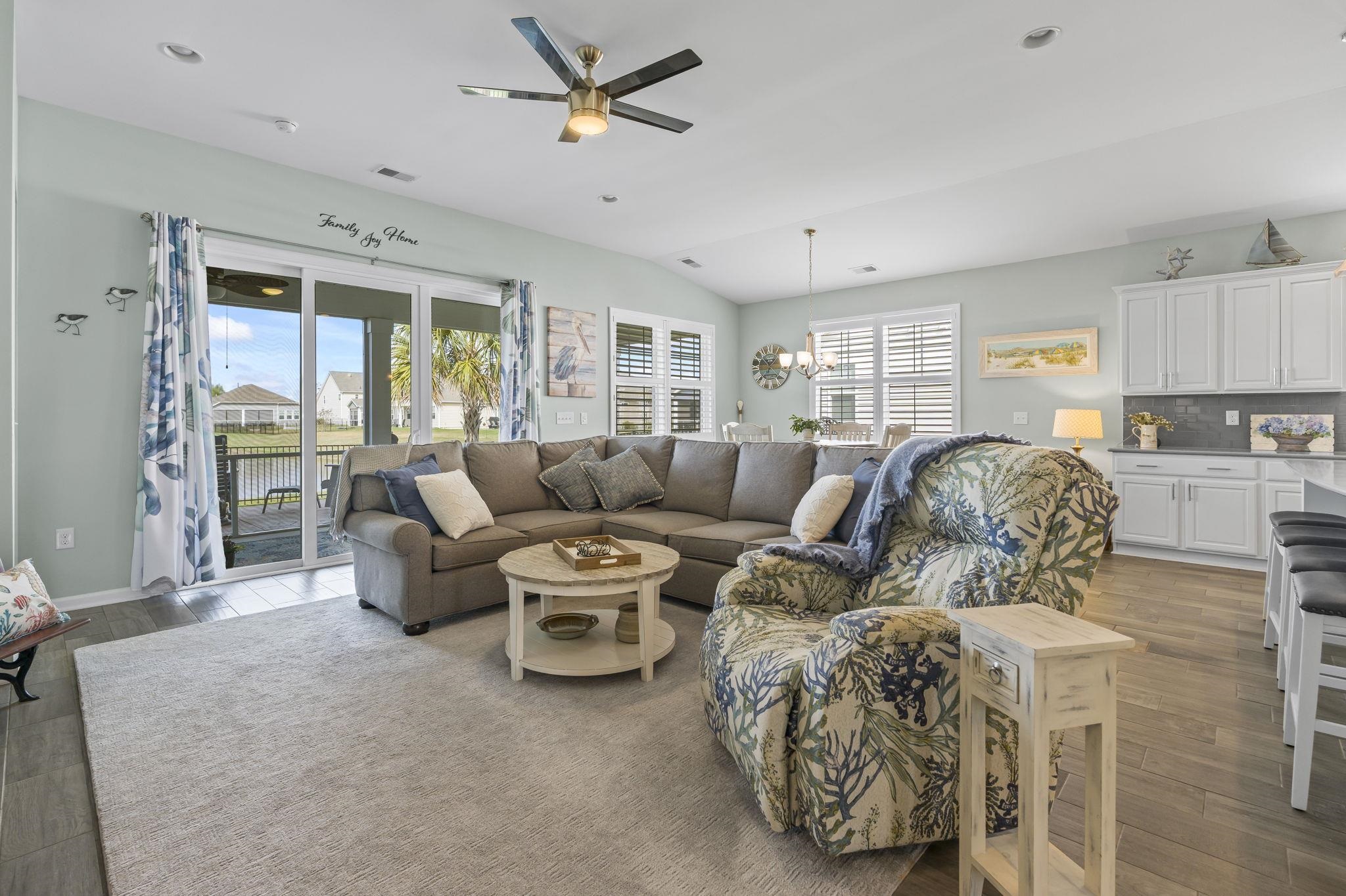 Welcome to your dream home in The Farm at Timberlake, where comfort, style, and location come together beautifully. This meticulously upgraded Eaton floor plan offers 3 bedrooms, 2 full bathrooms, and a bright open-concept layout designed for modern living. The main living areas feature wood-look tile flooring, adding both durability and elegance. The gourmet kitchen is a chef's delight, complete with stainless steel appliances, beautiful countertops, ample cabinetry, and convenient pull-out drawers for easy access and organization. Relax and take in peaceful lake views from the large, screened porch, the perfect setting for morning coffee or evening unwinding. The fenced backyard provides both privacy and space for outdoor enjoyment enhanced by custom stone landscaping. Additional upgrades include new carpeting, plantation shutters, a garage door screen, a Rinnai tankless water heater, and a spacious two-car garage. Located just minutes from shopping, dining, and a short drive to the beautiful beaches of Myrtle Beach, this home offers the perfect balance of a friendly community atmosphere and convenient coastal living.