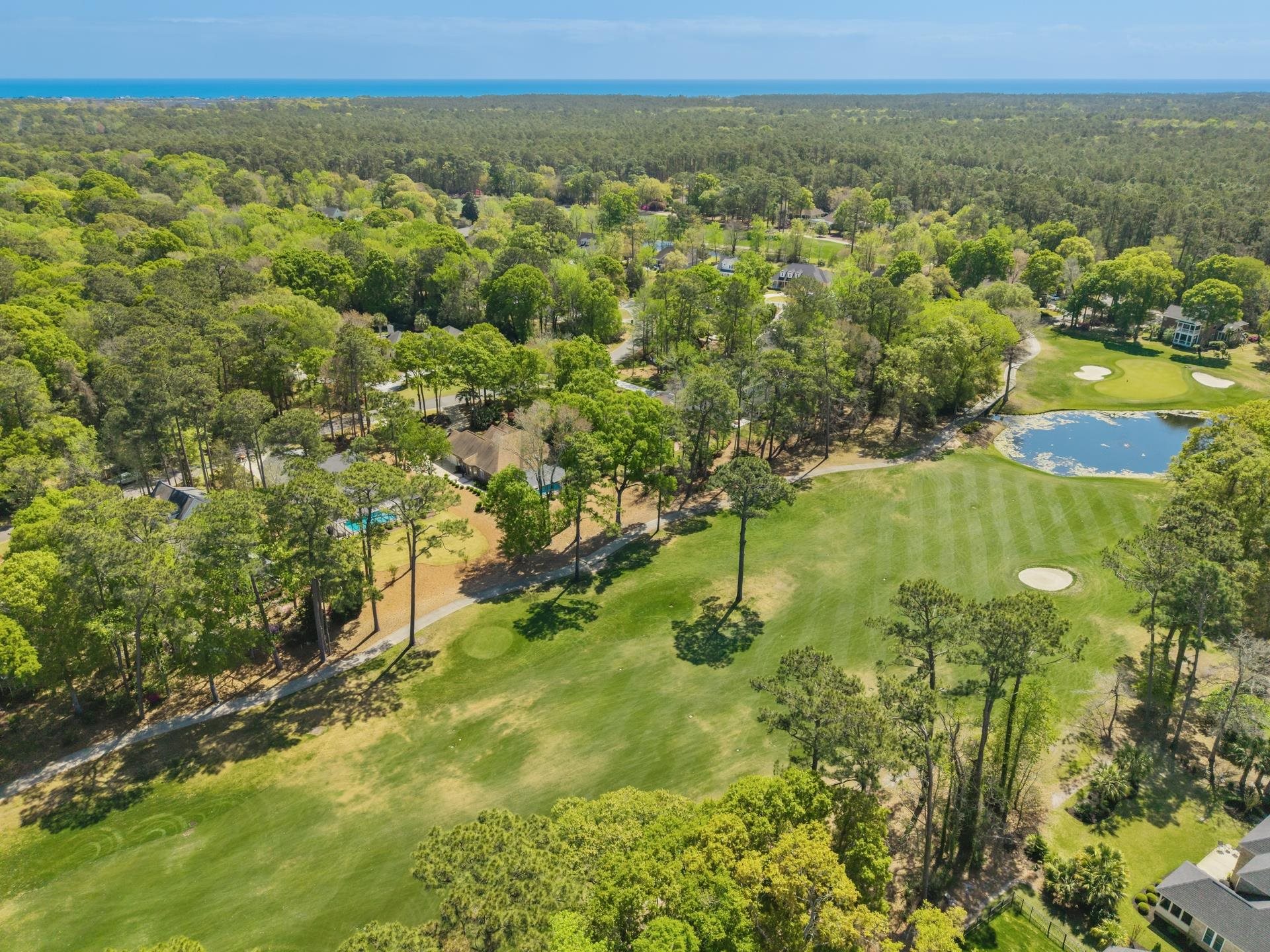 549 Old Augusta Drive is situated within Pawleys Plantation; a spectacular gated community in Pawleys Island, SC. This Hardi plank and brick residence offers the perfect blend of privacy and luxury. The residence is overlooking the renowned Jack Nicklaus designed Golf Course and delivers beautiful views and an exceptional Lowcountry lifestyle. Step inside to an open floor plan that seamlessly connects the living and family rooms, highlighted by soaring ceilings, chair rail detailing, extensive molding and recessed lighting. The living room features a gas fireplace—perfect for relaxing evenings at home. The heart of the home is the stunning kitchen, complete with cherry cabinetry, granite countertops, upgraded stainless steel appliances, a double oven, and a spacious eat-in area. Just off the kitchen, the formal dining room is ideal for creating an inviting space for meals and entertaining. The first-floor primary suite offers a private retreat with a sitting area, a large walk-in closet, and a luxurious bath featuring double sinks, a jetted tub, and a separate shower. Upstairs, you’ll find three additional guest bedrooms. One with a full bath and the other two feature a Jack-and-Jill bath. An additional bedroom includes an oversized walk-in closet with a wet bar and an adjoining flex space—ideal for a nursery, home office, den or sitting area. Outdoor living is just as impressive, with a large, screened porch and an extended patio overlooking the golf course—perfect for gatherings and quiet enjoyment alike. The mature landscaping and expansive lot provide a serene, private setting. Additional highlights include a detached three-car garage and an oversized media/entertainment/workout room above, complete with built-in cabinetry, a wine/beverage refrigerator, and a full bath / shower combination. Optional country club memberships are available for those seeking a premier golf experience or access to the pool or tennis. The home is located just minutes from the beaches of Pawleys Island. This well-maintained 4-bedroom, 3.5-bath home is truly a must-see—offering an exceptional combination of space, quality, and breathtaking golf course views.