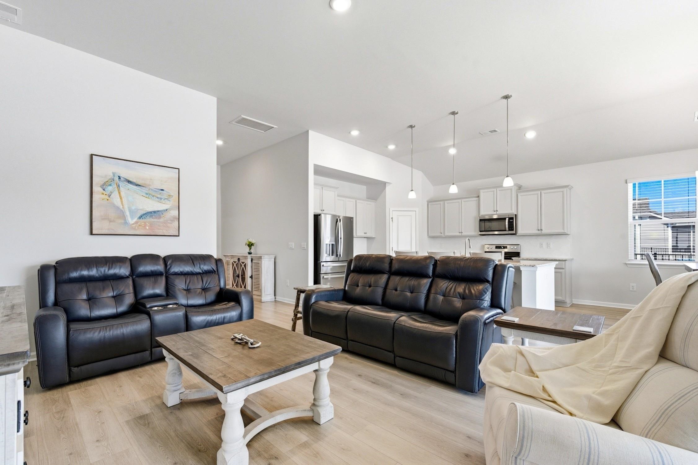 Come see this lovely home located directly on the water in Pelican Bay Lakes! The beach in North Myrtle is less than 10 minutes away! It's only about 3 miles so you can almost touch it from here! This move-in-ready home is being offered fully-furnished with high-end pieces and coastal decor from Seaside! It looks better than a model home and it comes with all kinds of extra upgrades! This single-level home has an open concept with a split floor plan. As you come inside, you will notice super high ceilings and upscale luxury flooring throughout the main living area and primary bedroom. This unique home was built with an additional 4 feet of length added to the garage and front guest bedroom. The large kitchen features granite countertops, a walk-in pantry, and stainless steel appliances with a high-end refrigerator. The owner's suite features a custom accent wall, tray ceiling, and two walk-in closets. You can even watch the sunrise over the water from bed! The attached bath has a spacious tile shower, dual sinks, and a vanity. This wonderful home also has a drop-zone and a separate laundry room. The washer/dryer will be included along with all of the window treatments. This beautiful home has huge sliding glass doors, which was an additional option offered by the builder. These open up to an extended patio with electronic screens on the porch! This is the absolute perfect place to relax in the shade and enjoy the ocean breeze. You can also grill out with friends and there is plenty of yard space for all of your pets to play. This home was built in 2022 and it is better than new! The owner has filled it full of upgrades and he is even offering a home warranty for extra peace of mind. The extended garage has a pull-down staircase with additional storage along with a 220 line for electric vehicles, and the floors have been sealed with epoxy. The roof has durable architectural shingles and an irrigation system was added along with gutters. A standing pier was installed in the backyard for a telescope so that you can star gaze anytime your heart desires. This community is technically in Longs, but it feels like North Myrtle! The best part is that it is outside of the city limits so that helps you save some money on your taxes! The pond in the back is owned and maintained by the hoa. The Sports Complex is only a few minutes away along with the wakeboarding park, and several nature trails. You can go Shaggin' on Ocean Boulevard! Plus, Main Street has tons of delicious restaurants, bars with live music, and lots of holiday festivals! There are numerous golf courses in this area, great fishing spots, and plenty of local boutique shops. Schedule your showing today and don't forget to check out the 3D tour! Some photos have been virtually enhanced. Square footage is approximate and not guaranteed. Buyers responsible for verification. The previous contract fell through because buyers had family issues. There was no fault to the seller.