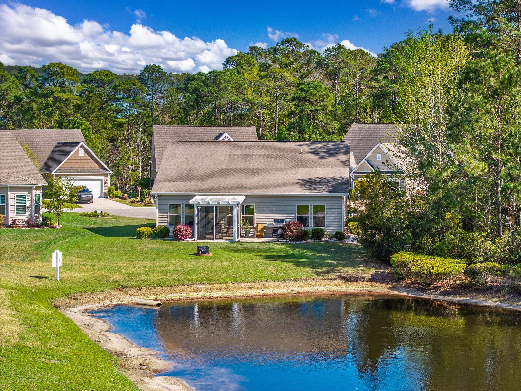 Beautiful single level 3-bedroom, 2-bath home located in the highly sought-after Brookberry section of The Farm in Carolina Forest. Situated on a desirable corner cul-de-sac lot, this home offers a peaceful water view and added privacy. Inside, the home features numerous upgrades, including granite countertops, a stylish backsplash that complements the main living space, and a well-designed open layout. The primary suite overlooks the water, creating a relaxing retreat. The home is also equipped with an updated touchscreen security system. Additional upgrades include a Puronics whole-home water filtration system, bronze-tinted windows, and a full irrigation system. This popular Lexington floor plan is a favorite among Brookberry homeowners and offers both functionality and comfort. Residents enjoy access to outstanding community amenities, including two pools, a clubhouse, fitness center, basketball court and a playground. Conveniently located near shopping, dining, and the beach, this home offers the perfect combination of location, lifestyle, and value.