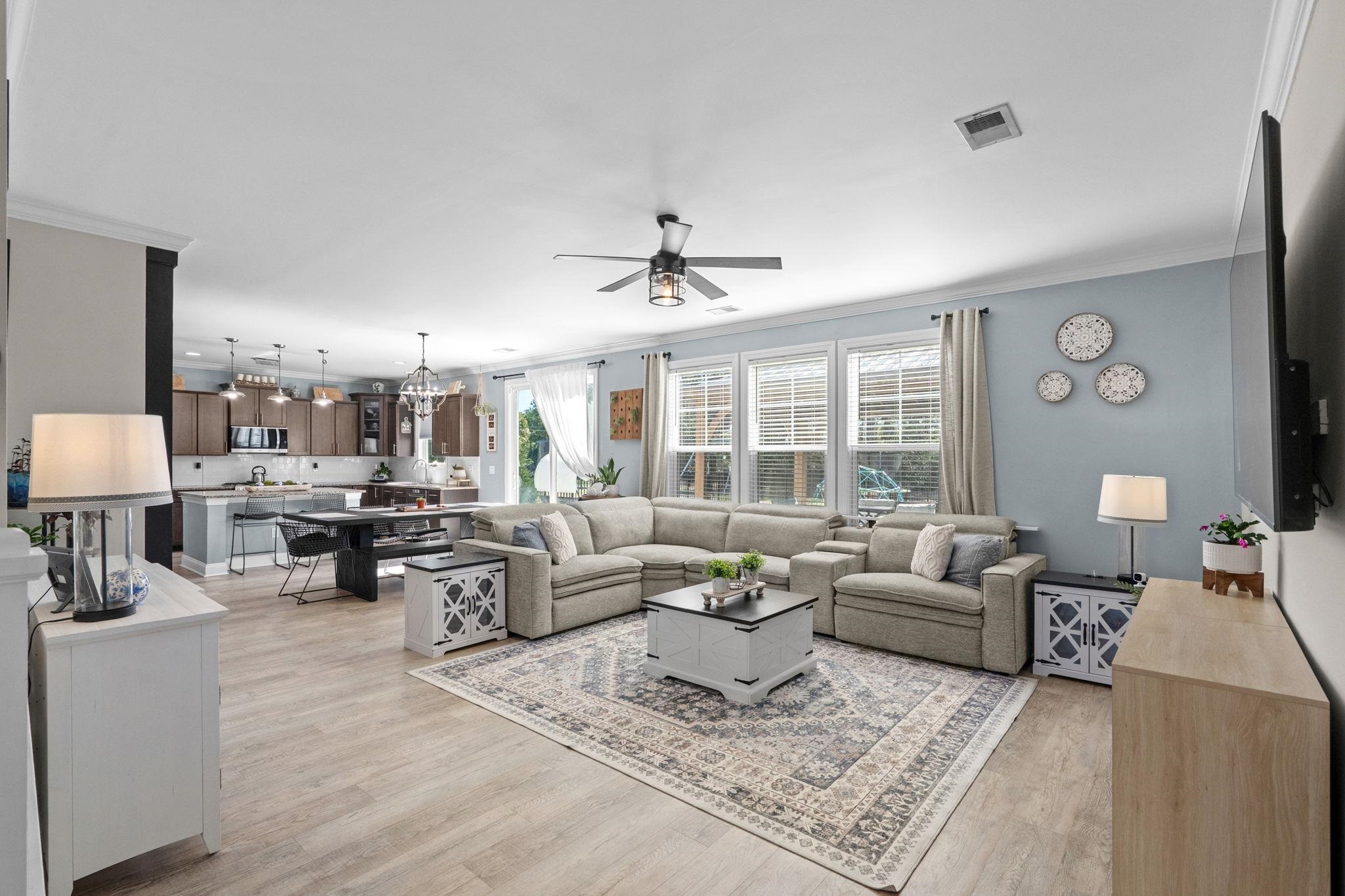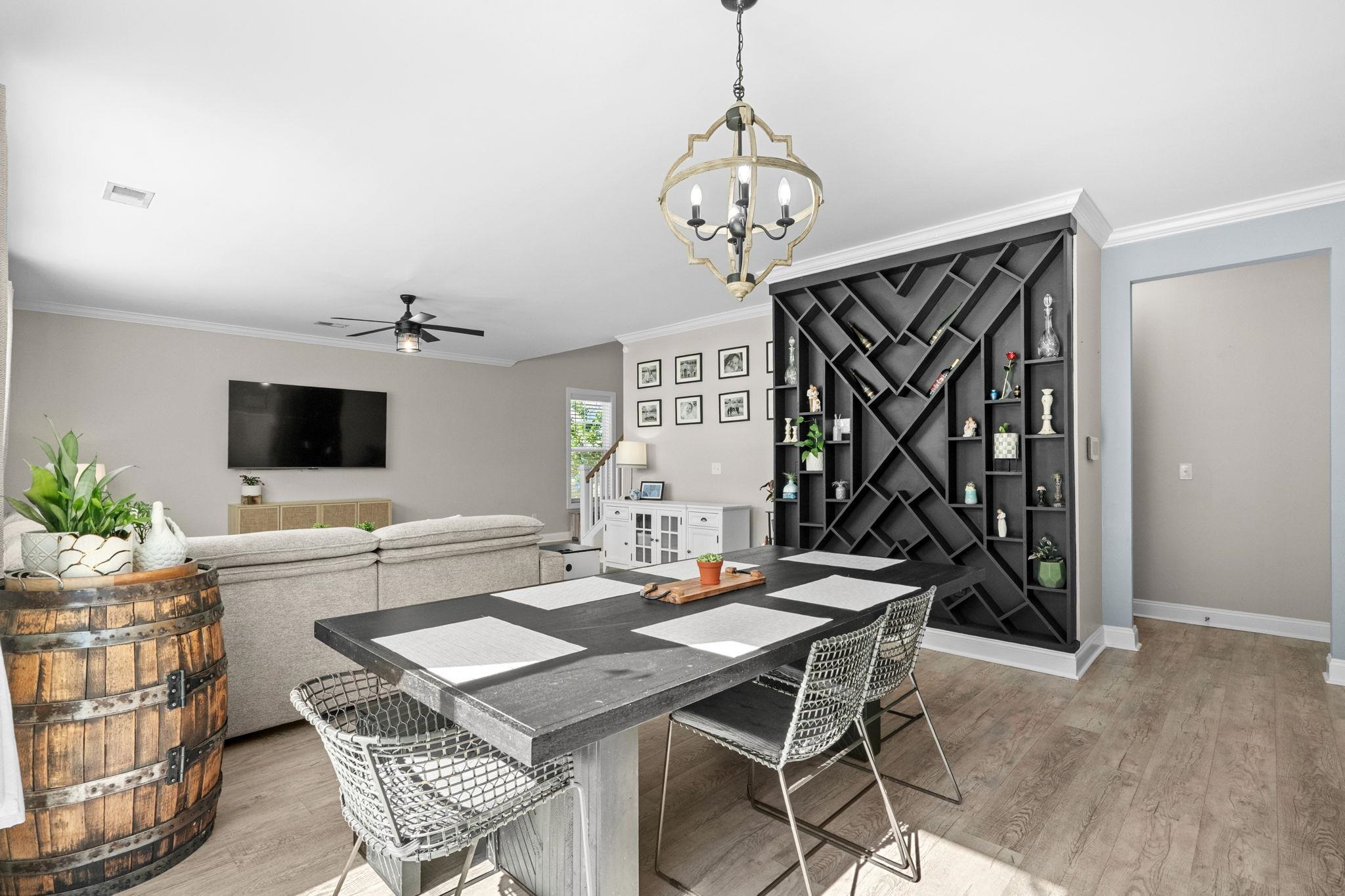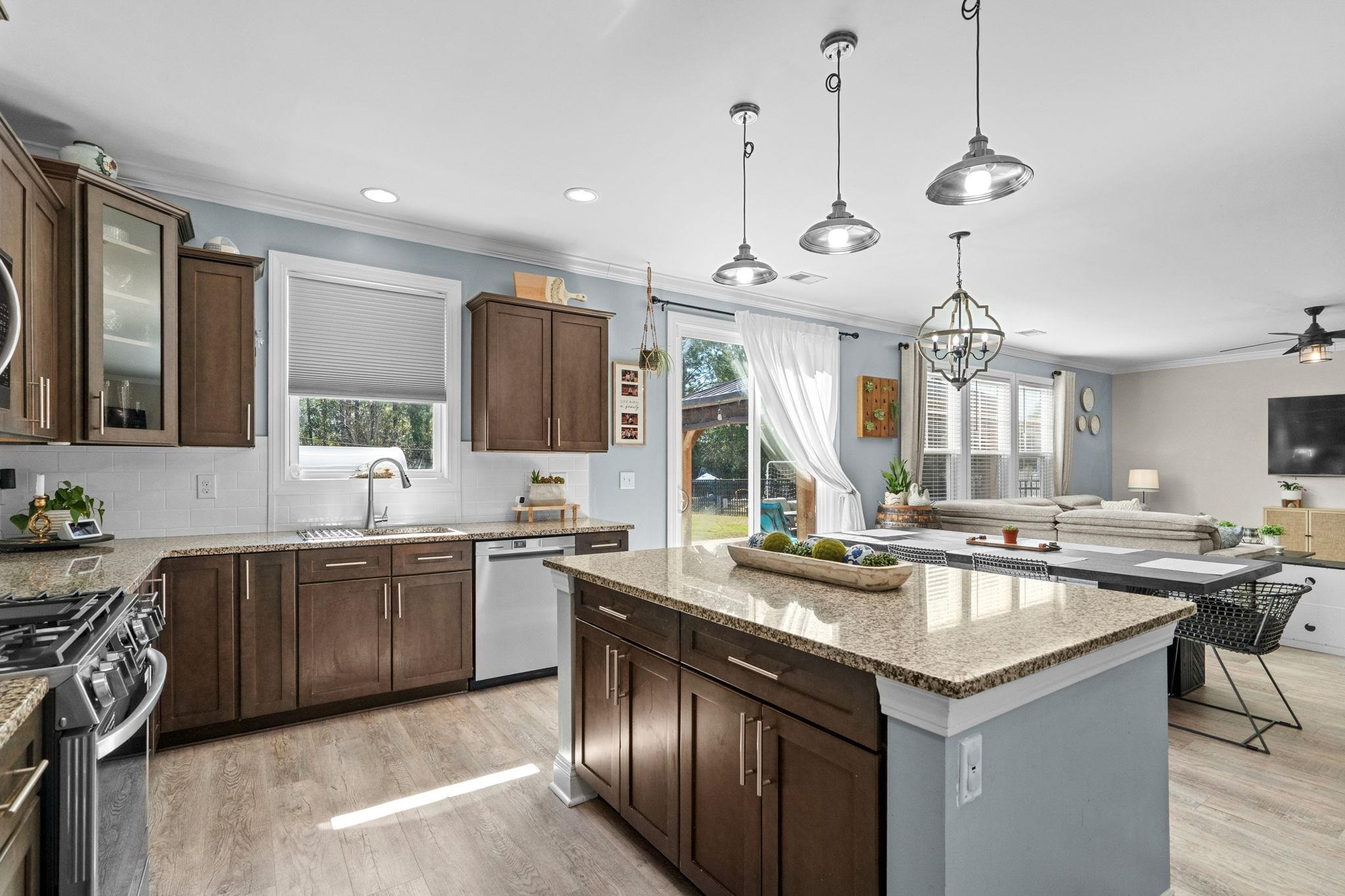 Located in The Farm at Carolina Forest, this 2017 built 5 bedroom, 3 full bath home offers 2,728 heated sq ft on a fenced lot situated on a cul-de-sac street, with interior and exterior upgrades throughout. The main level features LVP flooring, open concept living, updated lighting, and a kitchen with upgraded backsplash, newer appliances, and a custom wine wall with built-in shelving. A first floor bedroom and full bath provide functional flexibility for guests, home office, or multigenerational living. Upstairs includes an open loft with bedrooms and bathrooms connected off the central living space. The primary suite features a wood tray ceiling and an upgraded en suite bath with cultured marble finishes, glass shower enclosure, updated mirrors and lighting, and added electrical above the tub. Exterior improvements include an extended driveway, expanded rear patio, gazebo with blinds, privacy trees along the fence line, curbscape enhancements, backyard steps, and updated exterior lighting. The garage includes a professionally installed polyurea floor coating. Additional upgrades include a tankless water heater and a paid off solar irrigation system. Residents of The Farm at Carolina Forest have access to community amenities including a pool, clubhouse, and recreational areas.