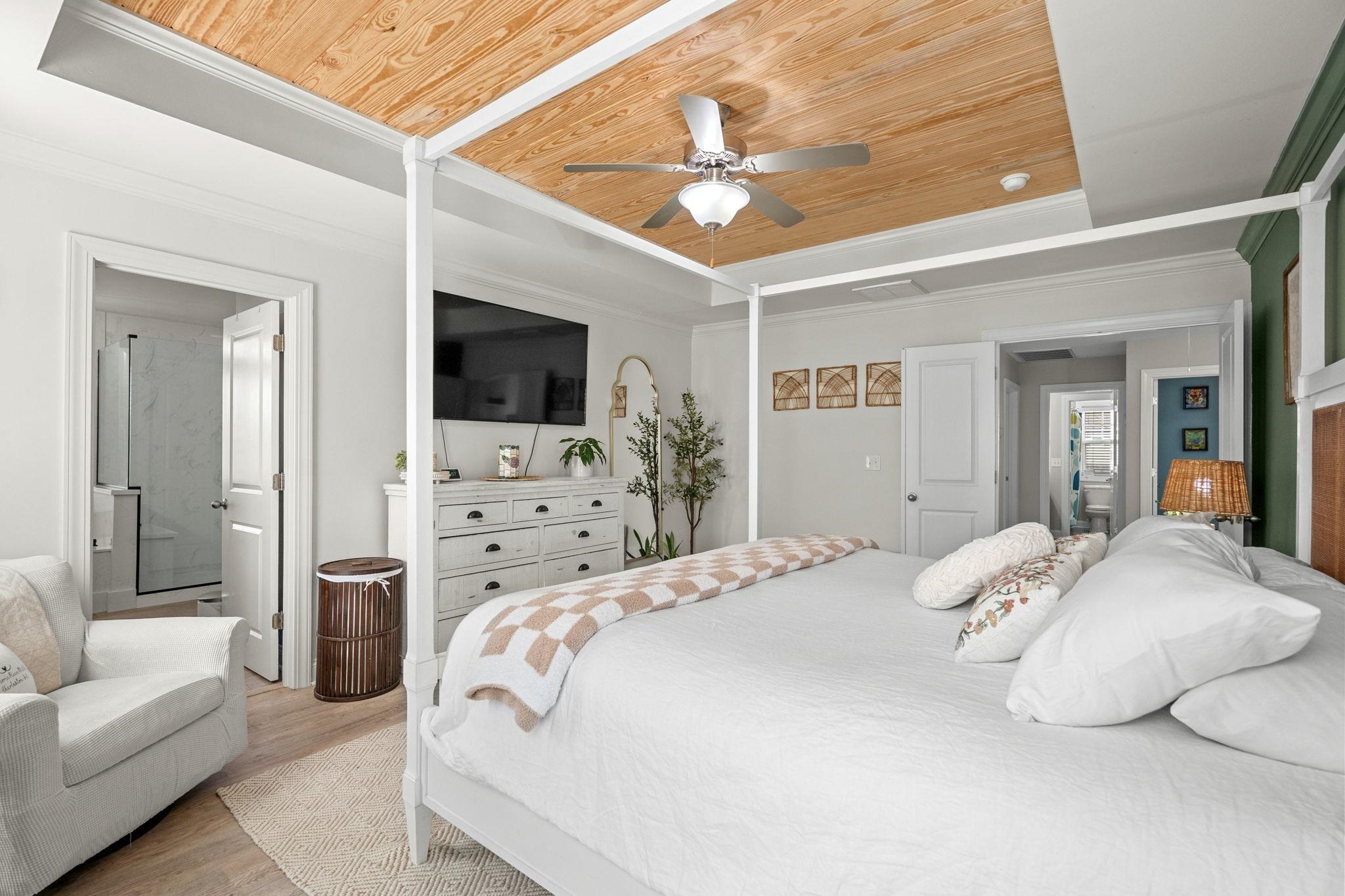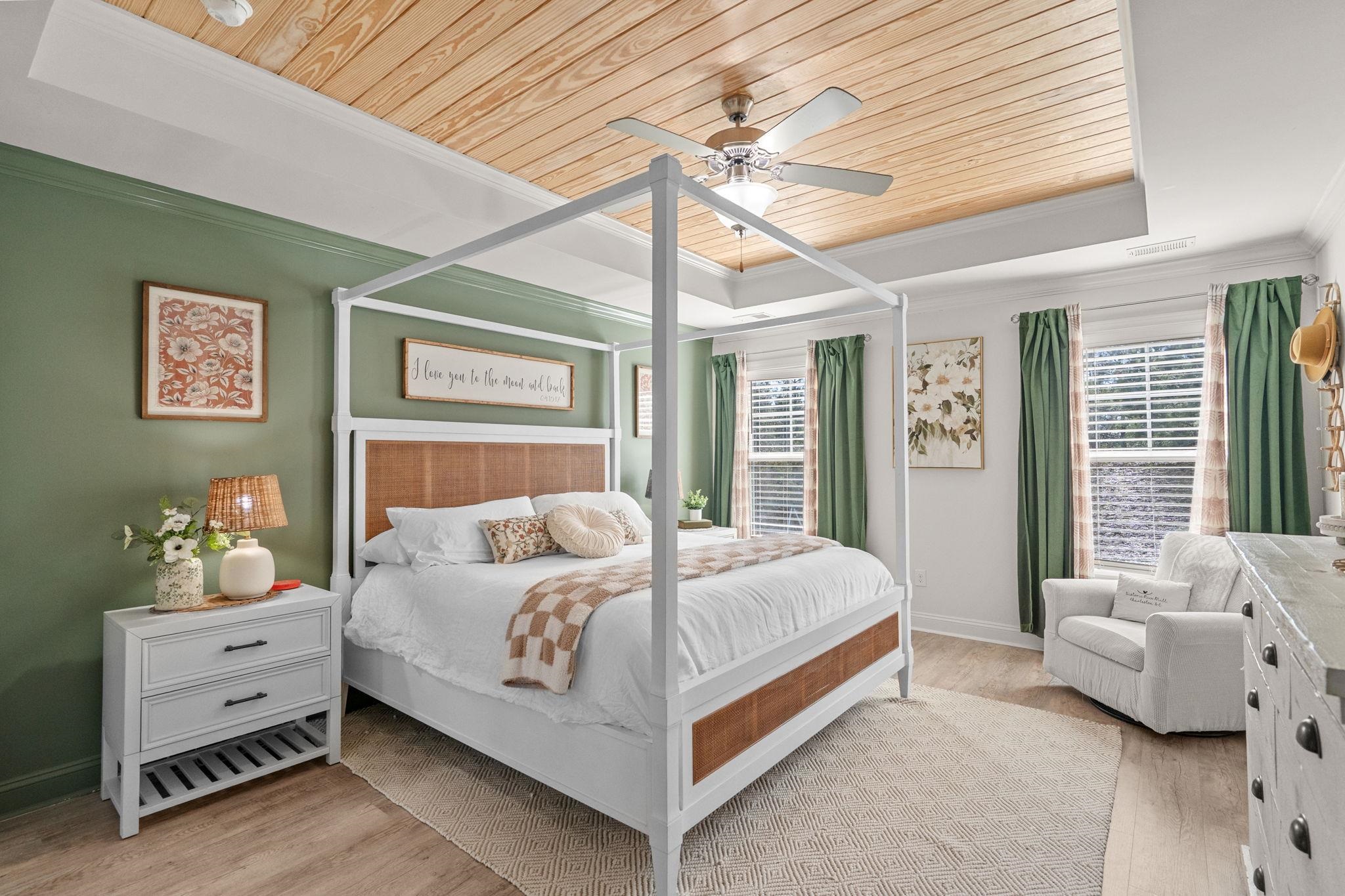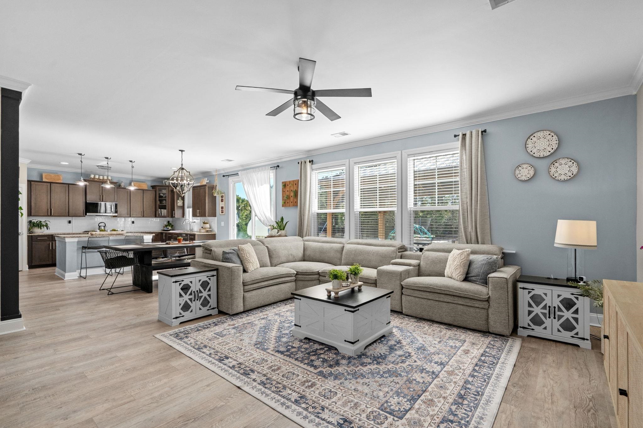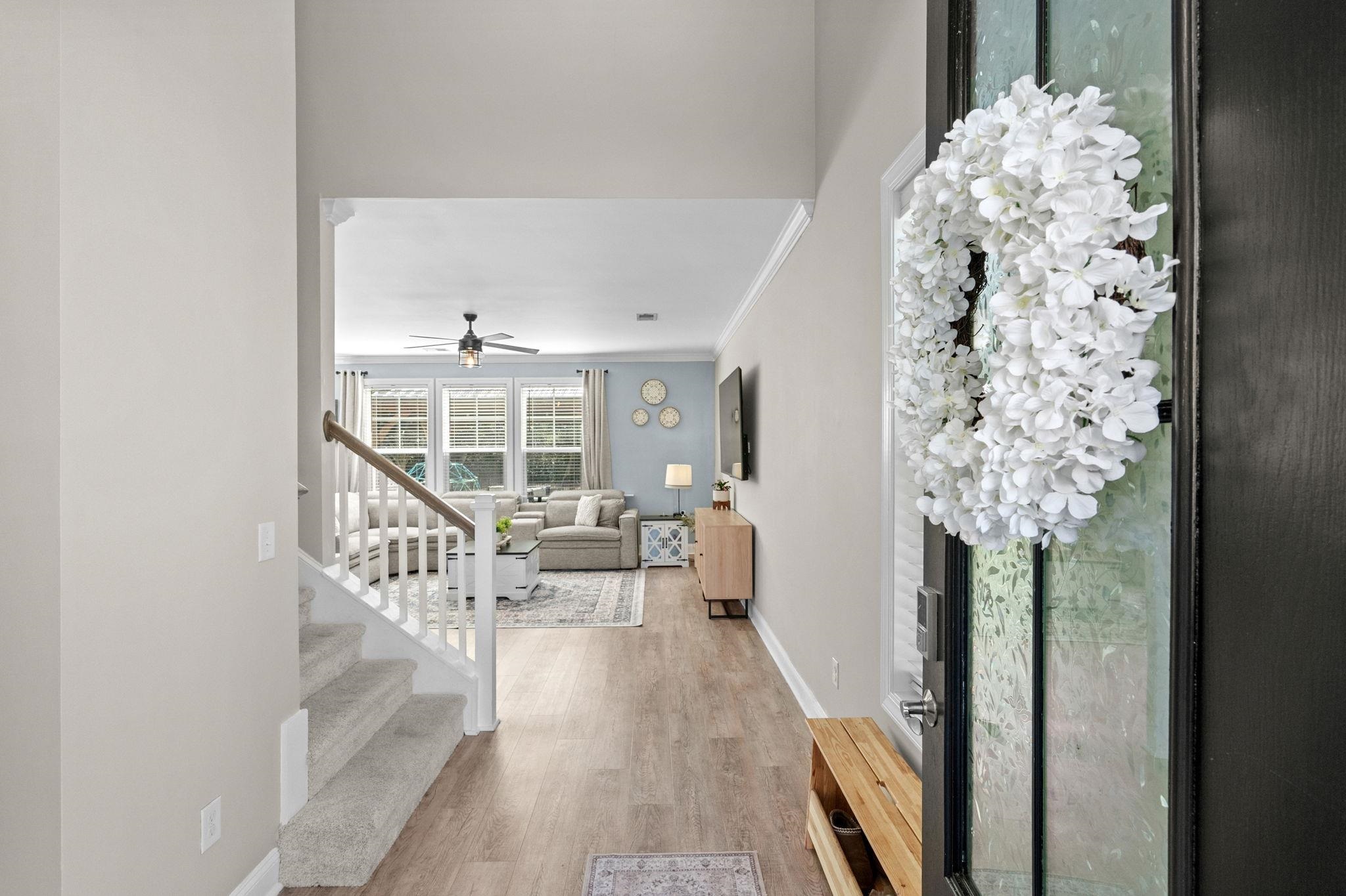 Located in The Farm at Carolina Forest, this 2017 built 5 bedroom, 3 full bath home offers 2,728 heated sq ft on a fenced lot situated on a cul-de-sac street, with interior and exterior upgrades throughout. The main level features LVP flooring, open concept living, updated lighting, and a kitchen with upgraded backsplash, newer appliances, and a custom wine wall with built-in shelving. A first floor bedroom and full bath provide functional flexibility for guests, home office, or multigenerational living. Upstairs includes an open loft with bedrooms and bathrooms connected off the central living space. The primary suite features a wood tray ceiling and an upgraded en suite bath with cultured marble finishes, glass shower enclosure, updated mirrors and lighting, and added electrical above the tub. Exterior improvements include an extended driveway, expanded rear patio, gazebo with blinds, privacy trees along the fence line, curbscape enhancements, backyard steps, and updated exterior lighting. The garage includes a professionally installed polyurea floor coating. Additional upgrades include a tankless water heater and a paid off solar irrigation system. Residents of The Farm at Carolina Forest have access to community amenities including a pool, clubhouse, and recreational areas.