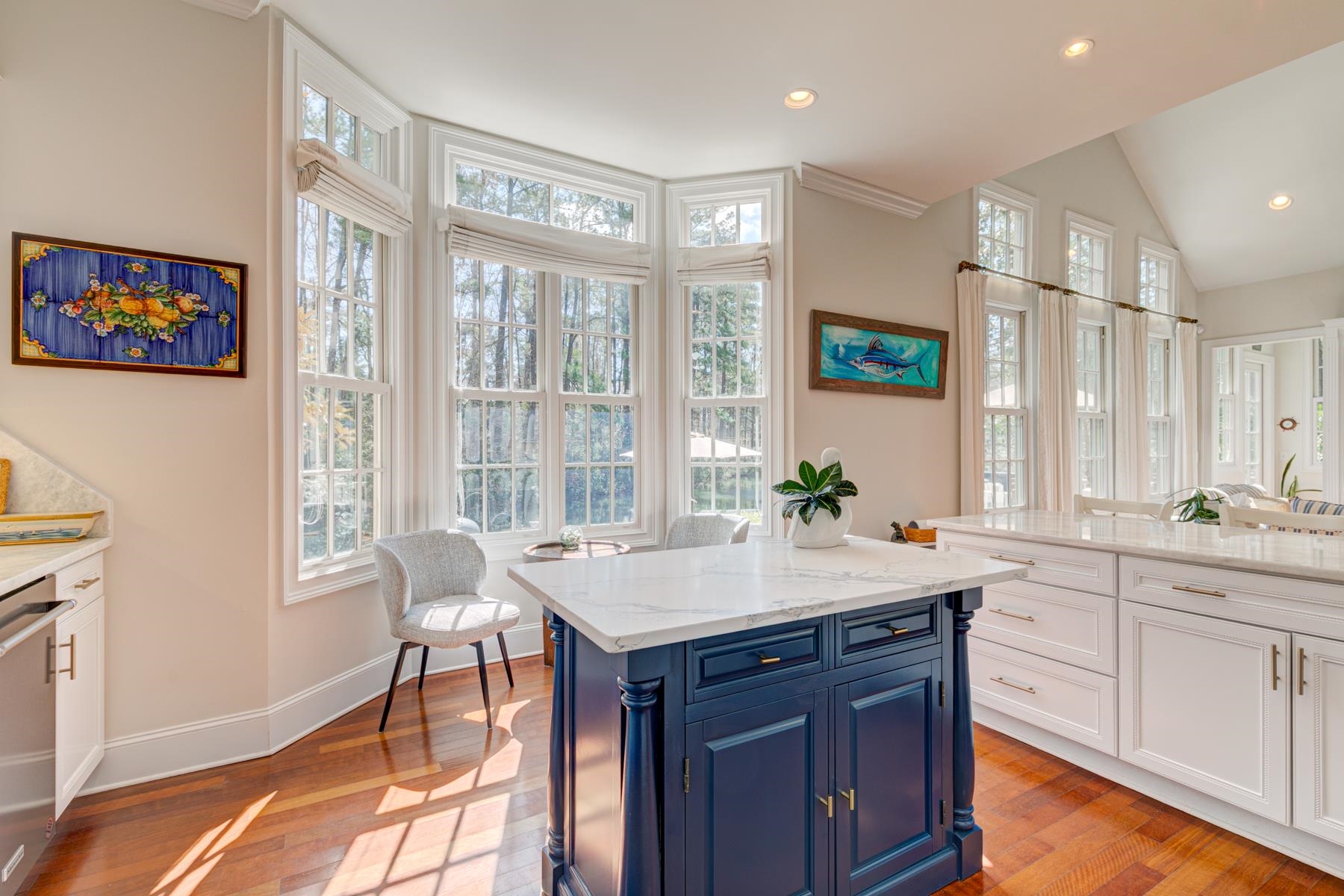 Welcome to Litchfield Plantation, a gated Pawleys Island community renowned for the breathtaking Avenue of Live Oaks entrance and iconic c. 1740 Litchfield Plantation House. Tucked away within this neighborhood is the desirable Tucker Woods luxury townhome community. This spacious and thoughtfully designed residence offers a unique opportunity for the ease of maintenance-free townhome living while enjoying exceptional privacy overlooking a peaceful pond and surrounded by the natural beauty of the Lowcountry, As you step inside, you are immediately welcomed by a bright and airy interior featuring 10-foot ceilings, 8-foot doors, and hurricane-impact transom-topped windows adorned with custom window treatments, allowing natural light to pour into the home. Elegant molding throughout the main living areas enhances the sophisticated yet inviting atmosphere. The gracious living and dining areas flow seamlessly into the gourmet kitchen, where quartz and marble countertops and a full-height marble backsplash complement custom cabinetry with brass finishes and stainless steel appliances. In addition, a charming bay window breakfast nook overlooks the private backyard and tranquil water views, welcoming the morning sun and creating the perfect setting to start your day. From the kitchen, transition effortlessly into the warm and welcoming family room with vaulted ceilings, a fireplace, and custom built-in bookcases and media cabinetry. Beyond this space, the sunroom offers access to the back porch, spacious brick patio, and grilling area, making indoor-outdoor entertaining a breeze. Conveniently located on the main level, the expansive owner’s suite provides a private retreat complete with a large walk-in closet and a luxurious marble bath featuring a jetted garden tub, separate glass-enclosed tiled shower, dual vanity, linen closet, and an additional washer and dryer hookup. Upstairs, 9-foot ceilings enhance three additional bedrooms, each with its own private full bath and generous closet space, two of which are walk-ins. Notably, one bedroom and the loft open through French doors to a screened private porch overlooking the peaceful pond, offering a quiet space to relax and unwind. A full laundry and utility room add everyday practicality, while the oversized fourth bedroom presents flexibility as a recreation or gathering room if desired. The oversized, detached two-car garage is just steps from the front porch, while the inviting brick patio is ready for entertaining and there is a propane hook-up for your gas grill. As a resident of Litchfield Plantation, you will enjoy access to the Plantation House, pool and pool house, all overlooking expansive rice fields, an amazing setting to enjoy gorgeous sunsets at the end of the day. Take advantage of the exclusive access to the private oceanfront beach house which affords you private parking, bathrooms, showers, indoor and outdoor gathering areas and boardwalk to the beach. Altogether, this exceptional waterfront townhome combines historic charm, coastal elegance, and modern luxury in one of Pawleys Island’s most treasured gated communities