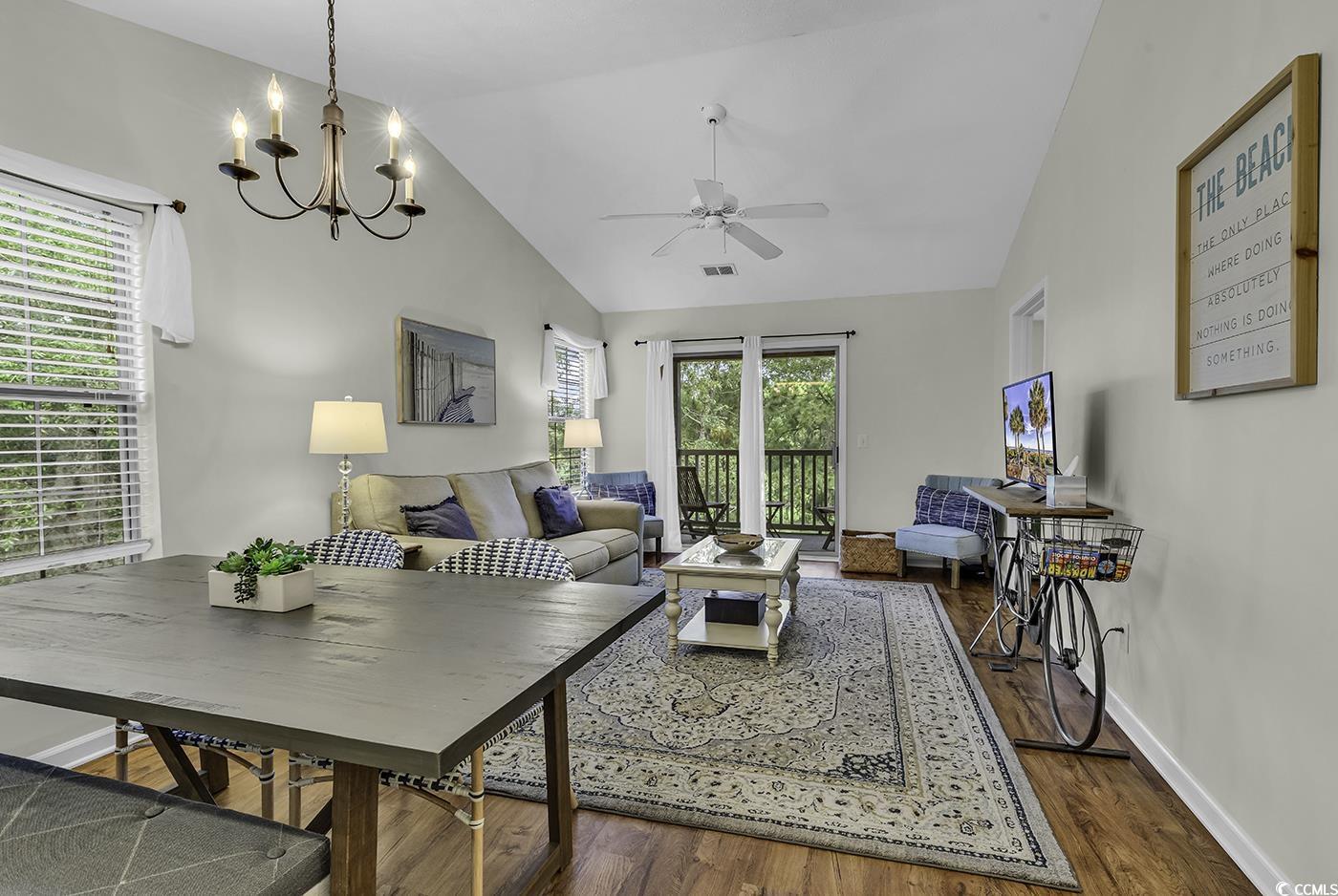 Fully Furnished 2 Bed / 2 Bath Condo overlooking the Golf Course in True Blue Golf Community. Welcome to this beautifully updated top-floor end unit condo in the sought-after True Blue Golf Community in Pawleys Island. Overlooking the scenic golf course, this fully furnished 2-bedroom, 2-bathroom condo offers modern comfort in a prime location. Inside, you'll find vaulted ceilings, abundant natural light, and stylish waterproof plank flooring throughout. Located in one of the few six-unit buildings in True Blue, this condo shares the top floor with just one other unit, offering extra privacy and a quieter living experience. Whether you're looking for a second home or a smart investment, this property offers excellent potential. Residents of True Blue Golf Resort enjoy access to amenities that include tennis courts, a clubhouse, multiple pools and hot tubs. The HOA fees conveniently include cable TV, internet, water, sewage, and trash removal. Conveniently located minutes from pristine beaches, top-rated golf courses, shopping, and fine dining. Schedule your showing today for a retreat on Pawley's Island.