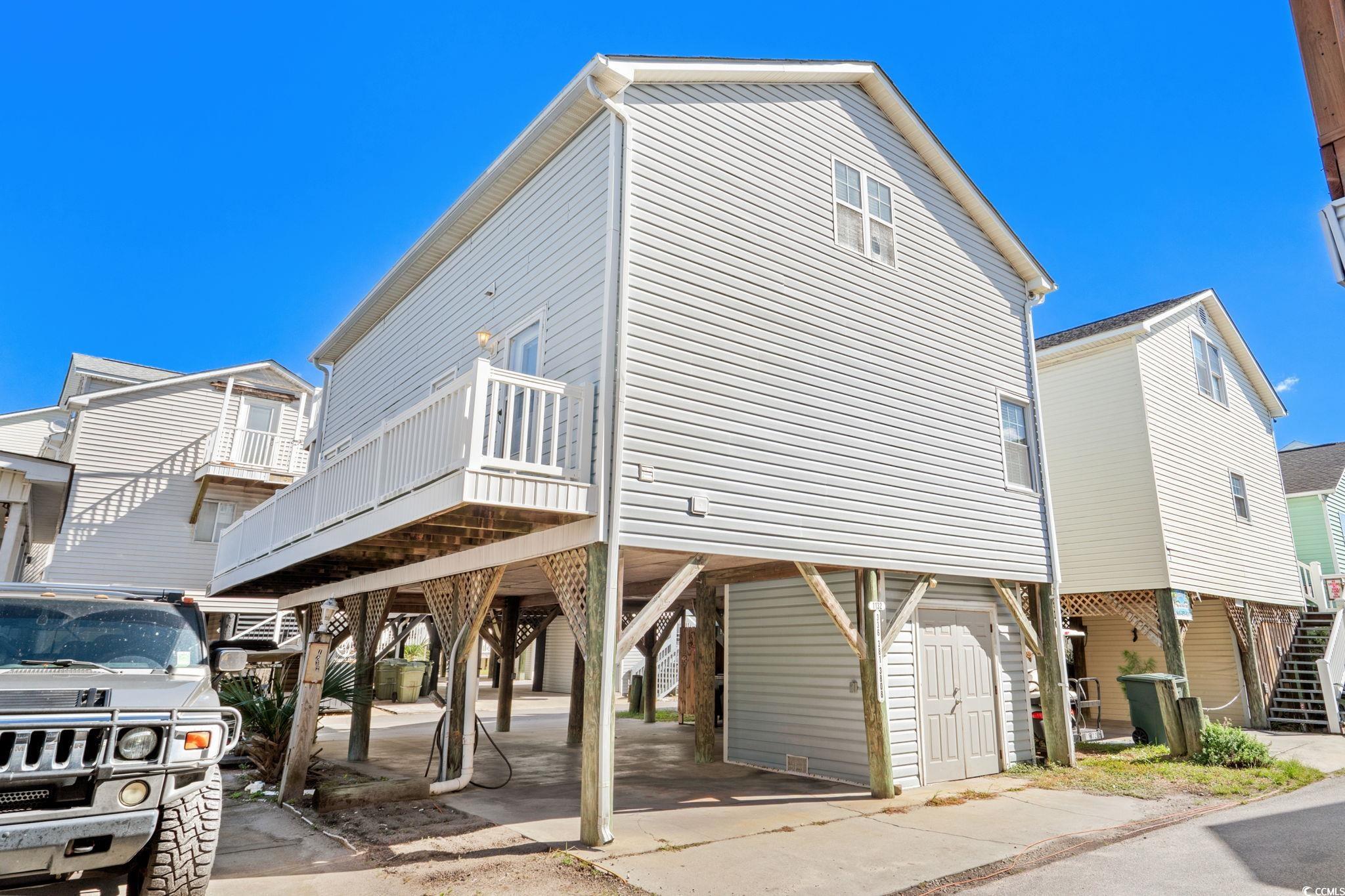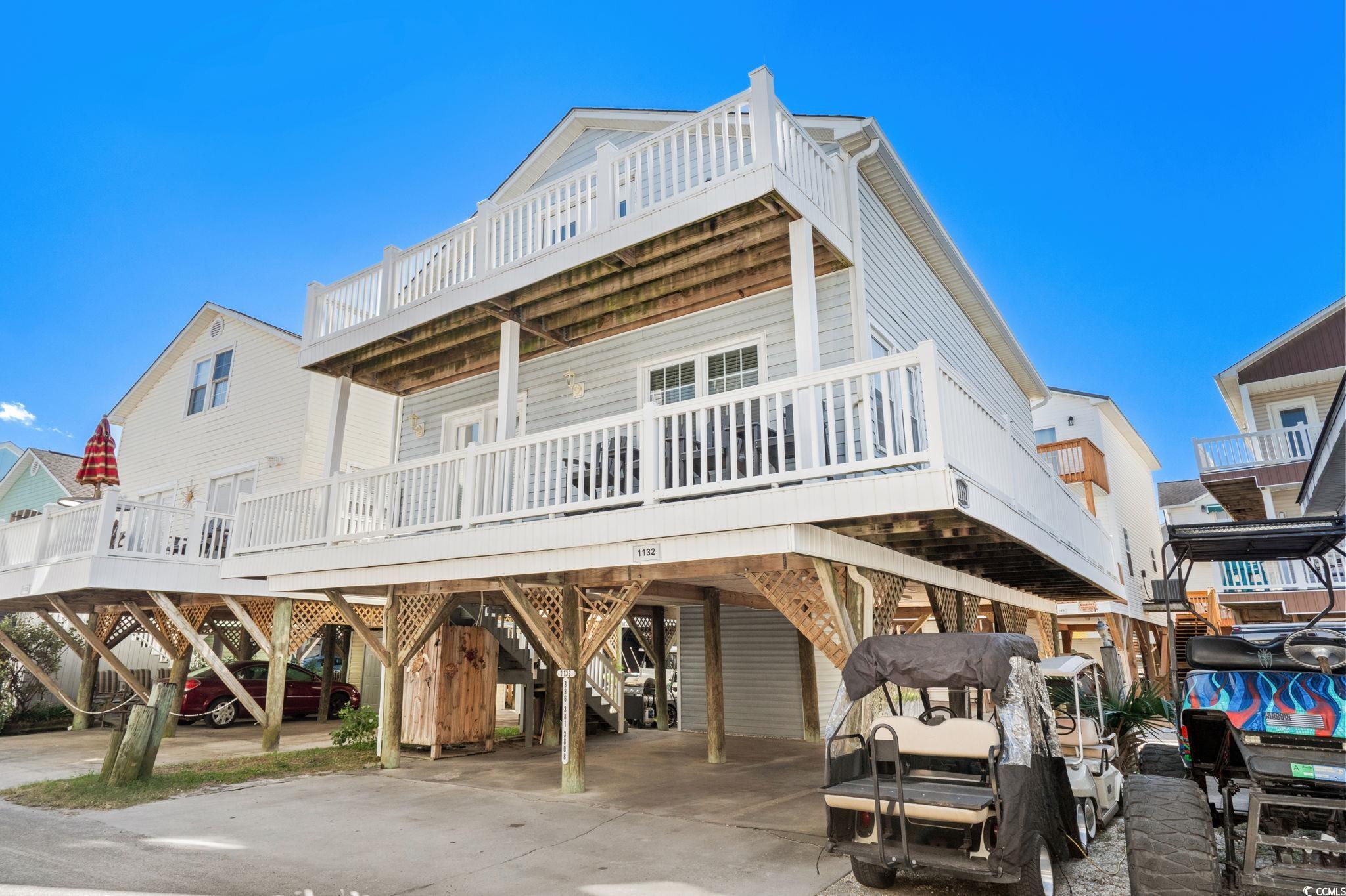 Welcome to 1132, this 3-bedroom 2.5 bath two-story raised beach house is being sold fully furnished! JUST 5 HOUSES FROM THE OCEAN!! The main floor has a large living room, with open concept dining area and kitchen with breakfast bar. Kitchen has new cabinets, stainless steel appliances, and granite counters, entire homes has LVP flooring for easy maintenance. Primary bedroom is located on the first floor with attached full bath with new vanity, toilet, and tub/shower combo. Convenient 1/2 bath is located on the first floor along with washer and dryer in a closet off the kitchen! Upstairs has 2 bedrooms, both have full over twin bunk and also a queen bed, and full bath #2 with new vanity, toilet, and walk-in shower. Great ocean views from both decks, plenty of parking under the house, and outdoor shower.