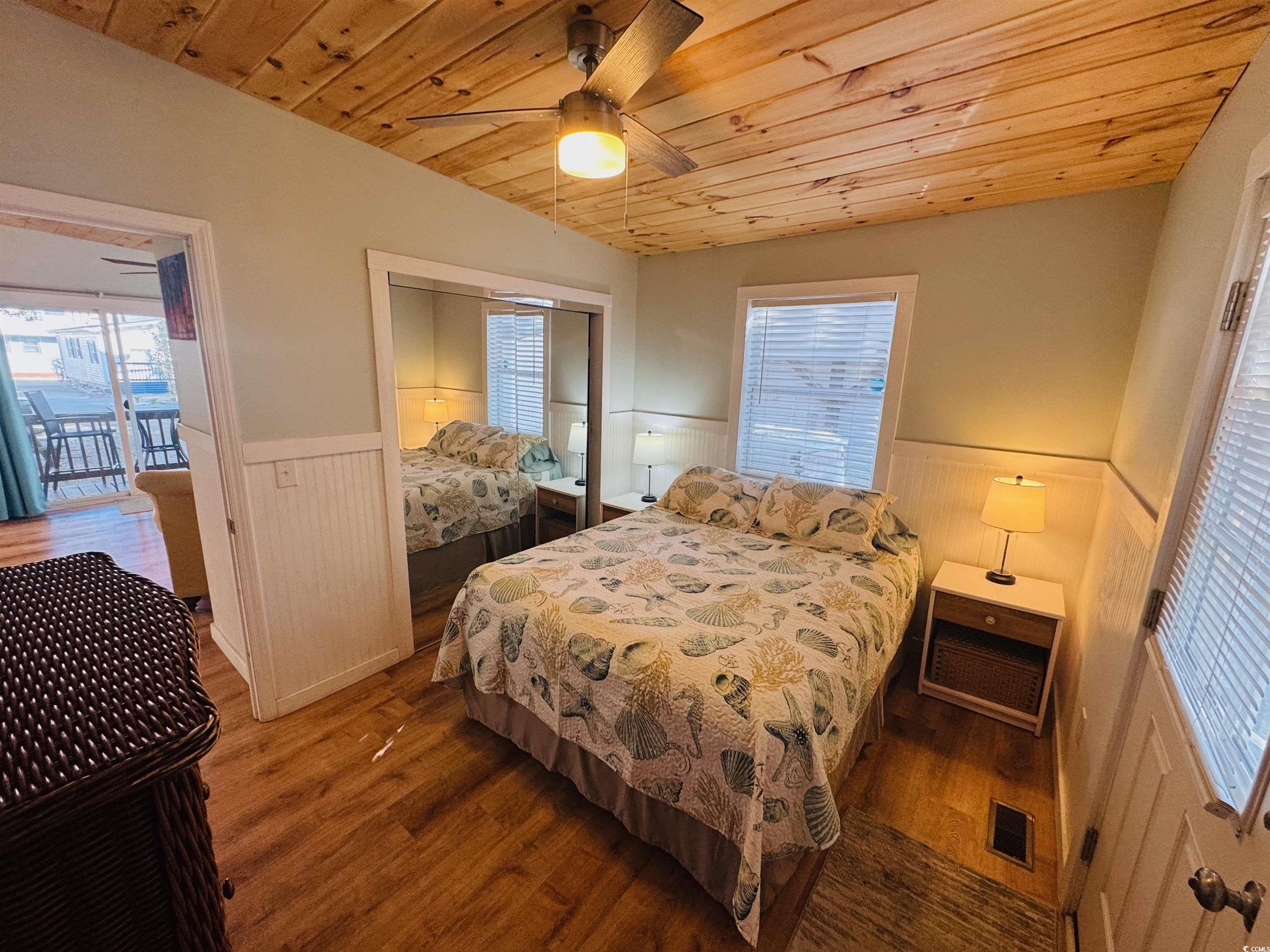 SEARCHING FOR AN AFFORDABLE BEACH HOUSE JUST STEPS TO THE BEACH' This adorable beach bungalow checks all the boxes for relaxing beach getaways or for the perfect investment property with excellent rental history. This seller motivated beach pad is well updated with LVP flooring, stunning wood plank ceilings, newly upgraded kitchen and bath, and well thought out coastal decor and furnishings. You will absolutely fall in love with the gorgeous Live Oak that is not only aesthetically pleasing but provides wonderful shade for lounging and grilling in the Summer while enjoying the sound of the waves crashing on the beach. Sold fully furnished... golf cart negotiable. Excellent investment with renters booked through Summer! Must honor 2026 rentals. Now Showing! Measurements are not guaranteed and are the responsibility of buyers and/or their agent. There is no HOA in Ocean Lakes, each home is located on leased land with yearly lease, which is payed in two semiannual payments due in January and July. Amenities abound in Ocean Lakes' gated community and include almost a mile of white sand beach, 24 hour security, 7 fishing lakes, free trash pick-up, free cable TV, indoor/outdoor swimming pools, large water park/slides, lazy river, kid's splash zone, new dog park, new beachside coffee house and ice cream bar, playgrounds, full size basketball courts, miniature golf, fire pit, corn hole, shuffle board, horseshoes, ping-pong, Sandy's Down-under skatepark, recreation building, arcade, general store, golf cart rentals, Sandys Meet & Eat restaurant and more!