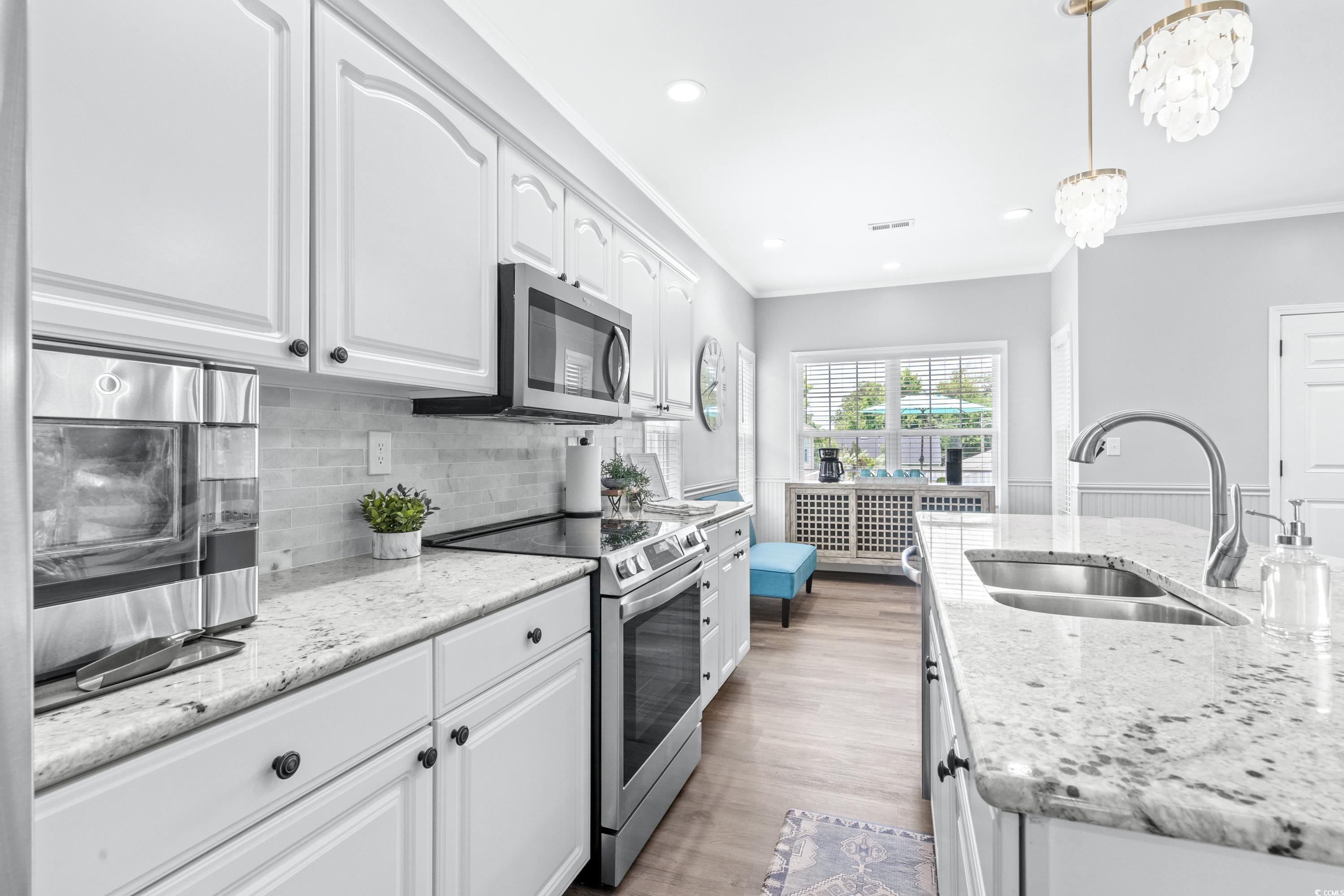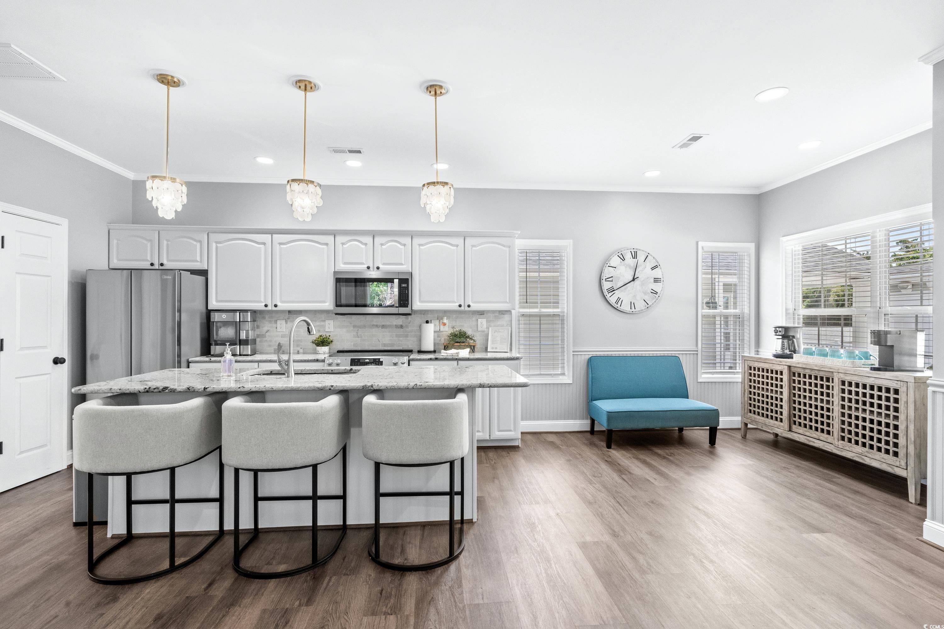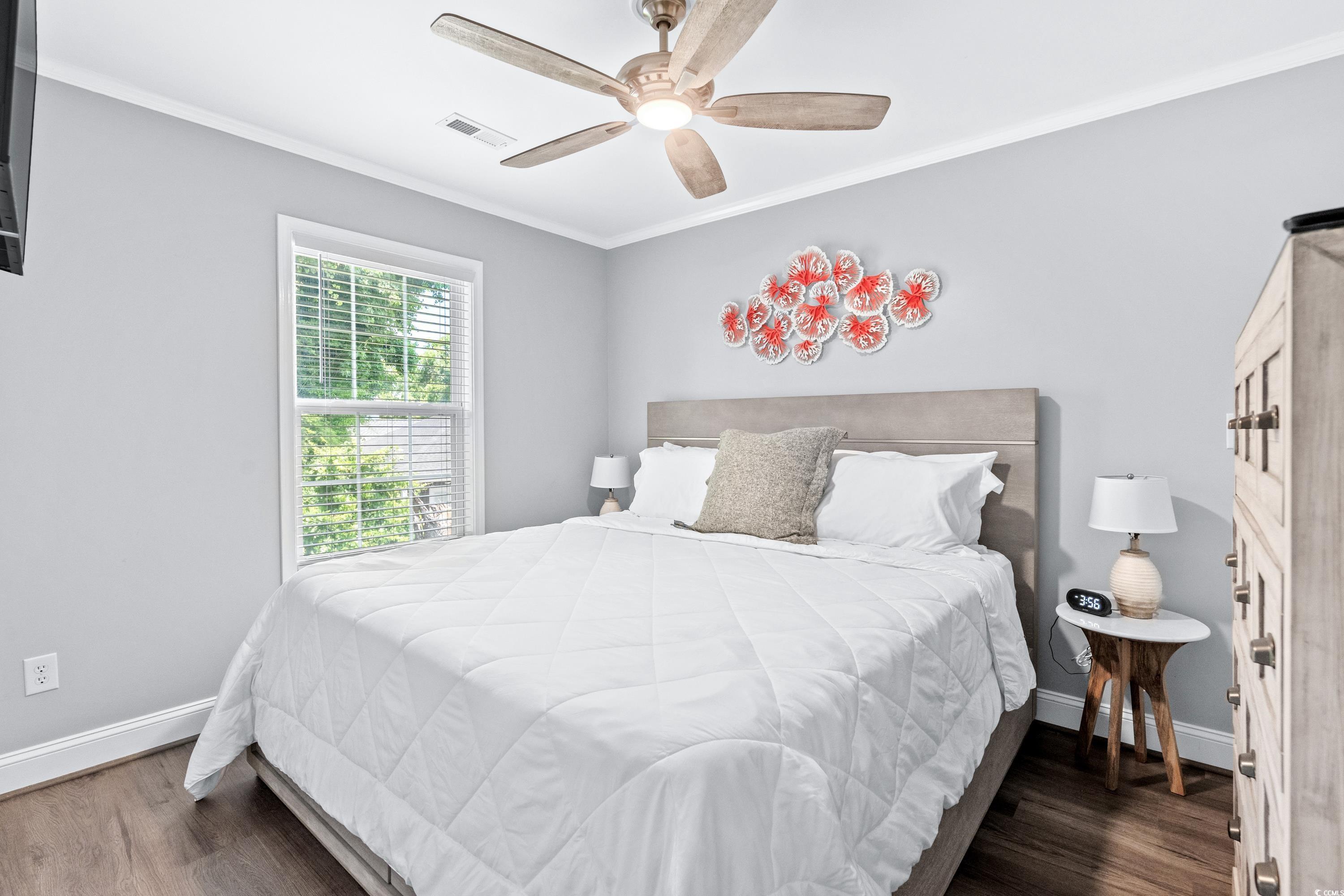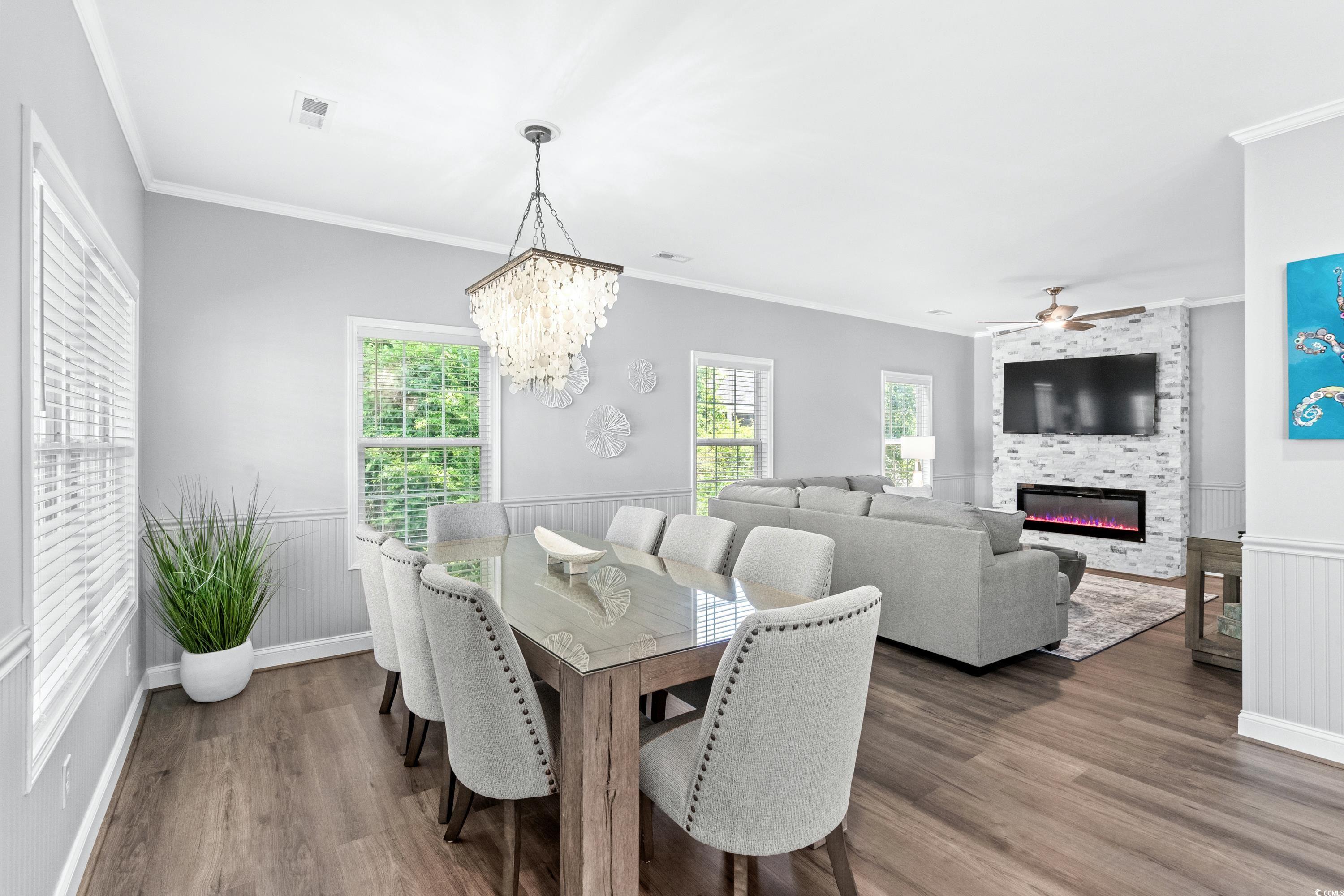 1556 is a beautiful newly remodeled 4BED/ 2.5BATH corner lot home with over-sized deck, & extra parking on a dead-end street. 2 King Beds, 1 Queen Bed, 1 Bunk Room with 3 Twins & 1 Full, & SLEEPS 11. Stepping inside you have an open concept dining, living room, and kitchen, LVP flooring, accent wall with fireplace, kitchen with granite counters, island, tile backsplash, stainless steel appliances and full-size washer/dryer. All bedrooms along with 2 full baths are located upstairs, leaving main lever for entertaining with 1/2 bath. Located close to the ocean and all amazing amenities that Ocean Lakes has to offer.