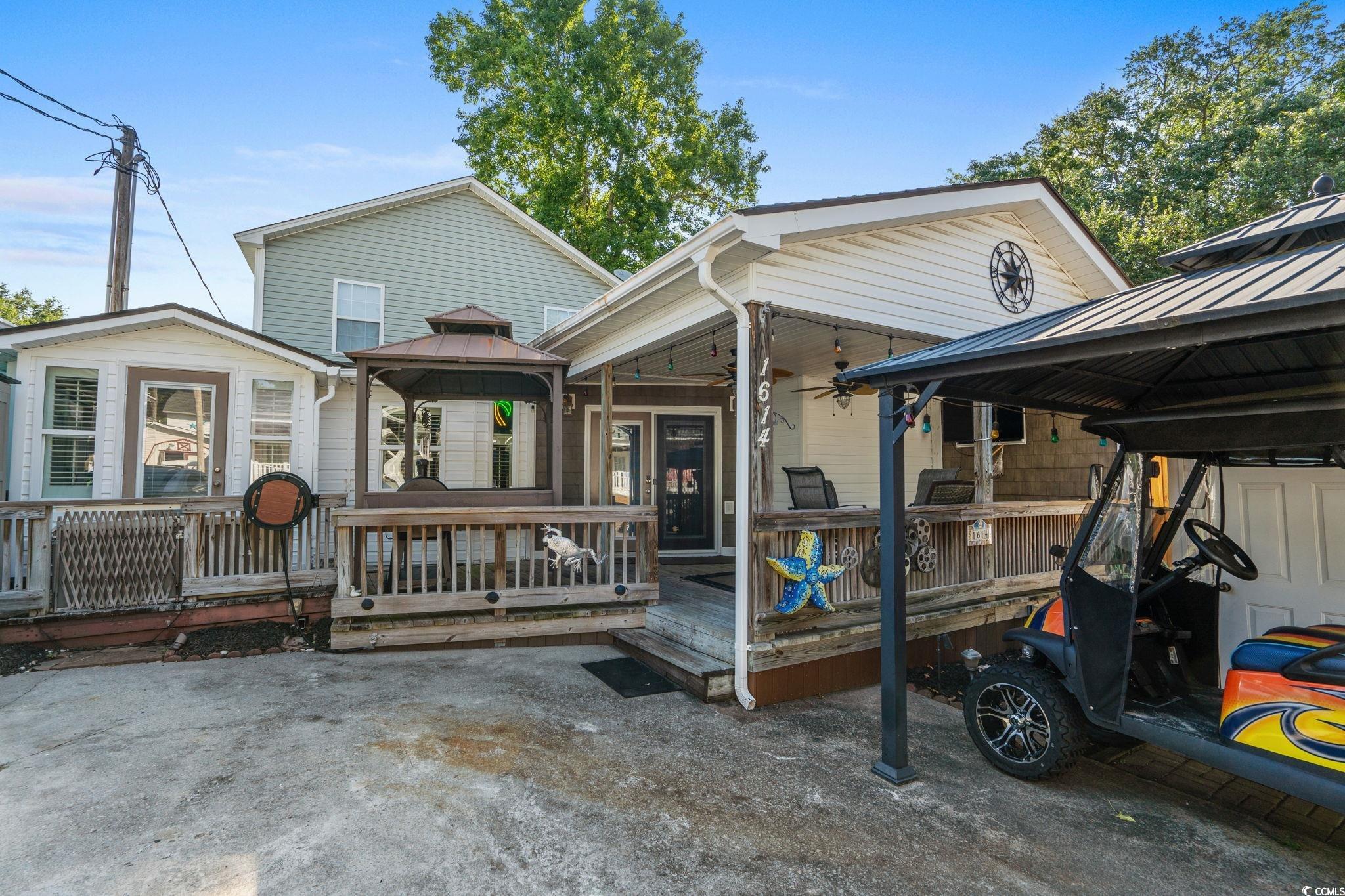 Welcome to 1614 Snapper Lane in Ocean Lakes. This 2 bedroom 2 bath home is being sold fully furnished (golf cart NOT included). Great outdoor entertaining space with the 2 gazebos, and covered large porch, 2 ceiling fans, fire pit, TV, and storage building. Going inside you have a large living room, to the left is bedroom #1 and full bath #1 with tub/shower condo. To the right is the kitchen with stainless steel appliances, breakfast bar, updated cabinets, full bath #2 with walk-in shower, washer/dryer, and bedroom #2 with bunkbeds. Home is not used as a rental, however Ocean Lakes is s short term rental community so new owner can use it as a short-term rental, primary home, or 2nd home.