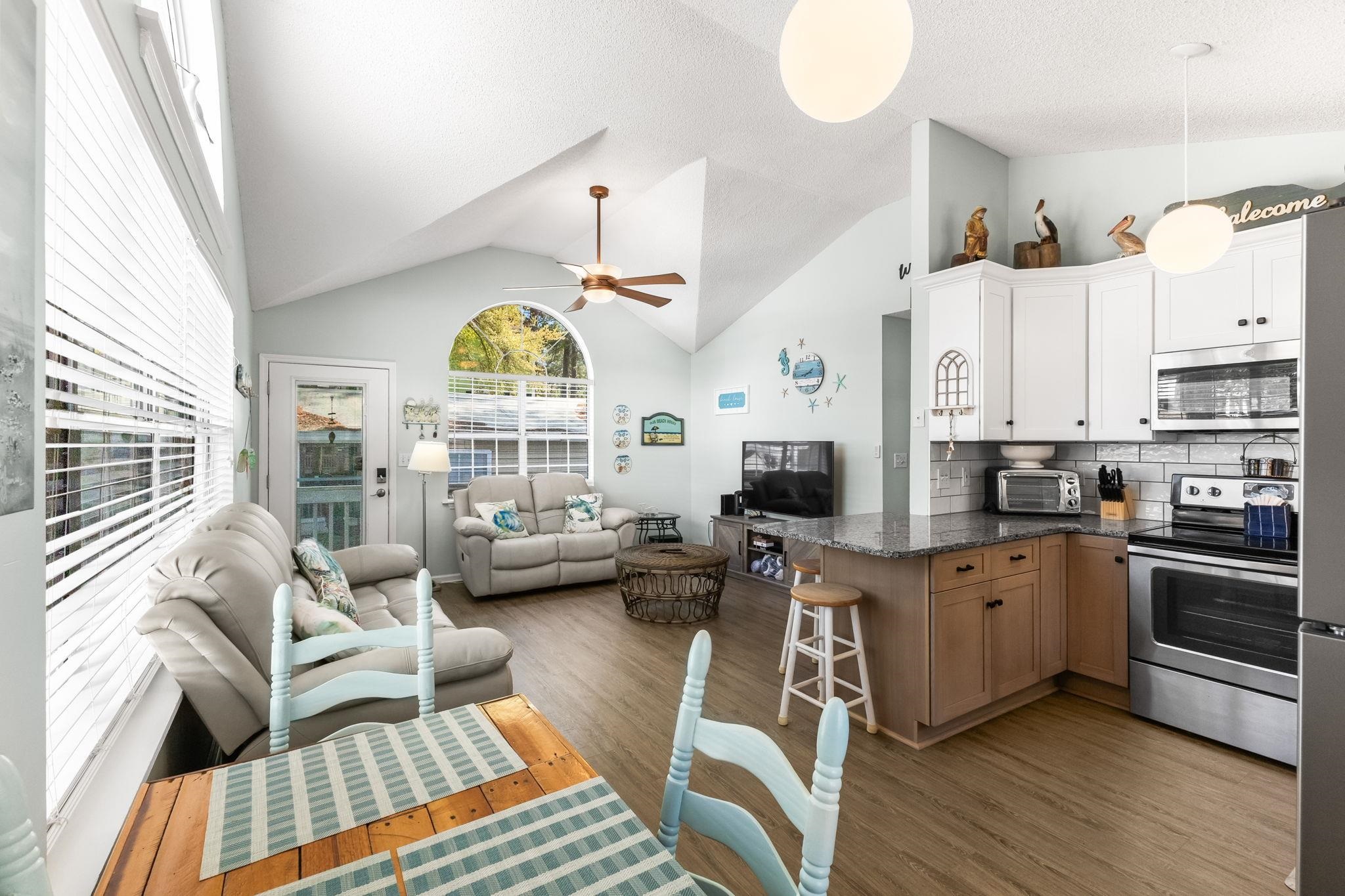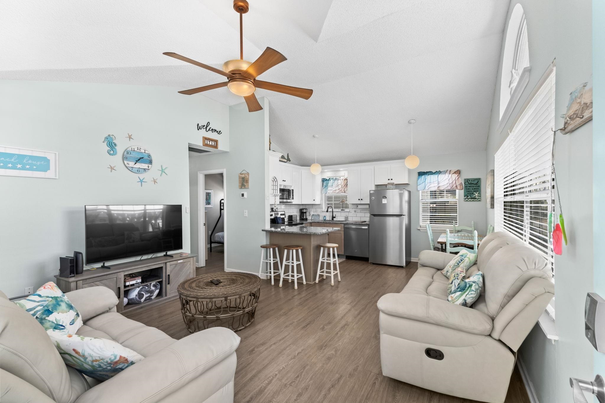 Welcome to 1713 a Stick build house located on Mermaid Dr. in Ocean Lakes, 3 bedrooms and 2 baths being sold fully furnished. Vaulted ceilings in the living room, dining area and kitchen, tons of natural light, LVP flooring, and beautiful new kitchen with granite countertops, tile backsplash, and stainless steel appliances. Down the hall is bedroom #1 with bunk beds, across the hall is full bath #1 with tub/shower combo, full-size washer/dryer. Located at the end of the hall is bedroom #2 on the right and the primary bedroom on the left with attached full bath (walk-in shower). Primary bedroom has a private door leading to the East facing deck. Roof 2019, HVAC Sept 2021. Golf cart not included but negotiable.