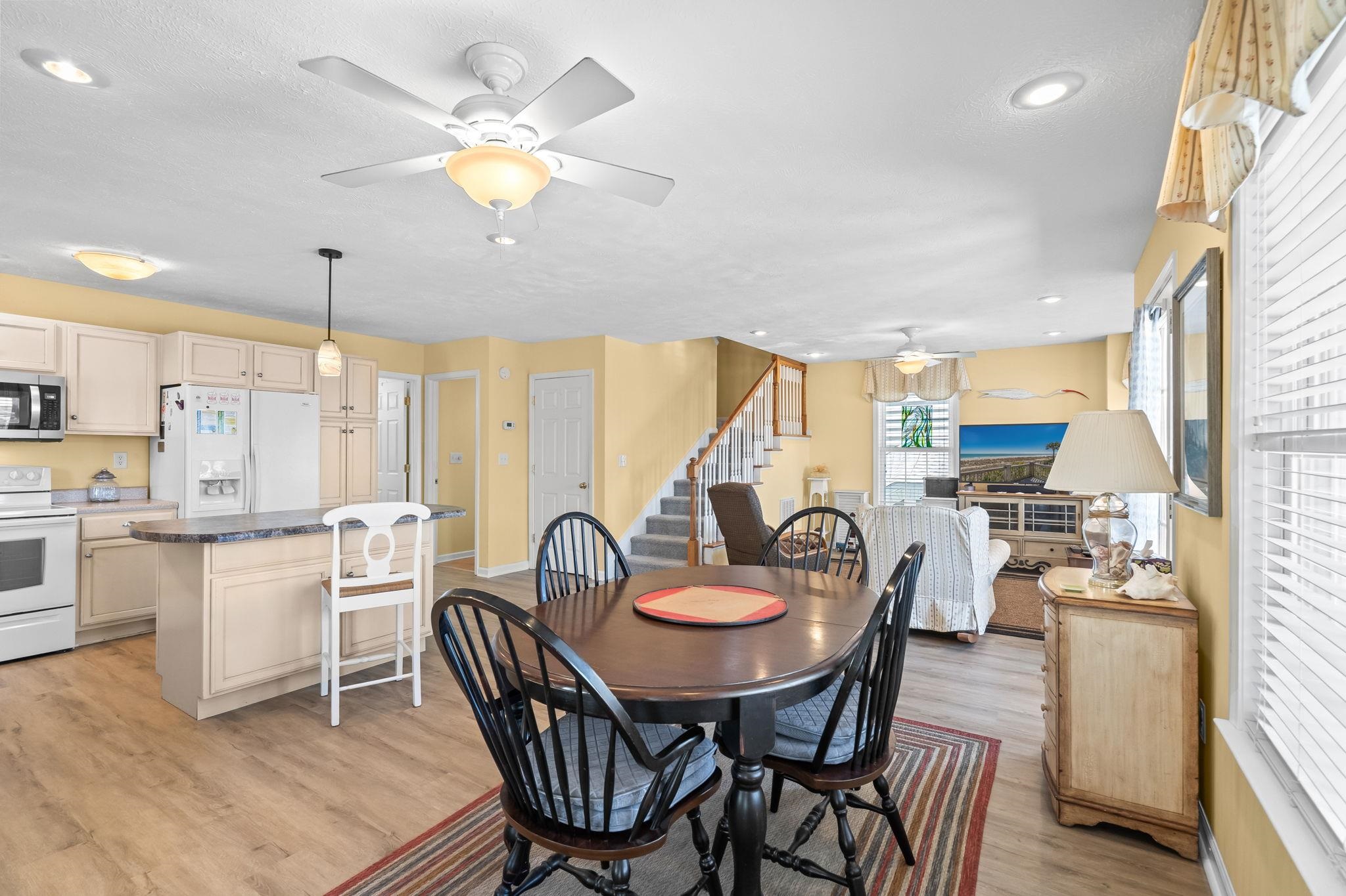 JUST LISTED! WELL BUILT 4 BED/3 BATH RAISED BEACH HOUSE IN THE HIGHLY SOUGHT 5,000 SECTION OF OCEAN LAKES! Never rented, this home has been the primary residence of the owners since it was built in 2004 and they spared no expense in it's construction. Upgraded features include an open and spacious layout, hurricane strength windows, two large decks with covered stairs, lots of cabinets and closets for storage, recessed lighting, tall cathedral ceiling in large primary bedroom with a private top deck that has great views and a relaxing ocean breeze. New upgrades include new LVP flooring on main level, new carpet on stairs and top level, new plumbing in bathrooms and kitchen sink, new toilet, and a new HVAC on main level. Home is being sold fully furnished including, a refrigerator and a freezer in the cooled and heated ground level storage building. NO RENTALS TO HONOR! Now Showing! Measurements are not guaranteed and are the responsibility of buyers and/or their agent. There is no HOA in Ocean Lakes, each home is located on leased land with yearly lease, which is payed in two semiannual payments due in January and July. Amenities abound in Ocean Lakes' gated community and include almost a mile of white sand beach, 24 hour security, weekly community activities, 7 fishing lakes, free trash pick-up, free cable TV, indoor/outdoor swimming pools, large water park/slides, lazy river, kid's splash zone, new dog park, new beachside coffee house and ice cream bar, playgrounds, full size basketball courts, miniature golf, fire pit, corn hole, shuffle board, horseshoes, ping-pong, Sandy's Down-under skatepark, recreation building, arcade, general store, golf cart rentals, Sandys Meet & Eat restaurant and more!