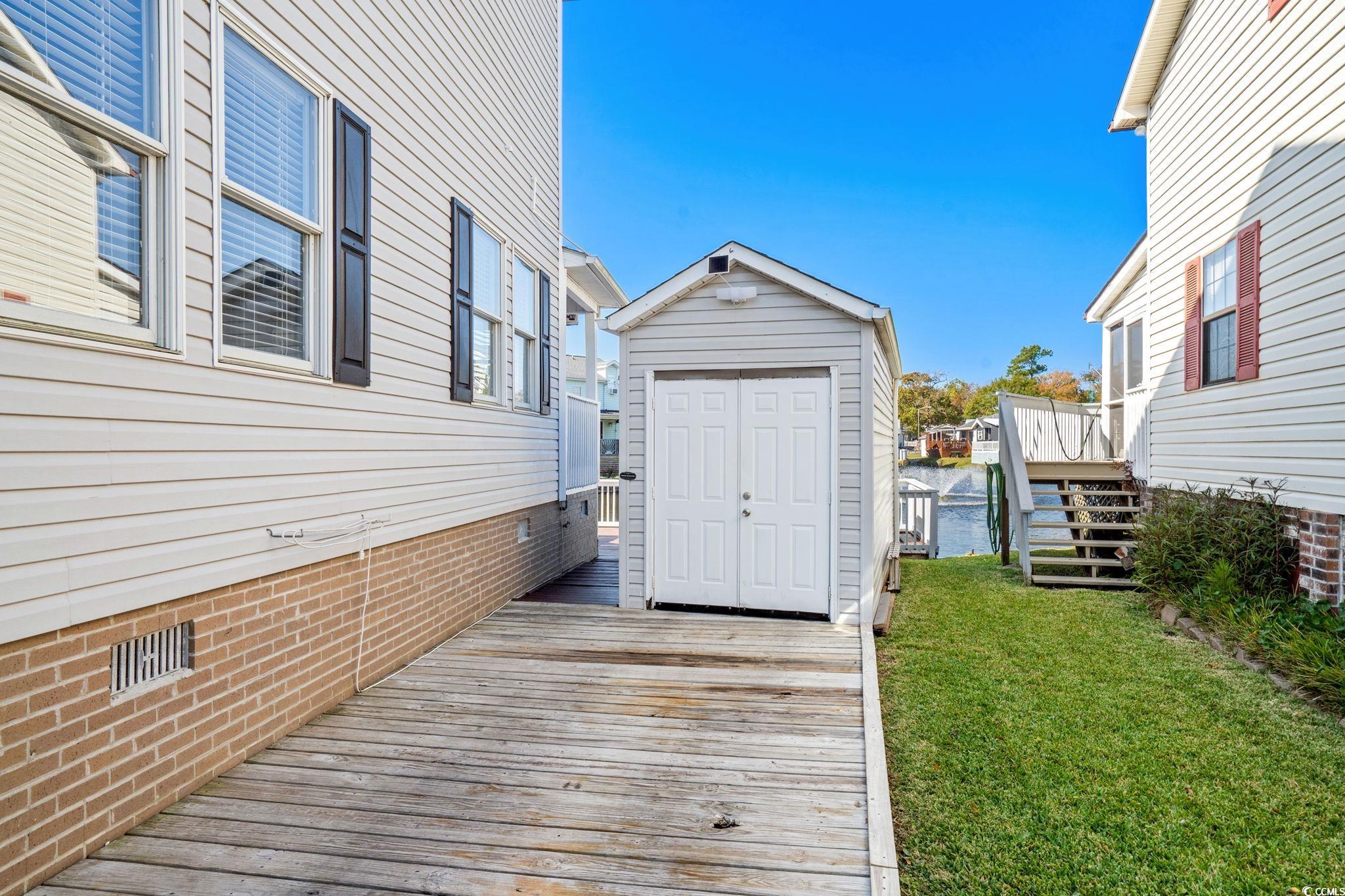 If you have been waiting for a turn key, immaculate home on the lake in Ocean Lakes in the Premier Section of the park, YOU FOUND IT! This home has been completely updated and meticulously maintained by the owners, it is a MUST SEE! As you approach you have plenty of parking on the concrete parking area, side access to storage shed/golf cart garage. Making your way up the front steps you have a large covered front porch facing East with plenty of seating for morning sun and afternoon shade. Inside the beautiful home you have a huge living room with leather reclining furniture, to the left is bedroom #1 with ensuite bathroom #1. Through the living room is the dining area with amazing lake views opening into the large kitchen. Off the kitchen is access to the 1st floor bathroom. Rear covered porch and step down HUGE deck has incredible lake view with retractable awning for shade while you enjoy the outside after a long day enjoying all of Ocean Lakes amazing amenities and almost 1 mile of ocean. Imagine relaxing on the rear deck while the kids fish directly from the deck that extends into the lake. Upstairs you have bedroom #2 with BEAUTIFUL remodeled ensuite bathroom #2. This gorgeous bathroom has a tiled walk-in shower, dual vanities, and soaker tub. Bedroom #2 also has a kiddie nook with a twin bed for little ones. Down the hall is a full laundry room with full-size (NEW) washer and dryer, full bath #3, and bedroom #3 with loft. Don't delay, schedule your showing today to see this home in person before it goes under contract. Home is being sold fully furnished (golf cart does not convey). Roof 2016 HVAC 2023.