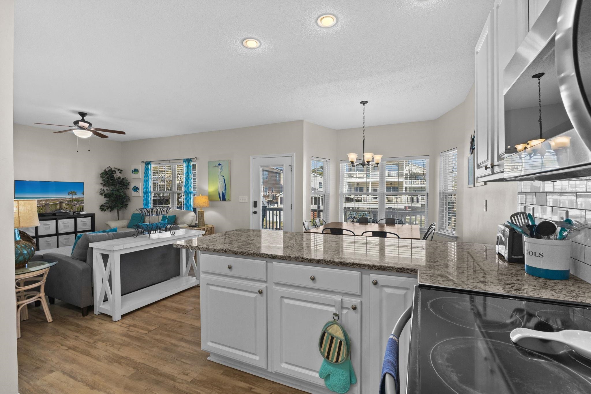 LOCATION, LOCATION, LOCATION! Waterfront Raised Beach House in Excellent Location just steps to the Beach, the Lake, Recreation Center and the Waterpark! Home is wonderfully laid out with an open concept floor plan, granite countertops, stainless steel appliances, LVP flooring, spacious bedrooms and bathrooms and two large decks overlooking Lake Magnolia. You will fall in love with the beautiful lake views and tranquil sounds of the nearby lake fountain all located on peaceful dead end street with no traffic. Sold fully furnished! Schedule your private showing today! Measurements are not guaranteed and are the responsibility of buyers and/or their agent. There is no HOA in Ocean Lakes, each home is located on leased land with yearly lease, which is payed in two semiannual payments due in January and July. Amenities abound in Ocean Lakes' gated community and include almost a mile of white sand beach, 24 hour security, 7 fishing lakes, free trash pick-up, free cable TV, weekly community activities, indoor/outdoor swimming pools, large water park/slides, lazy river, kid's splash zone, new dog park, new beachside coffee house and ice cream bar, playgrounds, full size basketball courts, miniature golf, fire pit, corn hole, shuffle board, horseshoes, ping-pong, Sandy's Down-under skatepark, recreation building, arcade, general store, golf cart rentals, Sandys Meet & Eat restaurant and more!