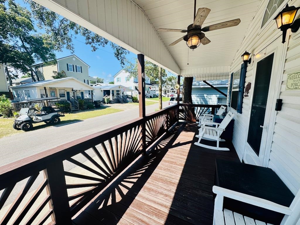 GREAT PRICE ON THIS STICKBUILT BEACH HOUSE WITH OPEN FLOOR PLAN, TALL CATHEDRAL CEILING, SPACIOUS BEDROOMS AND BATHS AND COVERED FRONT AND SIDE PORCHES! This well built home includes a large open floor plan with pantry, large island/breakfast bar, lots of cabinet/counter space, full-size washer/dryer, spacious primary bedroom/bath and a guest bedroom with full Jack/Jill bath all sitting over a raised foundation with multiple accesses to the crawl space for outdoor storage. Home is being sold fully furnished! New roof in 2021. This is a stickbuilt house, NOT a camper addition and NOT a manufactured property. Motivated Seller! Measurements are not guaranteed and are the responsibility of buyers and/or their agent. There is no HOA in Ocean Lakes, each home is located on leased land with yearly lease, which is payed in two semiannual payments due in January and July. Amenities abound in Ocean Lakes' gated community and include almost a mile of white sand beach, 24 hour security, 7 fishing lakes, free trash pick-up, free cable TV, weekly community activities, indoor/outdoor swimming pools, large water park/slides, lazy river, kid's splash zone, new dog park, new beachside coffee house and ice cream bar, playgrounds, full size basketball courts, miniature golf, fire pit, corn hole, shuffle board, horseshoes, ping-pong, Sandy's Down-under skatepark, recreation building, arcade, general store, golf cart rentals, Sandys Meet & Eat restaurant and more!