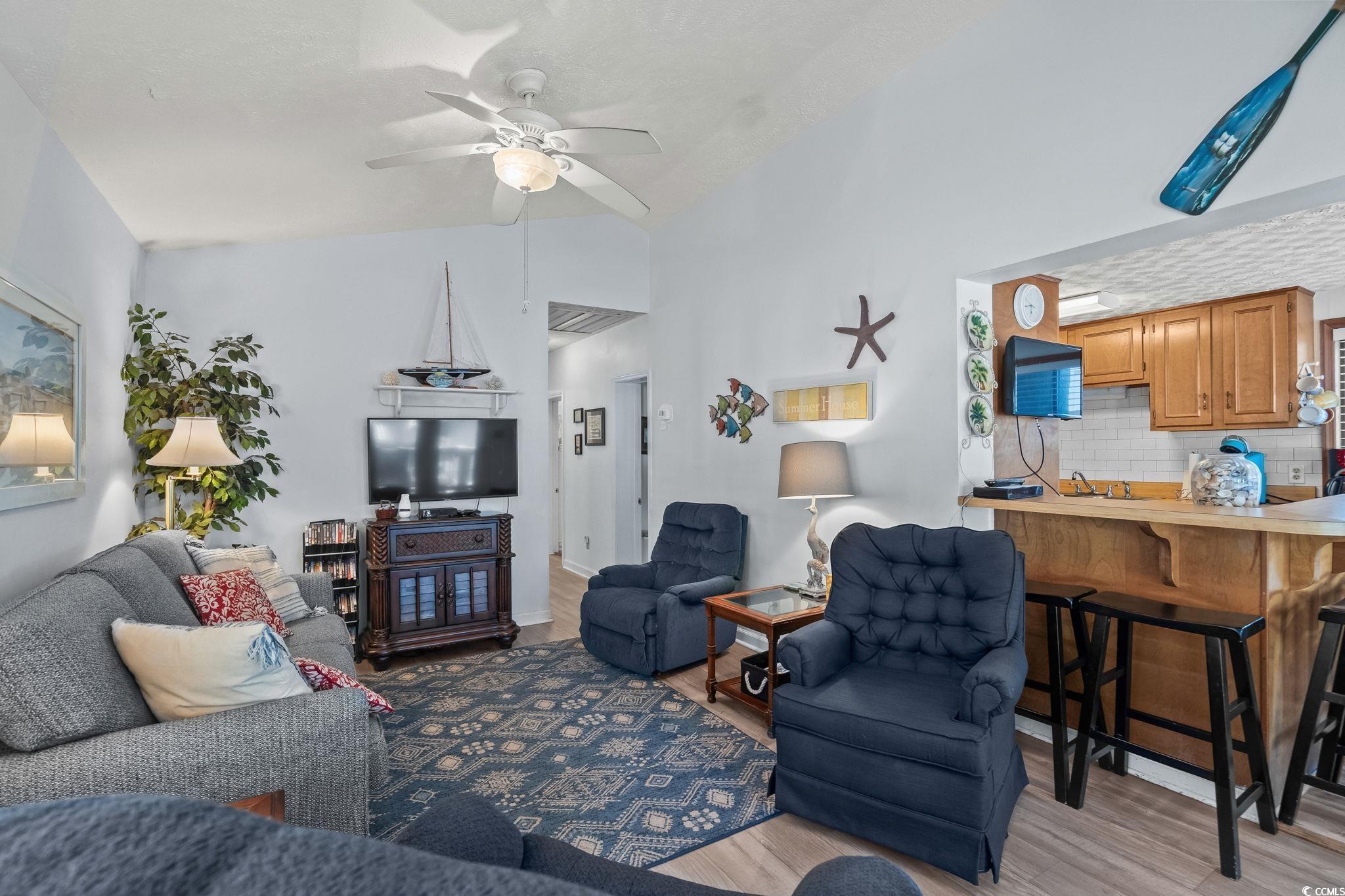 Discover this charming 2-bedroom, 2-bath beach home located in the highly sought-after Z Section of the award-winning Ocean Lakes Family Campground. Step inside to an open, airy living room featuring vaulted ceilings, two ceiling fans, and durable vinyl plank flooring throughout the main areas, with cozy carpeted bedrooms for added comfort. The fully furnished interior includes everything you need — even a washer and dryer. The kitchen offers a full-size stove, refrigerator, dishwasher, and a convenient breakfast bar for extra seating. Outside, enjoy relaxing on the spacious deck as golf carts roll by, and take advantage of your two-car concrete driveway offering plenty of parking. Within Ocean Lakes Family Campground, you’ll enjoy 24-hour security and an incredible lineup of amenities: indoor and outdoor pools, basketball and volleyball courts, shuffleboard, horseshoes, and the famous water park complete with a lazy river and slides. Short-term rentals are allowed, making this an ideal primary residence, vacation home, or investment opportunity. Don’t miss your chance to own in Ocean Lakes Family Campground’s popular Z Section — schedule your showing today! Square footage is approximate and not guaranteed. Buyer is responsible for verification.