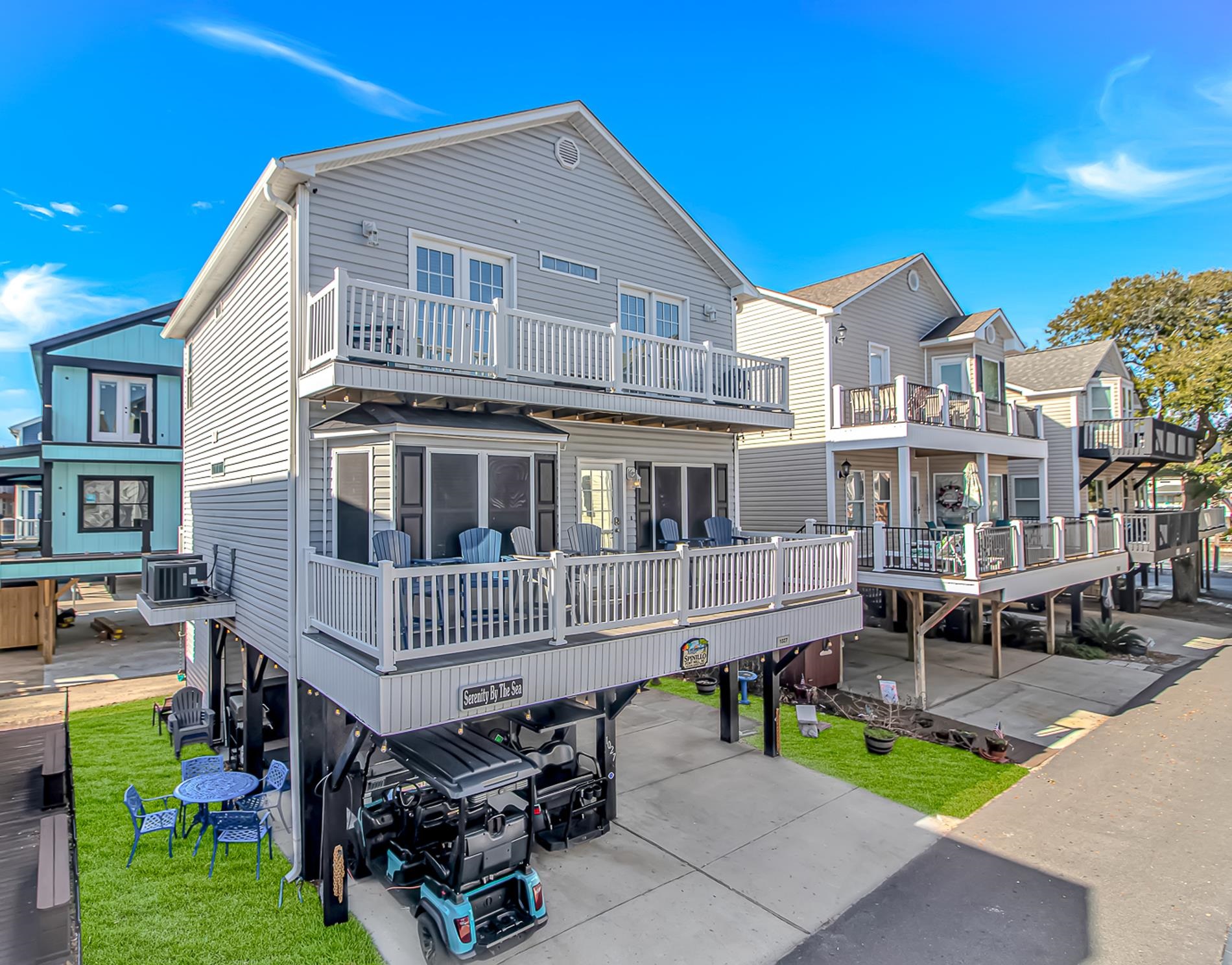 This very open and spacious 5 Bedroom, 4.5 Bath raised beach house is just a very short walk or golf cart ride to the beach. The kitchen has a nice breakfast counter to sit at and a large dining table, LVP flooring throughout, a huge master suite with access to porch. It has 2 great porches to sit and listen to the ocean or watch the world drive by on their golf carts while your drink your morning coffee or afternoon cocktails. This home is already setup for weekly beach vacationers and earns excellent rental income. Located in the private gated Ocean Lakes community featuring award winning amenities that focuses on being family-oriented. This home is being sold fully furnished! The annual fee is broken into 2 payments with half due in January and the other half due in July. The lease fee covers your basic cable TV, garbage pick up 2 days a week,24hour security and access to all of the wonderful amenities that Ocean Lakes has to offer. Call today to schedule your private showing.