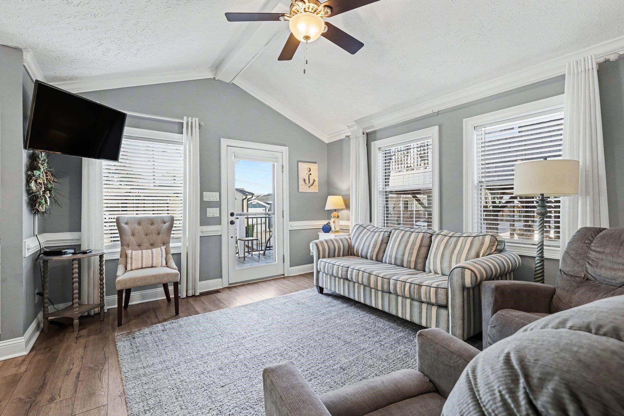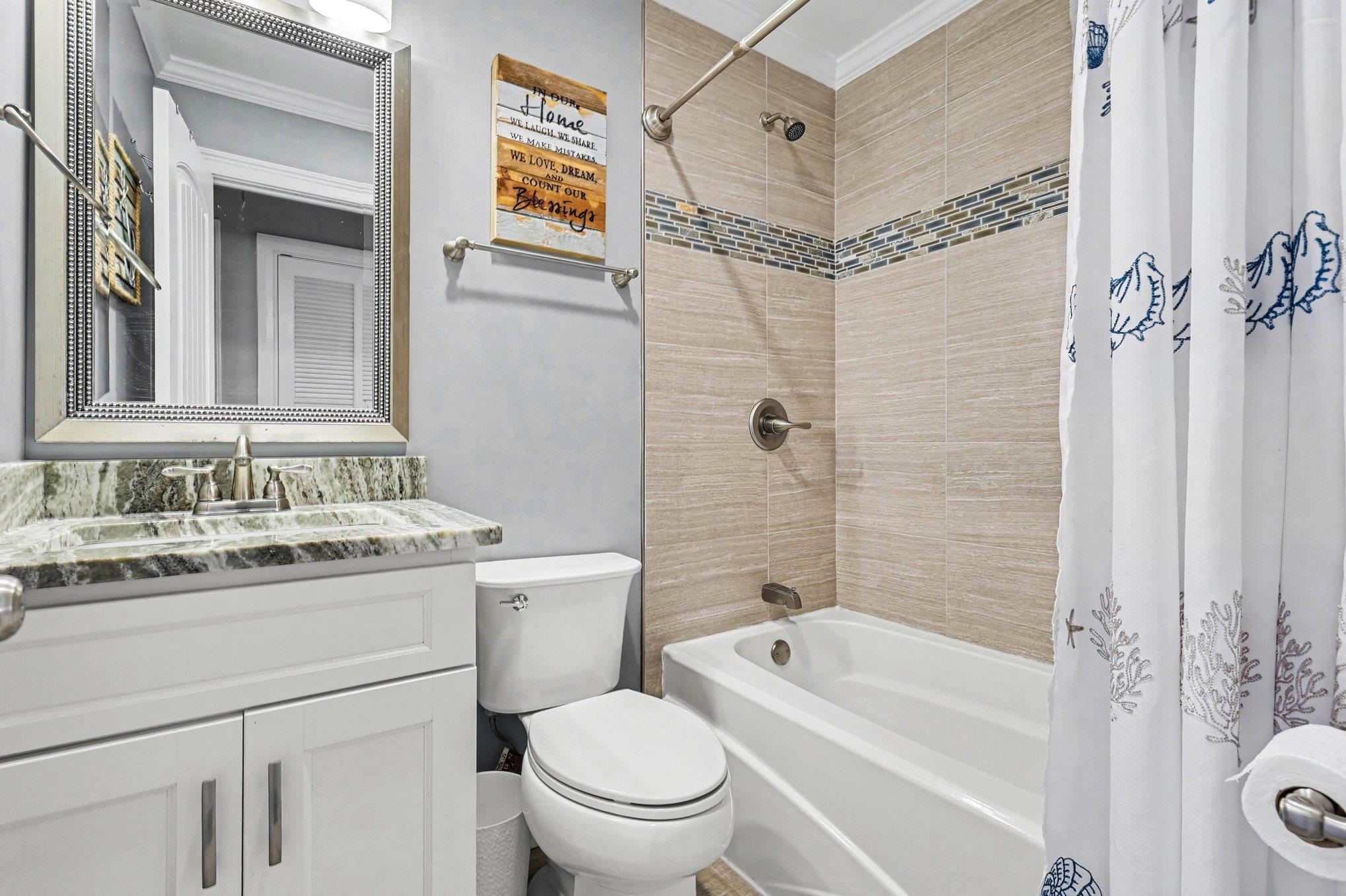 Beautiful Stick Built home, paved front parking located inside of Ocean Lakes Family Campground. Enjoy the open concept kitchen with granite countertops and shaker style soft close cabinets with stainless steel appliances. The bathrooms feature updated bathroom vanities with granite counters, tile floors and tile surround shower/tub combo. Laundry room and cabinets at side door entrance. Side steps newly built in composite. Enjoy the LVP throughout the living room, kitchens and bedrooms. Ocean Lakes has one mile of beachfront positioned on 310 acres. They have 24 hour security and many amenities such as indoor and outdoor pools, waterpark with a splash zone for children, lazy river and slides, basketball courts, volleyball and much more. All measurements and square footage are approximate and not guaranteed. Buyer is responsible for verification.