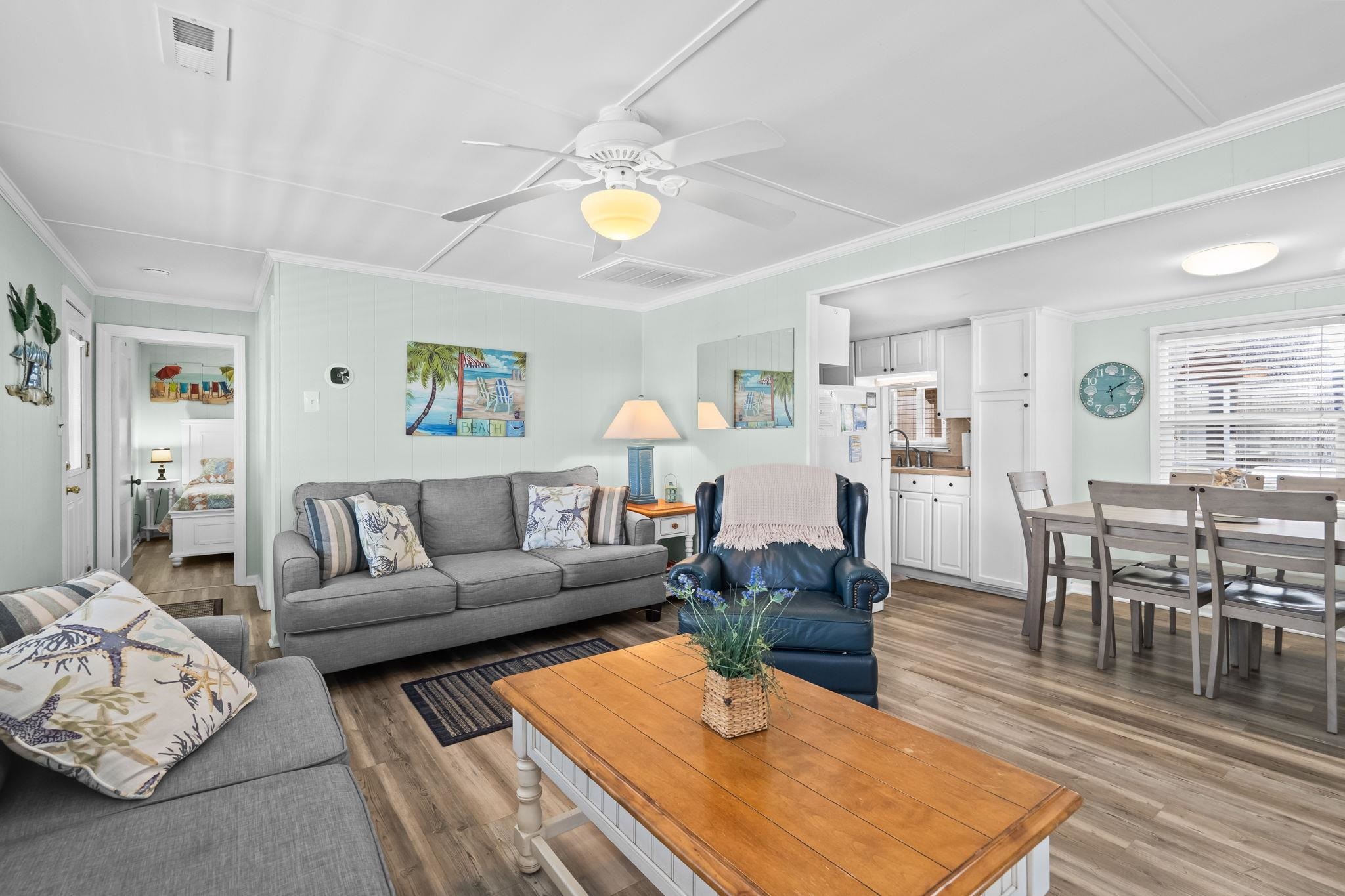 Charming and updated 2-bedroom, 2-bath home offering comfort, style, and great outdoor living! This well-maintained property features a bright and inviting interior with modern updates throughout, creating the perfect blend of functionality and coastal-inspired charm. Enjoy relaxing mornings or entertaining evenings on the partially covered front deck, while the spacious side deck provides even more room for gatherings, grilling, or soaking up the outdoors. Additional highlights include plenty of parking for guests, a convenient storage shed for all your tools and gear, and a layout designed for easy living. Located in the award-winning Ocean Lakes Family Campground in Myrtle Beach, you’ll have access to incredible amenities including pools, water park, beach access, recreational activities, and more—making every day feel like a vacation. Whether you’re looking for a full-time residence, vacation getaway, or investment opportunity, this home checks all the boxes!