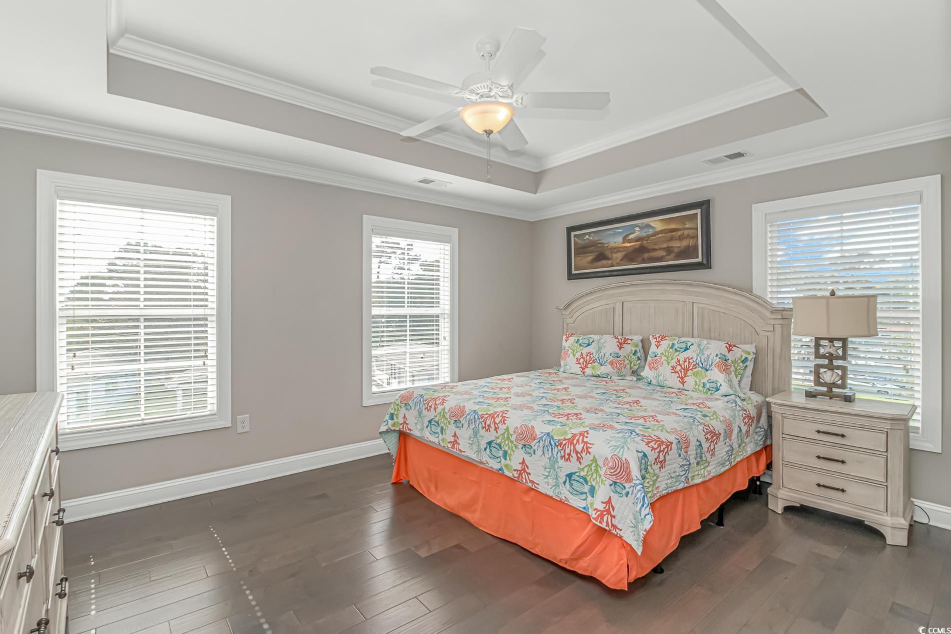 This very open and spacious 5-Bedroom, 5-Bath raised beach house is just a very short walk or golf cart ride to the beach. The kitchen has a nice breakfast counter to sit at and a large dining table, LVP flooring throughout, a huge master suite with walk-in closet. It has a great porch to sit and listen to the ocean or watch the world drive by on their golf carts while your drink your morning coffee or afternoon cocktails. This home is already setup for weekly beach vacationers and earns excellent rental income. Located in the private gated Ocean Lakes community featuring award winning amenities that focuses on being family-oriented. This home is being sold fully furnished! Call today to schedule your private showing.