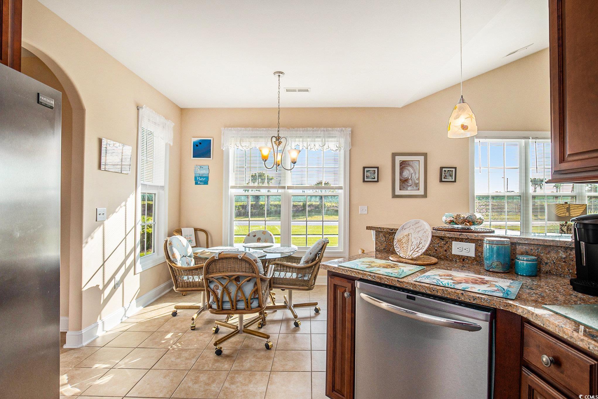This charming 3-bedroom, 2-bathroom home offers a spacious and functional layout designed for both comfort and convenience. The open living area flows seamlessly into the dining and kitchen spaces, creating the perfect setup for entertaining or everyday living. The kitchen provides ample cabinetry and counter space, while the primary suite features a private bath and generous closet storage. Two additional bedrooms allow flexibility for family, guests, or a home office. Outside, the property offers room to relax and enjoy the coastal lifestyle—enjoy morning coffee on the porch. 2 car garage along with a garage for a golf cart. Located in the heart of North Myrtle Beach, you’re just minutes from the ocean, shopping, dining, and local attractions. With its practical design and unbeatable location, this home is a fantastic opportunity to own in one of the area’s most desirable communities.