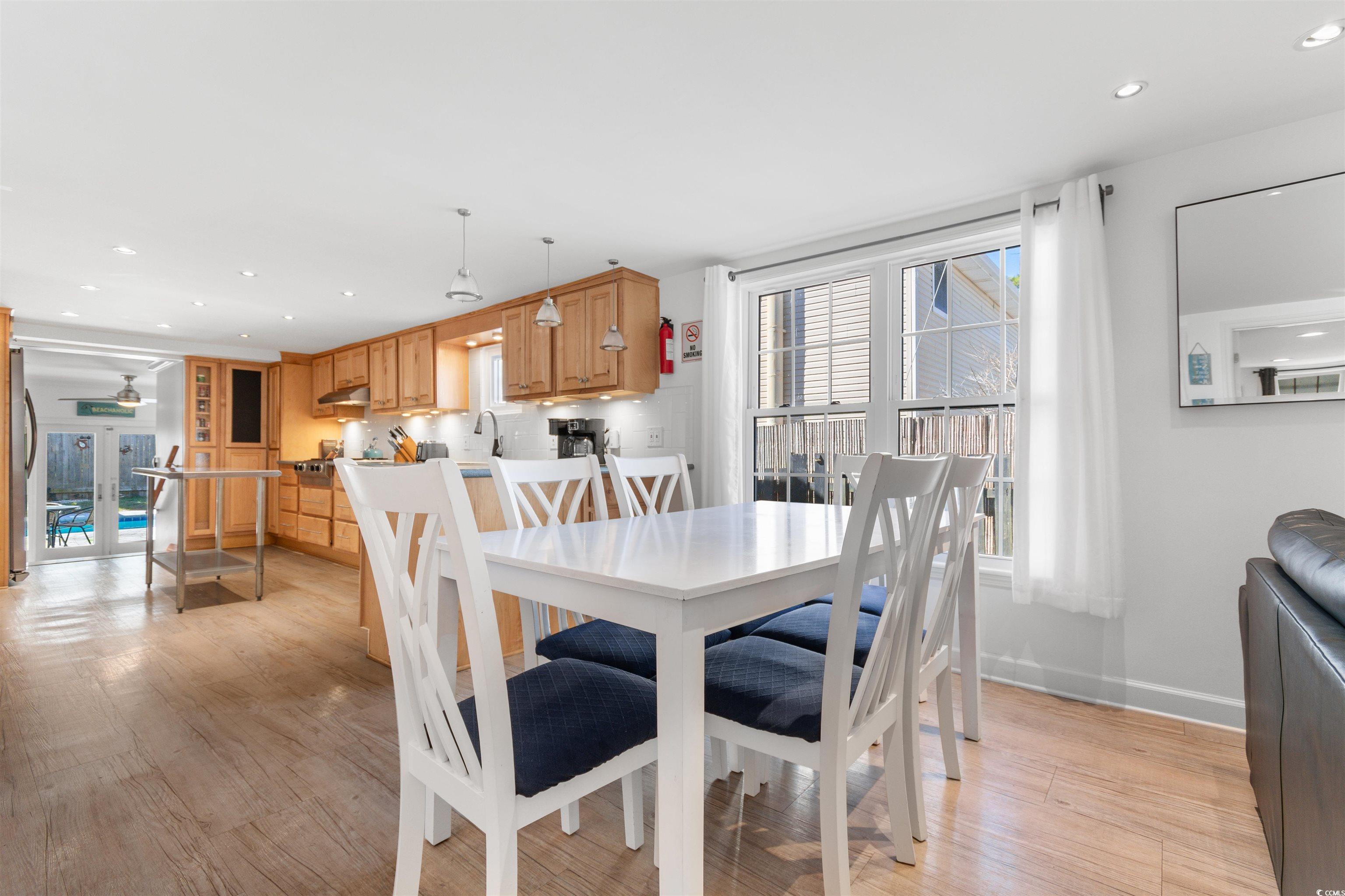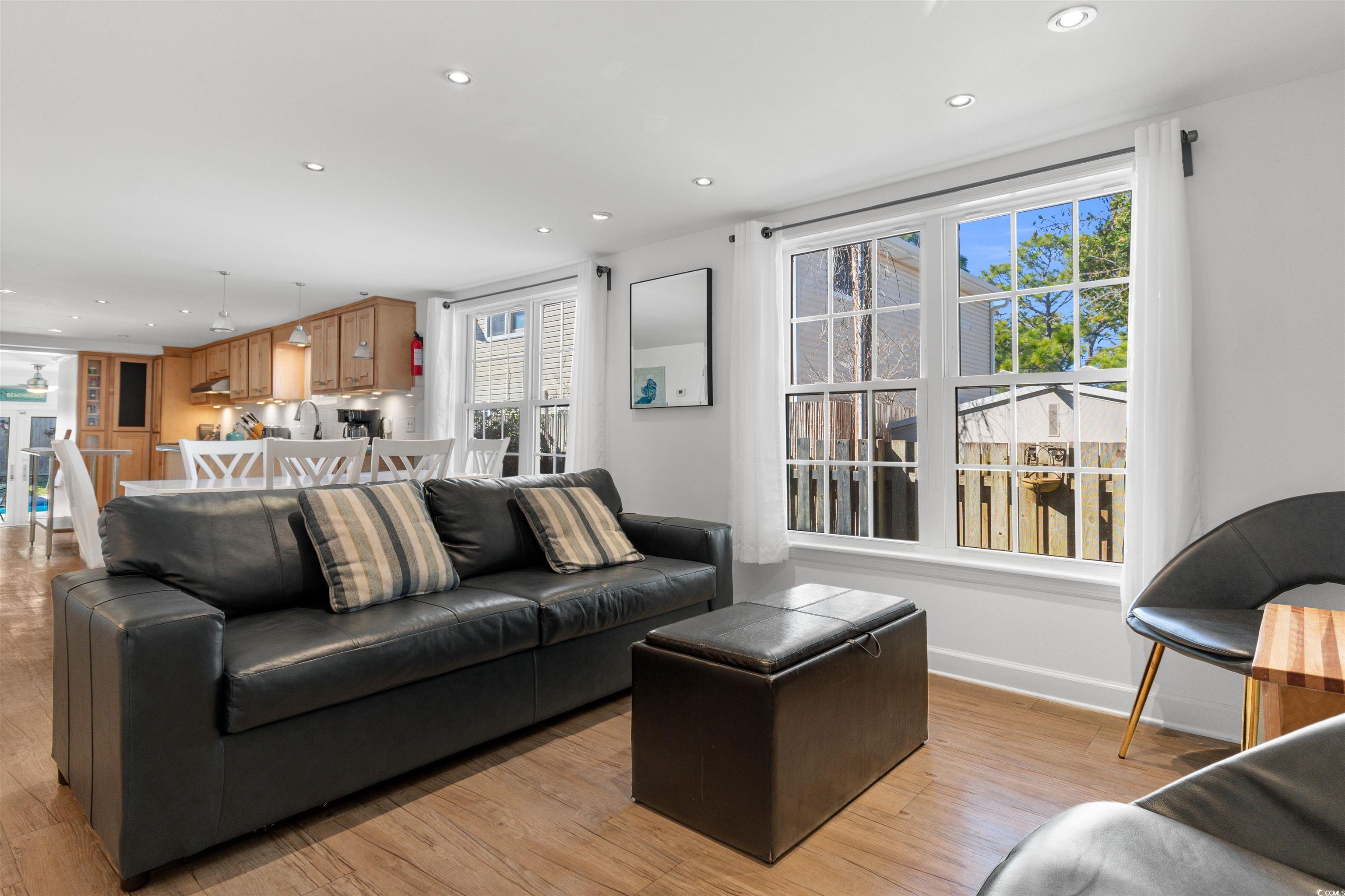 Coastal Living at Its Finest! Versatile Home in Crescent Beach - nestled just moments from the sandy shores of Crescent Beach, this stunning two-story home offers the perfect blend of comfort, convenience, and investment potential. Whether you are searching for a spacious primary residence with the ease of an elevator or a duplex with incredible rental income potential, this 7-bedroom, 4-bathroom property is designed to fit your lifestyle. Step inside and discover thoughtfully designed spaces on both levels. The first floor has been beautifully renovated, featuring luxury vinyl plank flooring, fresh walls, a gas stove, walk-in shower, and a dedicated office space. Upstairs, the expansive second floor includes a master suite, sitting area, private office, and a stackable washer/dryer, making it ideal for relaxed, everyday living or a turnkey rental. This home is as functional as it is beautiful, with 42-inch cabinets, sleek solid surface countertops, stainless steel appliances, and smooth ceilings throughout. With five TVs on each level, entertaining is effortless, whether you're hosting guests or welcoming vacation renters. Step outside and enjoy your own private oasis with a heated saltwater pool, outdoor shower, and a spacious 15x12 covered back porch set the scene for endless coastal memories. The backyard also features plenty of storage, a well-maintained storage area, and ample parking for a golf cart, motorcycle, or even a boat. For added peace of mind, this home is equipped with a whole-home generator powered by propane, ensuring you'll never be without power. The gas fireplace, gas stove and tankless hot water heater upstairs add to the efficiency and comfort of this incredible property. With private entry options via the exterior staircase or interior elevator, this home provides flexibility, privacy, and the potential for multi-generational living or a high-yield rental investment. Surrounded by lush landscaping and coastal charm, this is a rare opportunity to own a slice of paradise in North Myrtle Beach. Live in one unit, rent the other, or enjoy the entire home as your personal retreat. The possibilities are endless! Schedule your private showing today. **ALL SHOWINGS MUST BE ACCOMPANIED BY ACTIVE SC REAL ESTATE LICENSEE.**