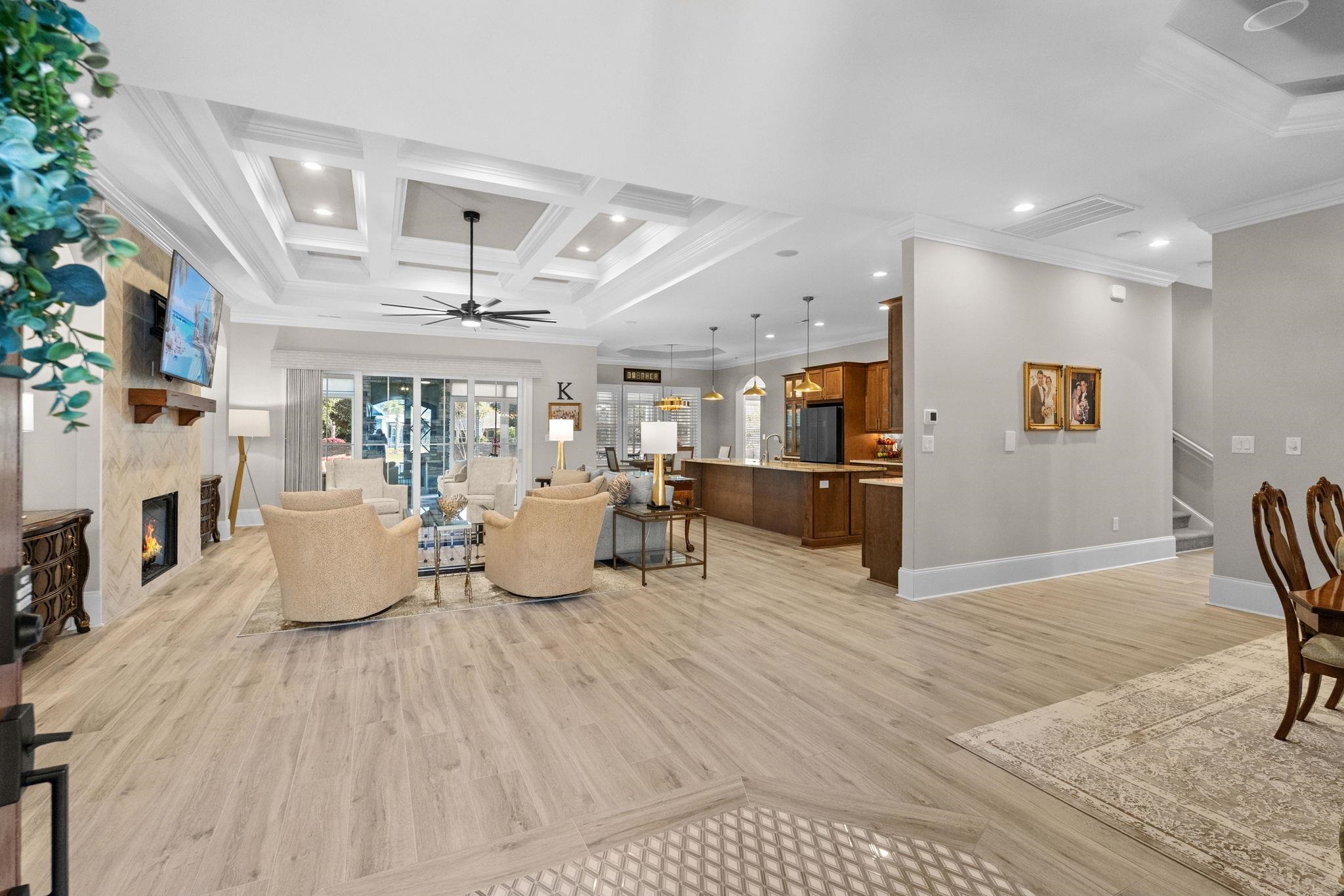 Experience refined coastal luxury in this custom-built 2023 masterpiece by Carrell Homes, located in the exclusive 55+ gated Intracoastal Waterway community of Grande Dunes Waterside Pointe. This 5-bedroom 4.5 bath residence with dedicated office and 3-car garage was completed in 2023 and is more than a place to live--it offers a lifestyle that exceeds every expectation. With over 4800+ SF of meticulously designed heated living space, this home provides more than enough room for family gatherings, special celebrations, and weekend visits from your grandchildren and overnight guests. A grand double door entry welcomes you into an open, light-filled interior featuring soaring 11’ ceilings, coffered architectural details, Italian porcelain tile flooring, and elegant crown molding throughout. The spacious living area is anchored by a modern gas fireplace with custom built-ins, while the formal dining room showcases a dramatic tray ceiling with ambient lighting. The gourmet kitchen is a true showpiece, complete with an oversized 11’ island, quartz and granite surfaces, custom cabinetry, champagne bronze hardware, premium stainless appliances, gas hookup, boiling water tap, and a walk-in pantry with wood shelving. Seamless indoor-outdoor living is achieved through triple sliders leading to a heated/cooled Carolina Room with a stacked stone fireplace—ideal for year-round enjoyment. The luxurious primary suite is a sanctuary of comfort and elegance featuring a tray ceiling, dual custom closets, and a spa-inspired bath with quartz vanities, designer fixtures, you'll feel pampered every day. The fully tiled walk-in shower with intricate accents, offers the ultimate in relaxation. Guest accommodations include multiple ensuite bedrooms, with tiled showers, plush carpeting and tray ceilings ensuring your guests feel like royalty. With two more bedrooms upstairs, a full bath and a central flex/media room with charming dormers, there's space for everyone --whether you need a home gym, game room or quiet space for hobbies. Additional highlights include a central vacuum system, HALO water filtration, Rinnai tankless water heater, whole-house audio, security system, plantation shutters, and an oversized 3-car garage with epoxy flooring and storage. Outdoor living is elevated with an extended paver patio, built-in grill, and professionally landscaped grounds. Residents enjoy access to world-class amenities including the Del Webb Intracoastal Waterway Amenity Center with scenic waterway walking path, indoor and outdoor pools, bocce court, pickleball and tennis and a vibrant social calendar, along with the private gated Ocean Club featuring oceanfront dining, a resort-style pool, and cabanas- delivering an elevated coastal experience. This is more than a home—it’s a lifestyle defined by beauty, luxury, comfort, and coastal elegance.
