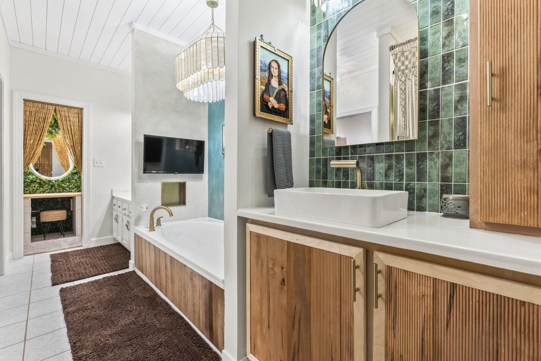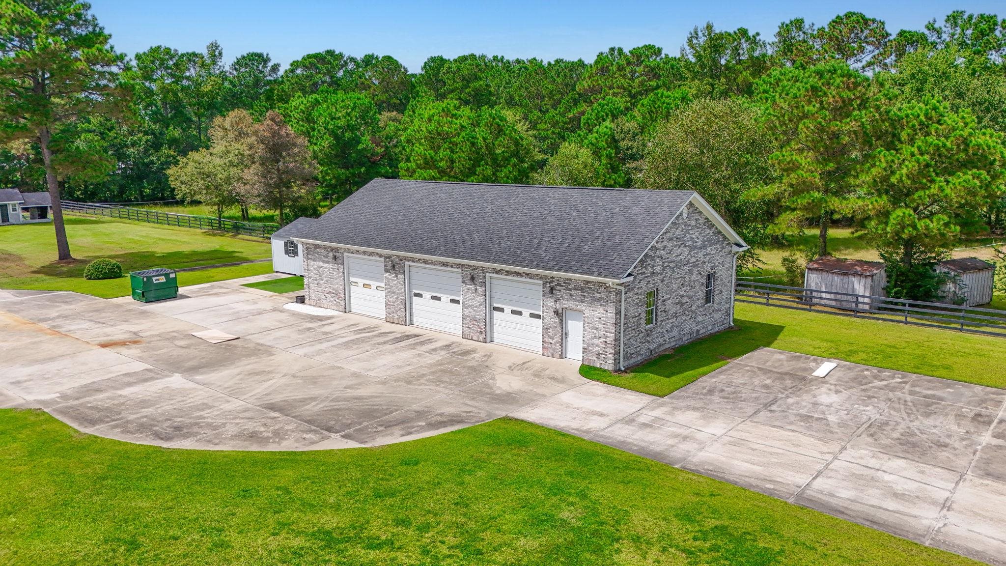Exceptional all-brick estate set on 3.47 acres in a private, non-HOA community, offering space, luxury, and unmatched versatility. This stunning two-story home features 5 bedrooms, 4 full bathrooms, and 2 half baths, designed with both comfort and functionality in mind. Enjoy relaxing mornings and evenings from the covered front porch and private balcony, adding charm and outdoor living space to this incredible home. Step inside to find luxury vinyl plank (LVP), tile, and wood flooring, a formal dining room, and a spacious living area highlighted by an electric fireplace with a beautiful stone accent wall. The gourmet kitchen is a true centerpiece, complete with modern appliances, a range hood, stylish backsplash, ice maker, breakfast bar, and a walk-in pantry, perfect for entertaining or everyday living. The primary suite, located on the main level, offers a private retreat with backyard access, ceiling fan, spa-like En Suite featuring a double vanity, shower, garden tub, and multiple custom walk-in closets. Also on the first floor: a dedicated office, laundry room, two half baths, along with an attached two-car garage that is fully insulated and equipped with HVAC. Upstairs, you’ll find additional flexibility with a second office featuring a Murphy bed, two more bedrooms, and a full bathroom with double sinks, a vanity, a custom shower, and a separate garden tub. The home also includes a large attic space that is spray foam insulated and fully heated and cooled, offering incredible storage or potential additional living space. Step outside to your private outdoor oasis featuring: Brick patio with hot tub and fireplace. Fully equipped outdoor pavilion with granite counters, two refrigerators, ice maker, propane flattop, grill, a fire pit area, basketball court, and Bluetooth landscape speakers. Guest house with bedroom, and a full-size bathroom with large custom tile shower. The property includes a three-bay detached garage with two 10-ft doors and one 12-ft door, 220 & 110 amp service, plus a private bar and bathroom. There’s also a dedicated Boat/RV storage area. Additional upgrades and features include: Three HVAC systems (two replaced in 2018, one in 2025), all with UV light systems. New roof (2025). Tankless hot water heater. Dual sprinkler systems, and much more. This unique property blends luxury, functionality, and privacy which is perfect for those seeking space to live, work, and entertain. Located close to a public boat ramp to the Intracoastal Waterway, shopping, dining, entertainment, and a short drive to the beach. Square footage is approximate and not guaranteed. Buyer responsible for verification.