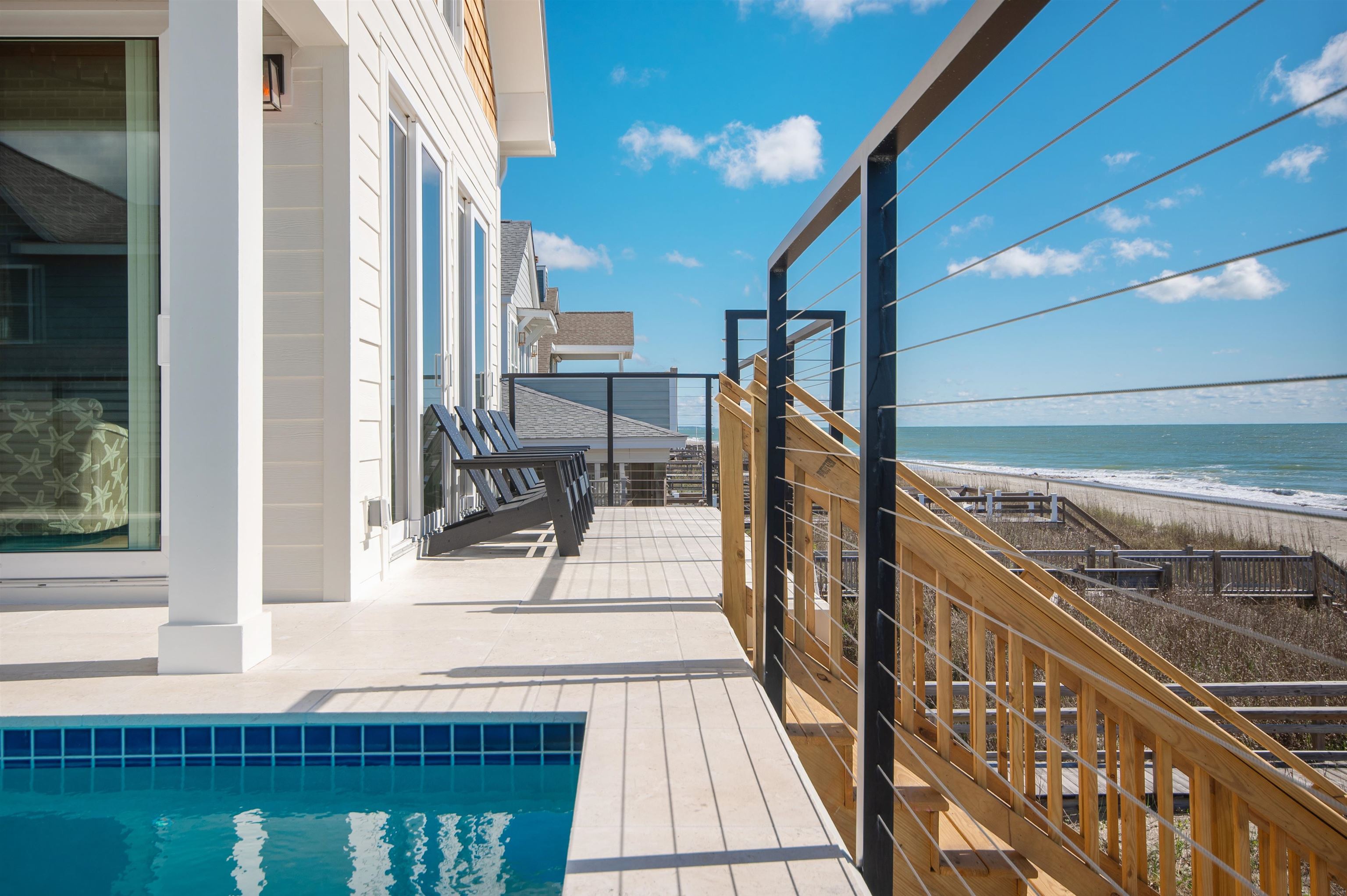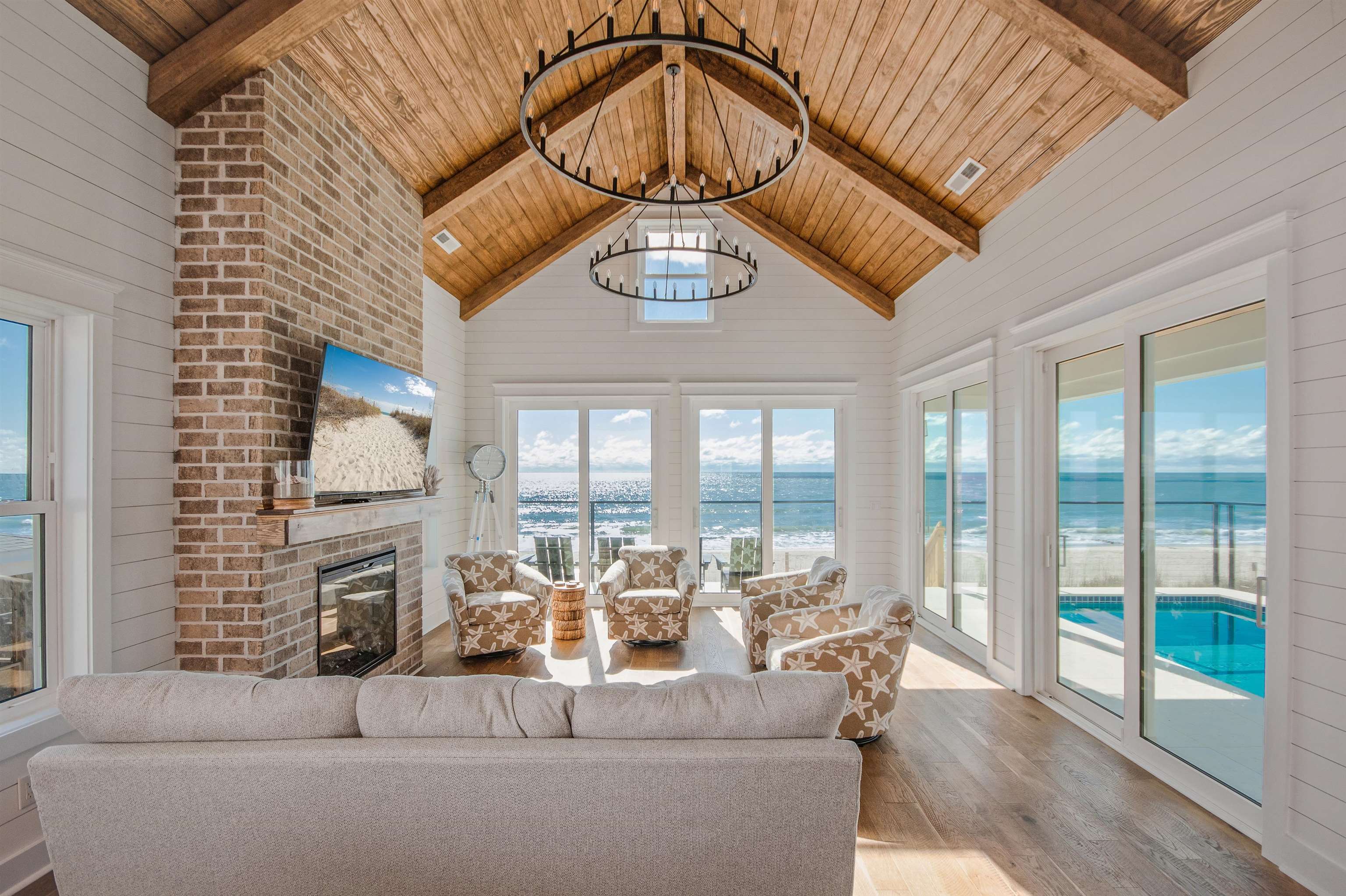 Amazing opportunity for exquisite island living! Located in the charming Bird’s Nest section on the south end of Pawleys Island, this newly constructed home boasts contemporary charm, stunning oceanfront views, and elevated saltwater pool. Home features include a great room with panoramic ocean view, vaulted wood-inlaid ceiling and electric fireplace, an oceanfront open concept kitchen, beautiful hardwood floors throughout, ocean-side deck with private beach boardwalk, and covered parking. Notably, this raised two-story home comes with a single-level living option. All the common areas, including the screened porch and pool plus two bedrooms and two full baths, are located on the first floor - all accessible by elevator (to first floor only) or by a covered exterior stairway. Four more bedrooms and two baths are located on the top floor. Two bedrooms currently have a king bed in each and enjoy an oceanfront balcony in one and peek-a-boo creek view from the other. In between these bedrooms are mirror-image bathrooms with combination walk-in shower/garden tub - one en suite, one in the hallway. Additional attributes include high impact storm windows, seamless metal roof, concrete fiber siding, central fire alarm control panel, and travertine encased pool with heating option. Home to be sold fully furnished. A shared, right-of-way, gated beach boardwalk with keyless lock is located on the north side of the home. Public creek access is a short walk away. Primary residence or second home with excellent rental potential. No HOA. Myrtle Beach International Airport is 25 miles north. Historic Charleston SC is 75 miles south.