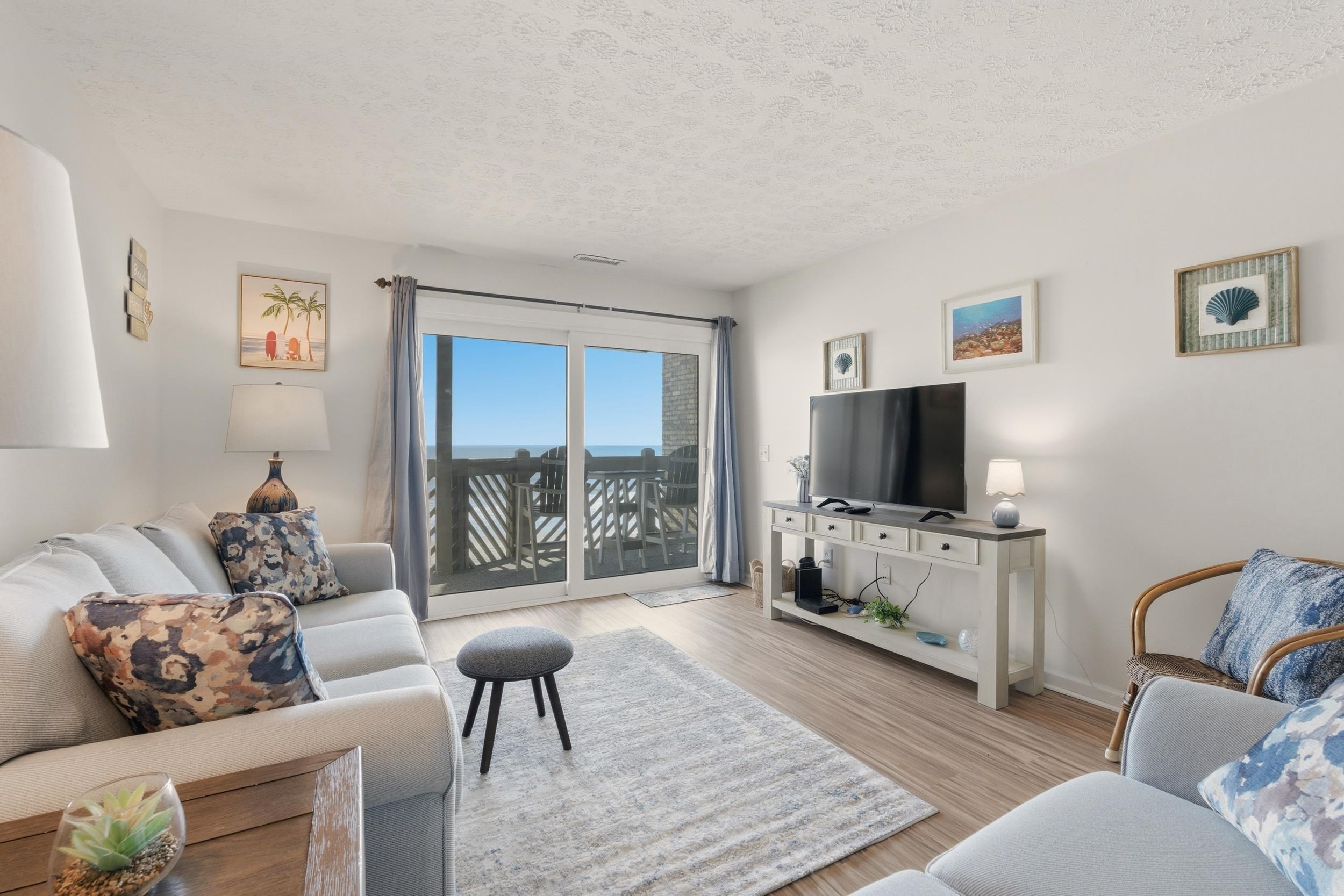 Welcome to Maritime Place A5! This furnished 2-bedroom, 2-bath oceanfront condo on the second floor invites you to wake up to breathtaking water views and the gentle sound of waves every day. Imagine sipping your morning coffee on the balcony as the sunrise lights up the horizon, or stepping directly onto the sand and strolling along the beach whenever the mood strikes. Recent upgrades include a brand-new dishwasher, refrigerator, kitchen countertops, stylish living room furniture, and a remodeled primary suite shower. A unique feature of this unit is the side door off the balcony, providing direct access to the beach, pool, and hot tub. Move-in ready and meticulously cared for, it’s just a short walk to Garden City Pier, restaurants, shops, and local attractions. Whether you’re seeking a full-time oceanfront residence or a relaxing coastal getaway, this condo makes seaside living effortless.