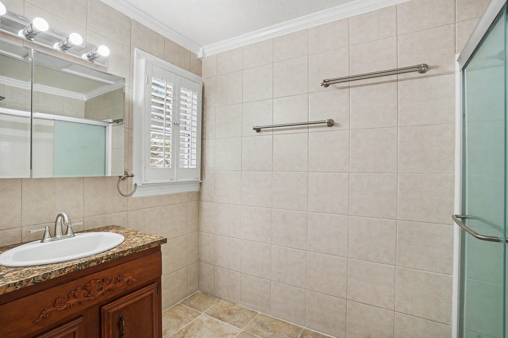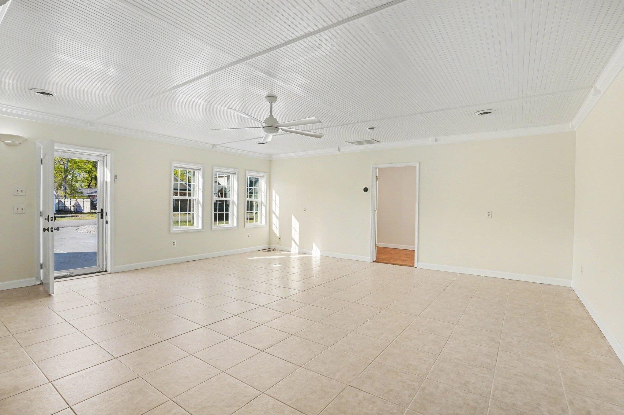 Walk or ride your golf cart to the ocean! Located just 6 blocks from the beach on a corner lot, this charming 3 bed 2 bath home has been updated with fresh paint, new ceiling fans and light fixtures in 2026, new water heater 2025, new refrigerator 2024, new stove 2023, washer and dryer 2021, new HVAC 2021, security with ring cam in 2022, and the crawl space was just encapsulated in March 2026. The open floor plan features a spacious living room enhanced with high beamed ceilings, a cozy brick fireplace, recessed lighting and crown molding and meal preparation is a pleasure in the chef's kitchen with sparkling stainless appliances, tile backsplash, abundant cabinet and counter space, a double sink and breakfast bar and nice sized breakfast nook. The primary and second bedroom both have ample closet space and share a full bath with tiled walls with accent trim, a tub/shower and double sink vanities. An expansive third bedroom at the rear of the home could also be utilized as a family room or media room and has tile floors, beadboard ceiling and separate entrance plus access to the second full bath with shower and double vanities. There is also a sitting area/reading nook just off the third bedroom . Outside, the fenced yard provides a private, relaxed setting and the extended brick paver patio has room for everyone to gather while enjoying barbecues and al fresco dining and a rocking chair front porch is the ideal spot for wiling away lazy afternoons. The backyard storage shed is perfect for golf equipment, beach toys or tools and the driveway/walkway has also been updated with plenty of parking space for you and your guests, gutter guards and chimney flashing were added, and 30 AMP plug was installed for hot tub. Ocean Terrace is a quiet, established community with no HOA in the heart of Surfside Beach, less than a half mile to the beach, and close to shopping, restaurants, fishing, golf , Brookgreen Gardens, the Marshwalk , and Huntington Beach State Park plus minutes from all the entertainment and attractions the Grand Strand has to offer. Whether you are searching for a primary home or the perfect vacation retreat, this is a must see! Make an appointment to view this delightful home today! Rooms are virtually staged.
